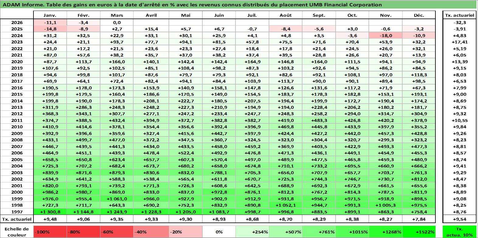 Dernière perfo 10 ans en %