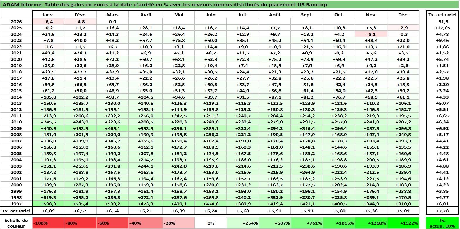 Dernière perfo 10 ans en %
