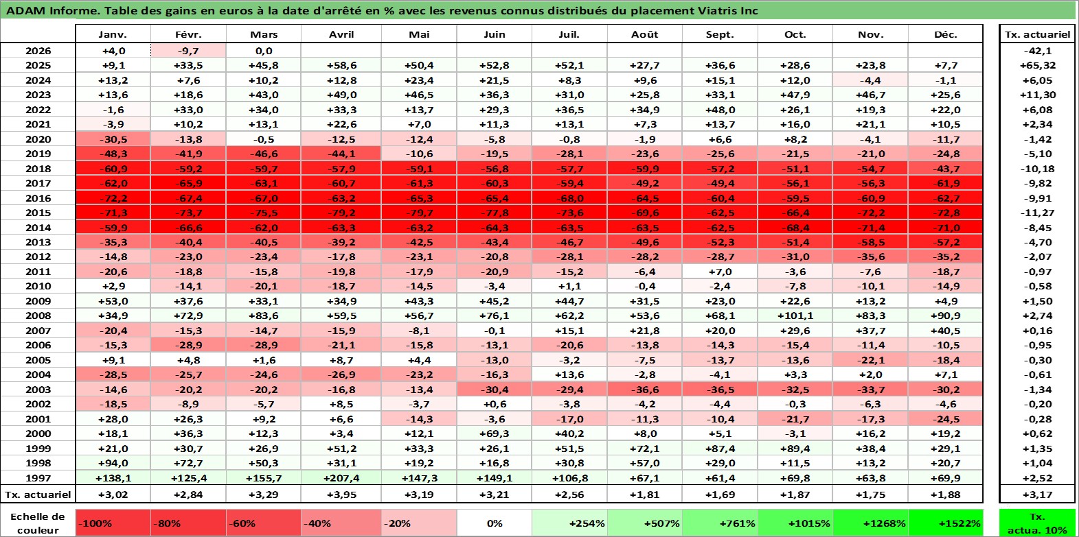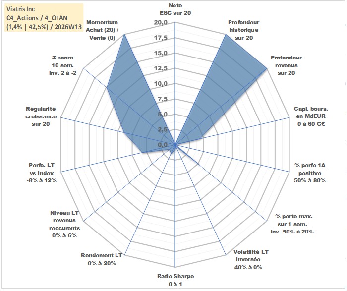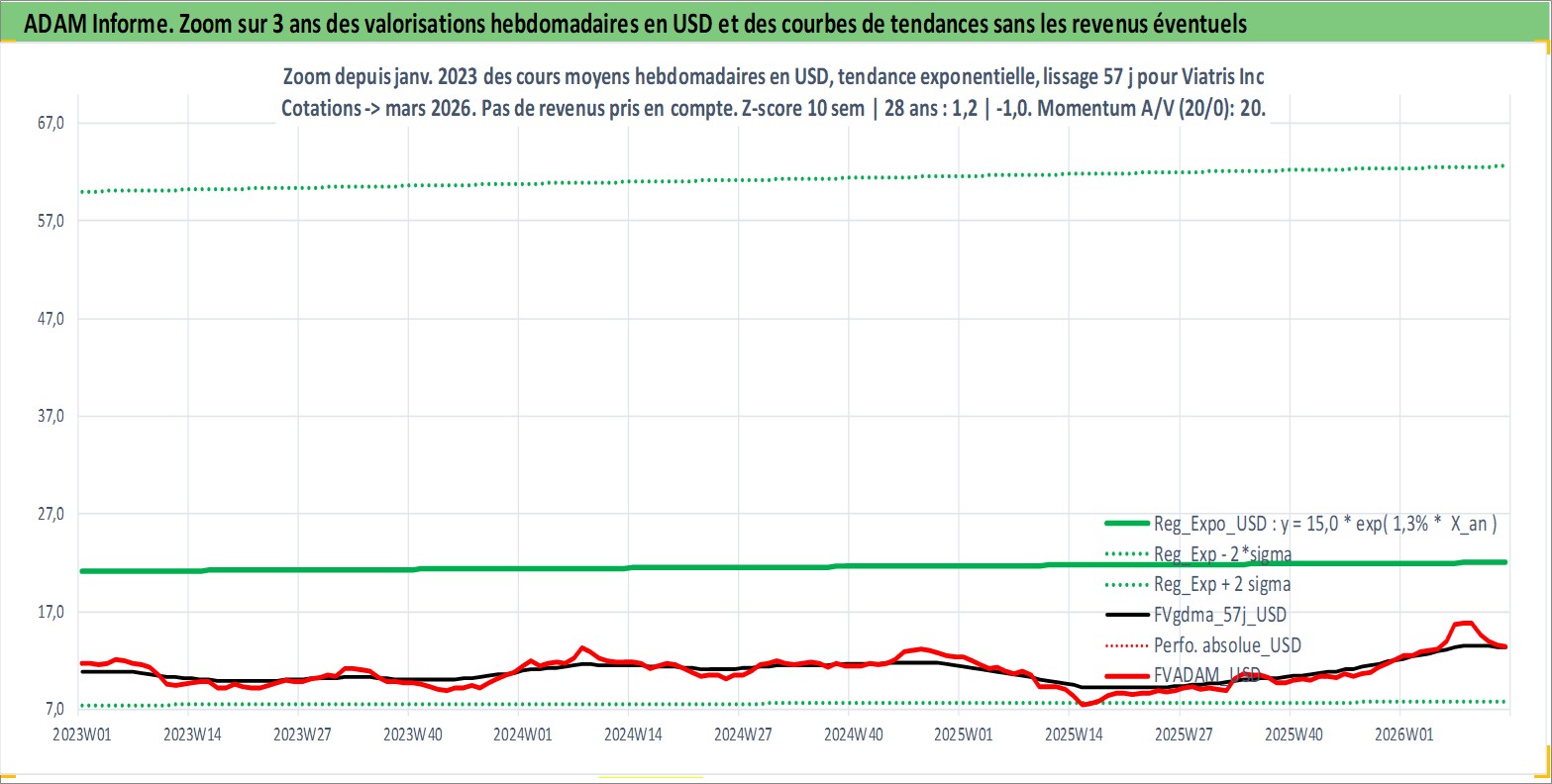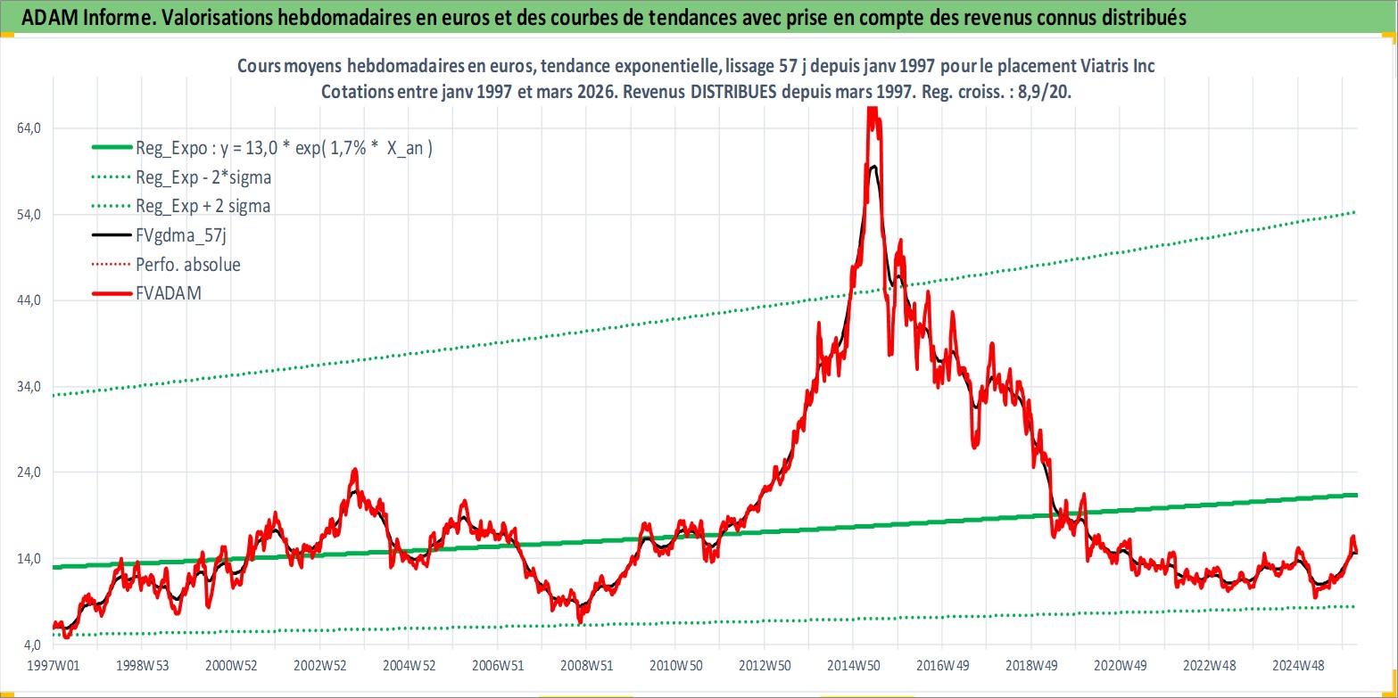 Site dédié aux investisseursPage dédiée sur site financeAnalyse des valorisations hebdomadaires de l'action Viatris Inc. Cet actif est cote en USD. Les valorisations sont en contrevaleur EURO et couvrent les semaines 1997W01 a 2026W13. Les revenus de cet actif financier sont pris en compte depuis la semaine 1997W13. La note ESG de cet actif n'est pas connue.