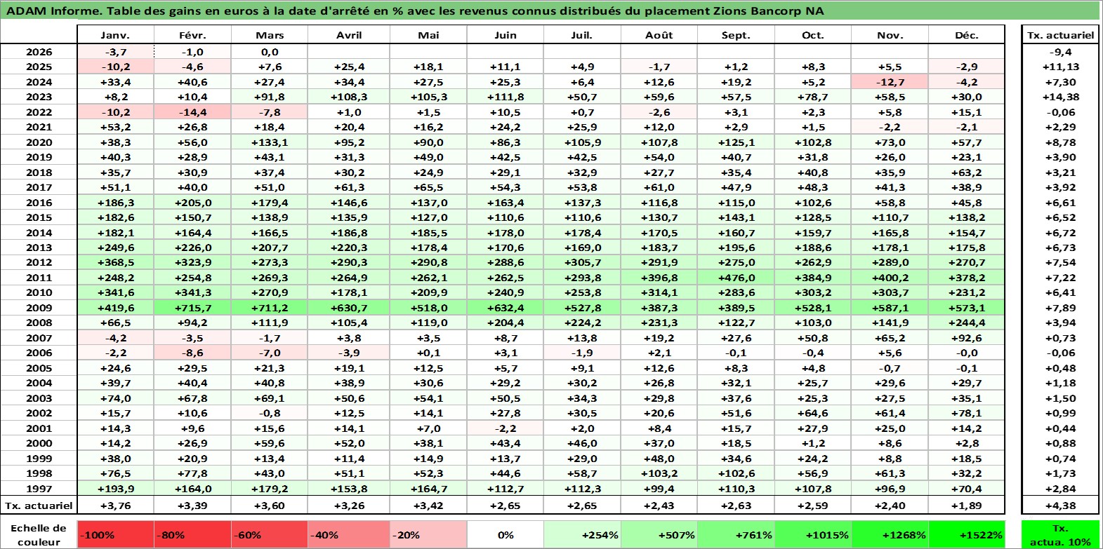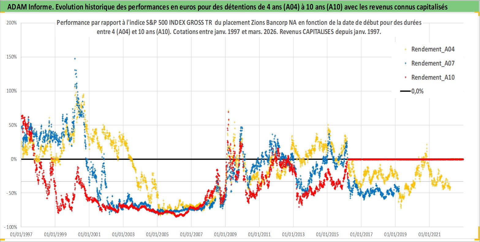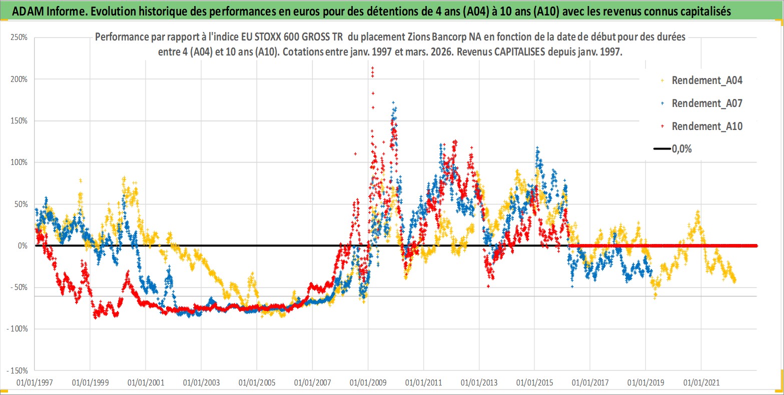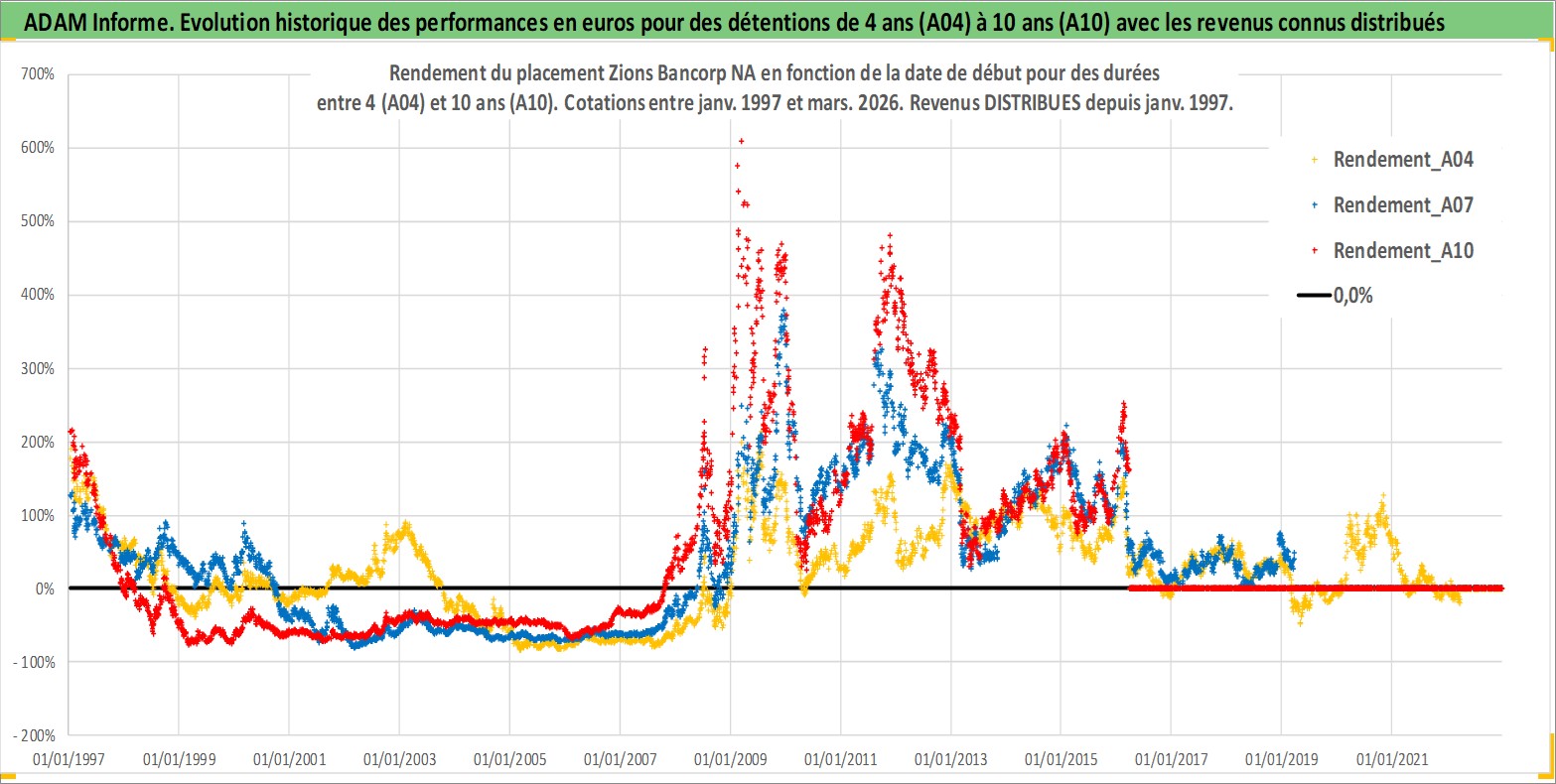 Site dédié aux investisseursPage dédiée sur site financeAnalyse des valorisations hebdomadaires de l'action Zions Bancorp NA. Cet actif est cote en USD. Les valorisations sont en contrevaleur EURO et couvrent les semaines 1997W01 a 2026W13. Les revenus de cet actif financier sont pris en compte depuis la semaine 1997W01. La note ESG de cet actif n'est pas connue.