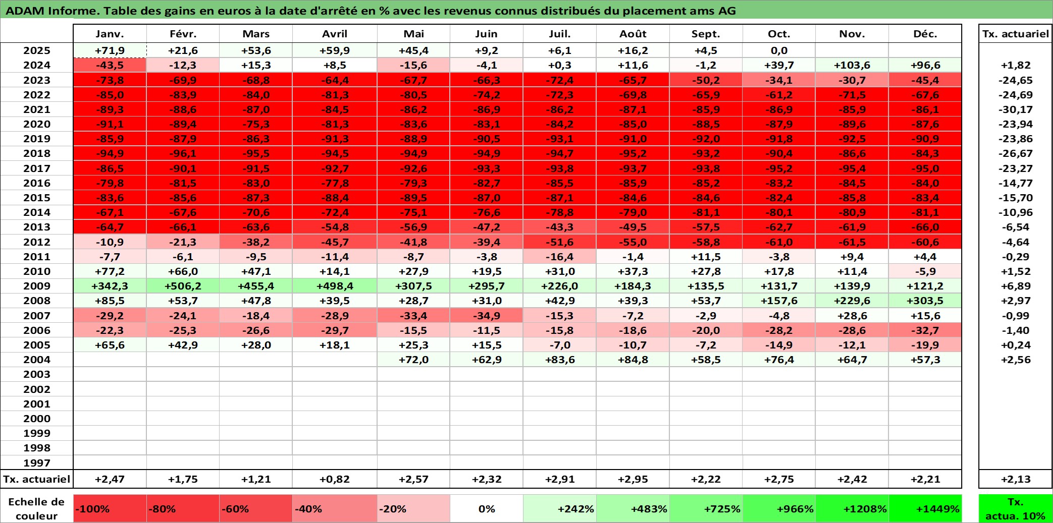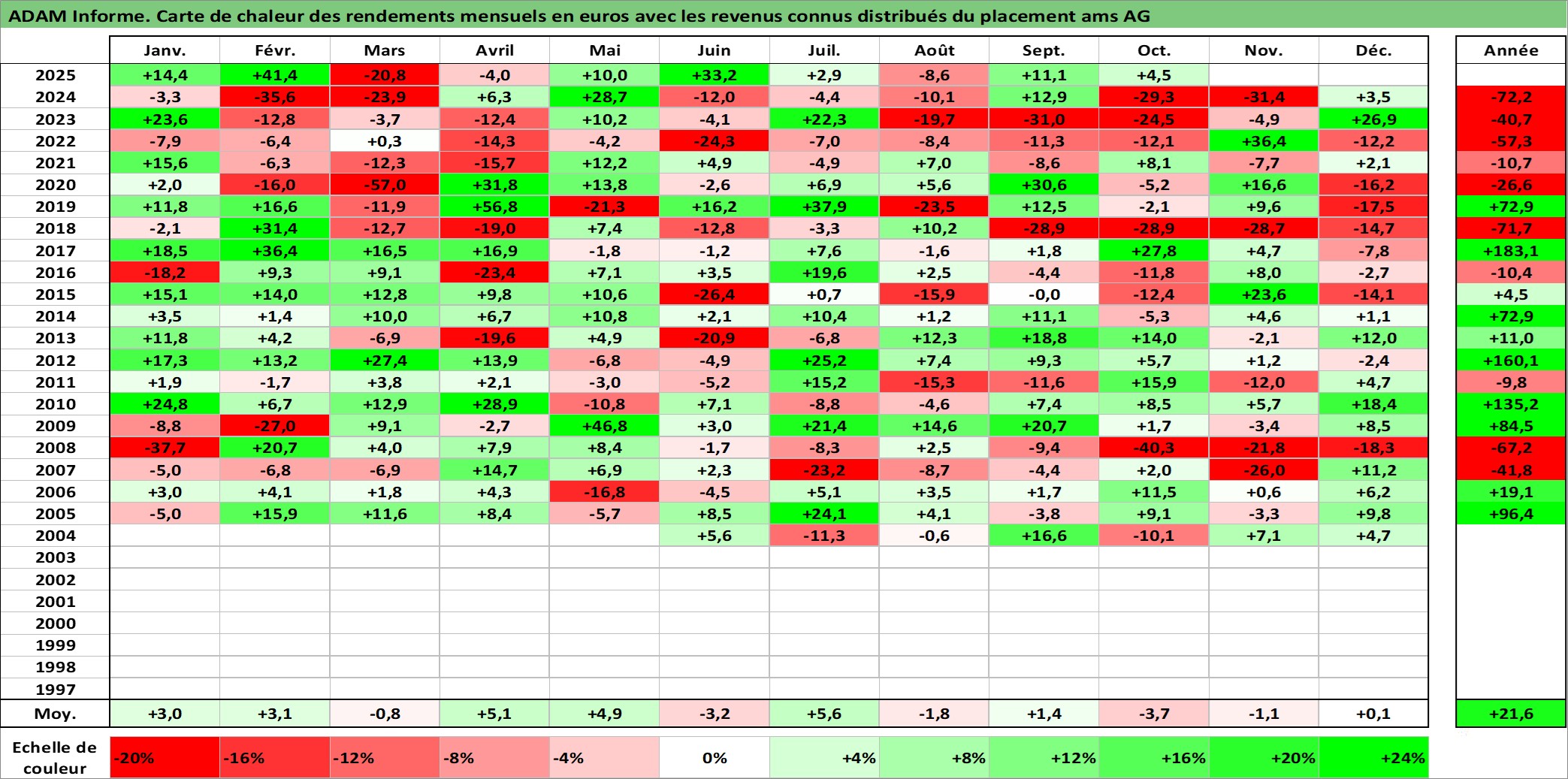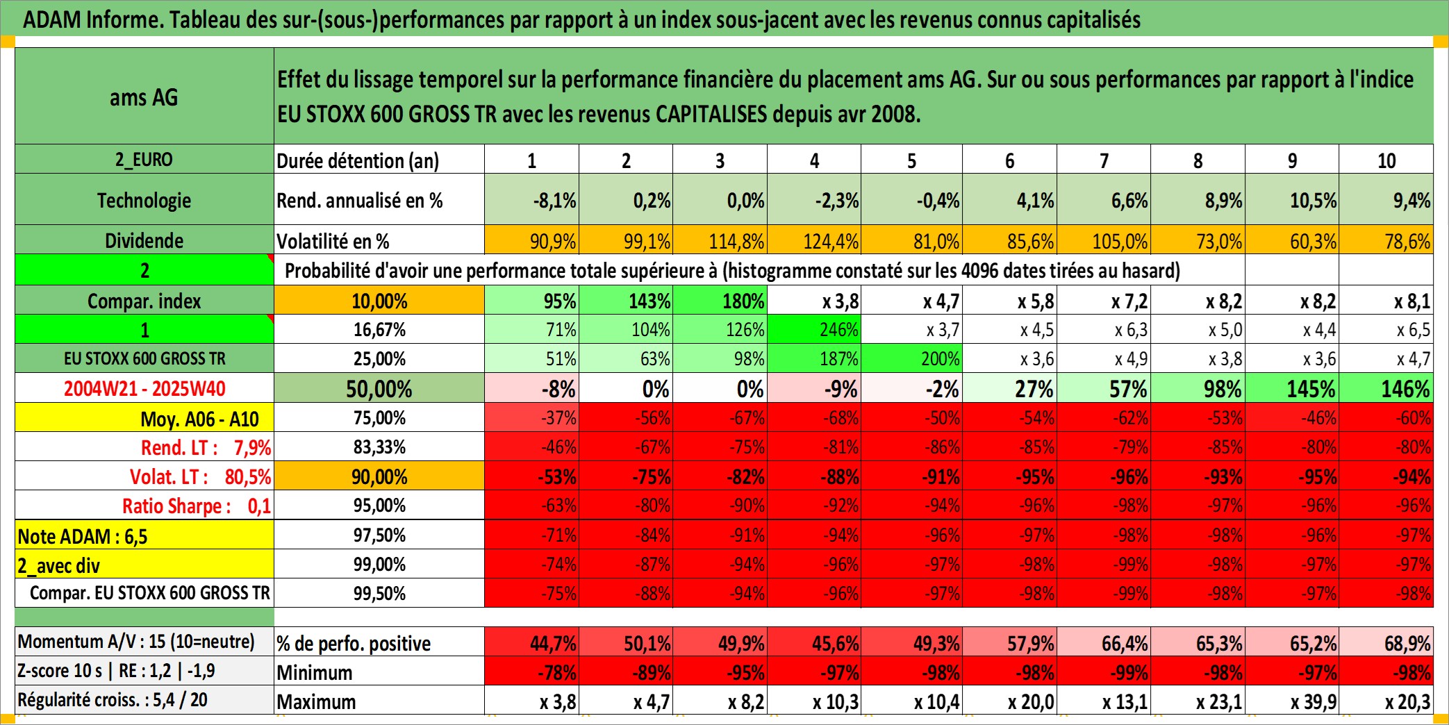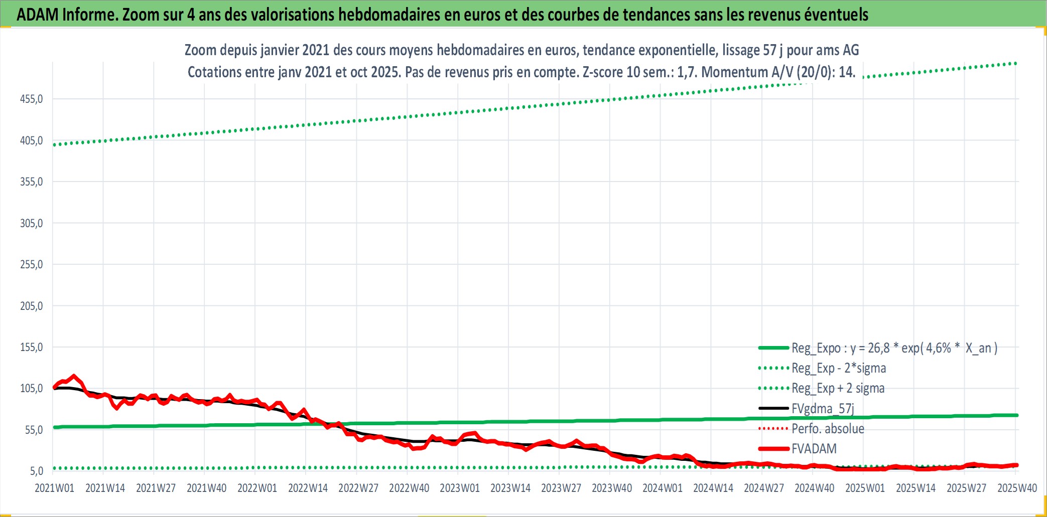 Site dédié aux investisseursPage dédiée sur site financeAnalyse des valorisations hebdomadaires de l'action ams AG. Cet actif est cote en CHF. Les valorisations sont en contrevaleur EURO et couvrent les semaines 2004W21 a 2025W40. Les revenus de cet actif financier sont pris en compte depuis la semaine 2008W14. La note ESG de cet actif n'est pas connue.