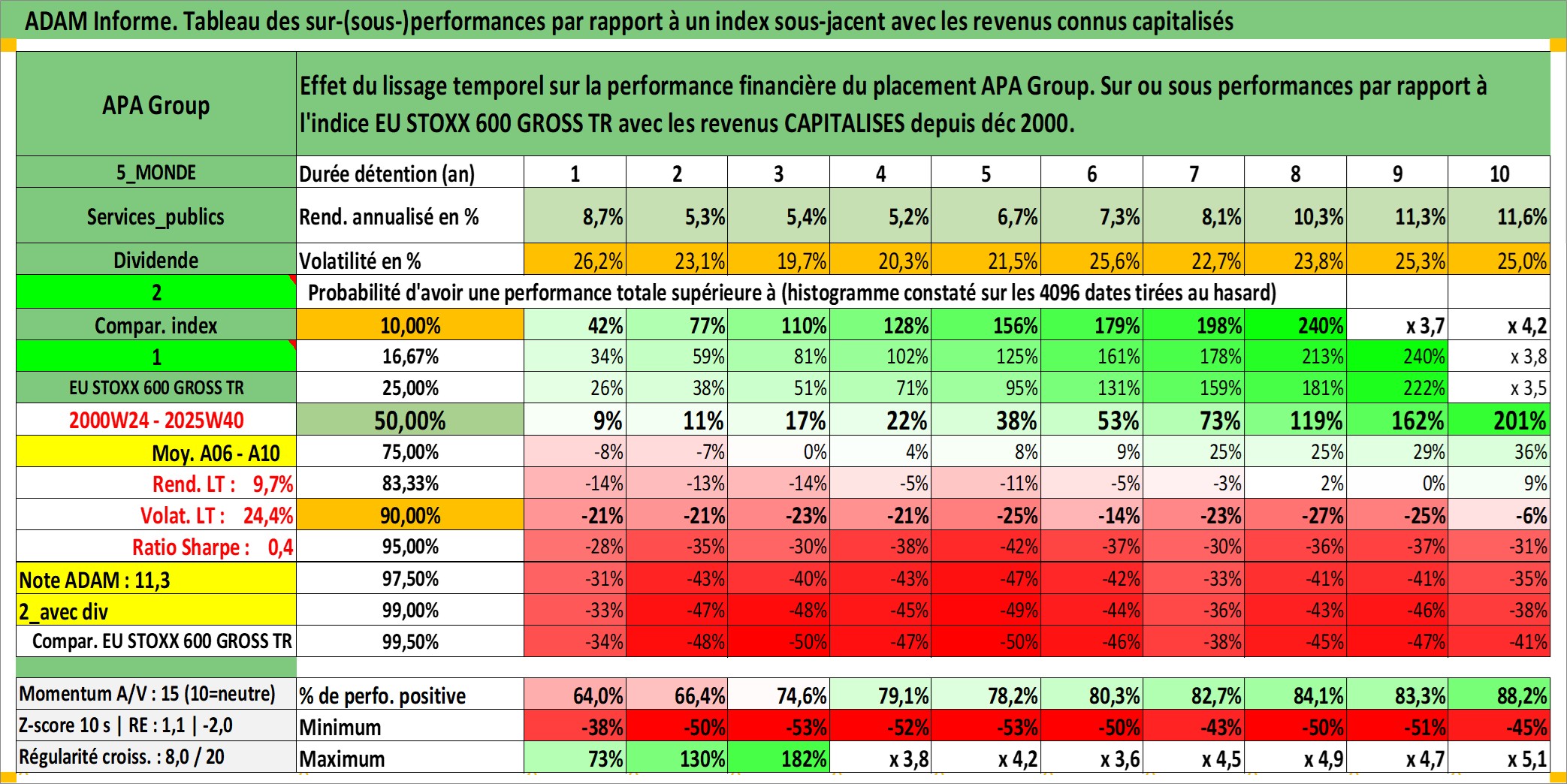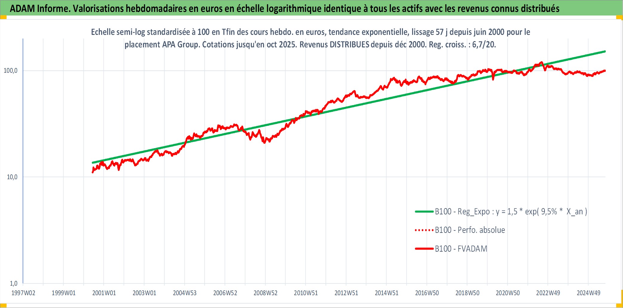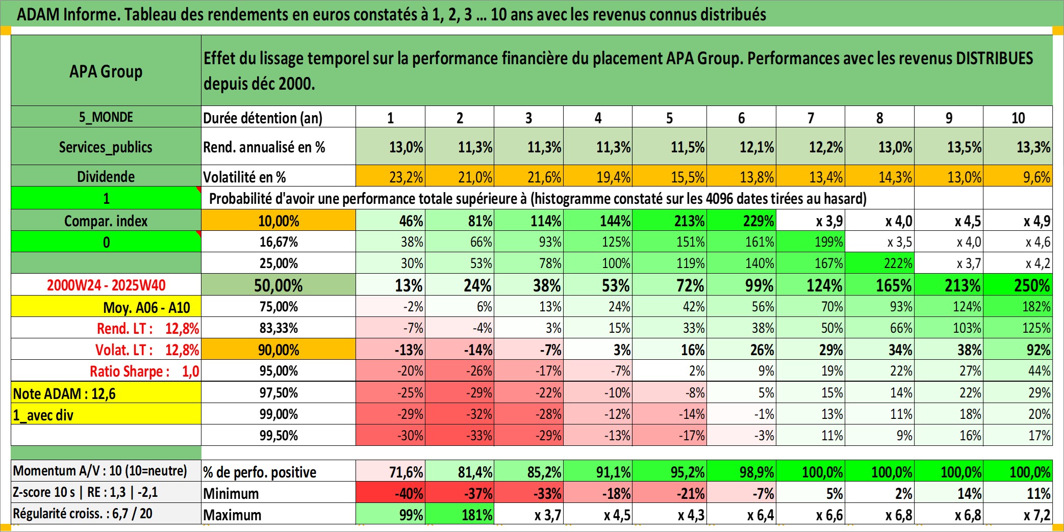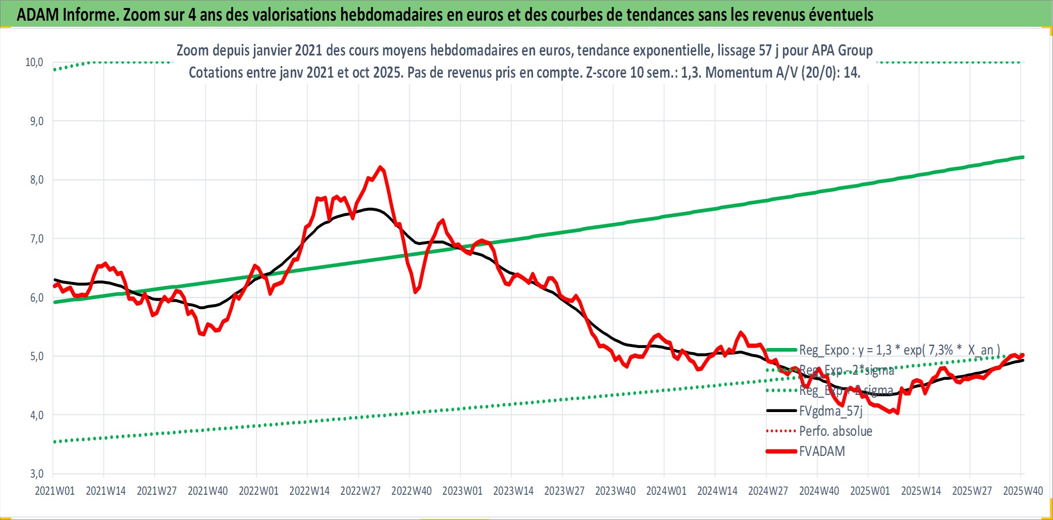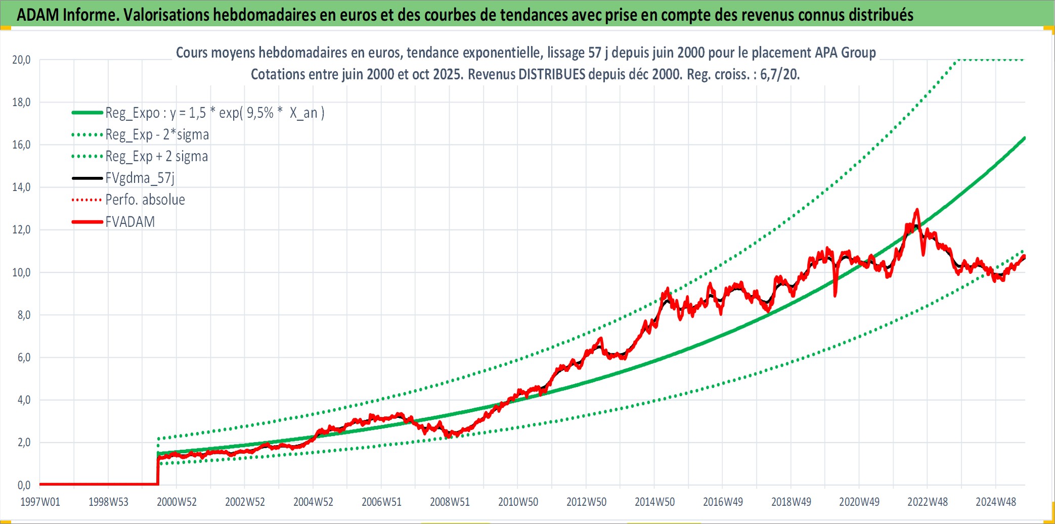 Site dédié aux investisseursPage dédiée sur site financeAnalyse des valorisations hebdomadaires de l'action APA Group. Cet actif est cote en AUD. Les valorisations sont en contrevaleur EURO et couvrent les semaines 2000W24 a 2025W40. Les revenus de cet actif financier sont pris en compte depuis la semaine 2000W48. La note globale ESG de cet actif est estimee a 4.0 (apres rebasage entre 0 et 20).