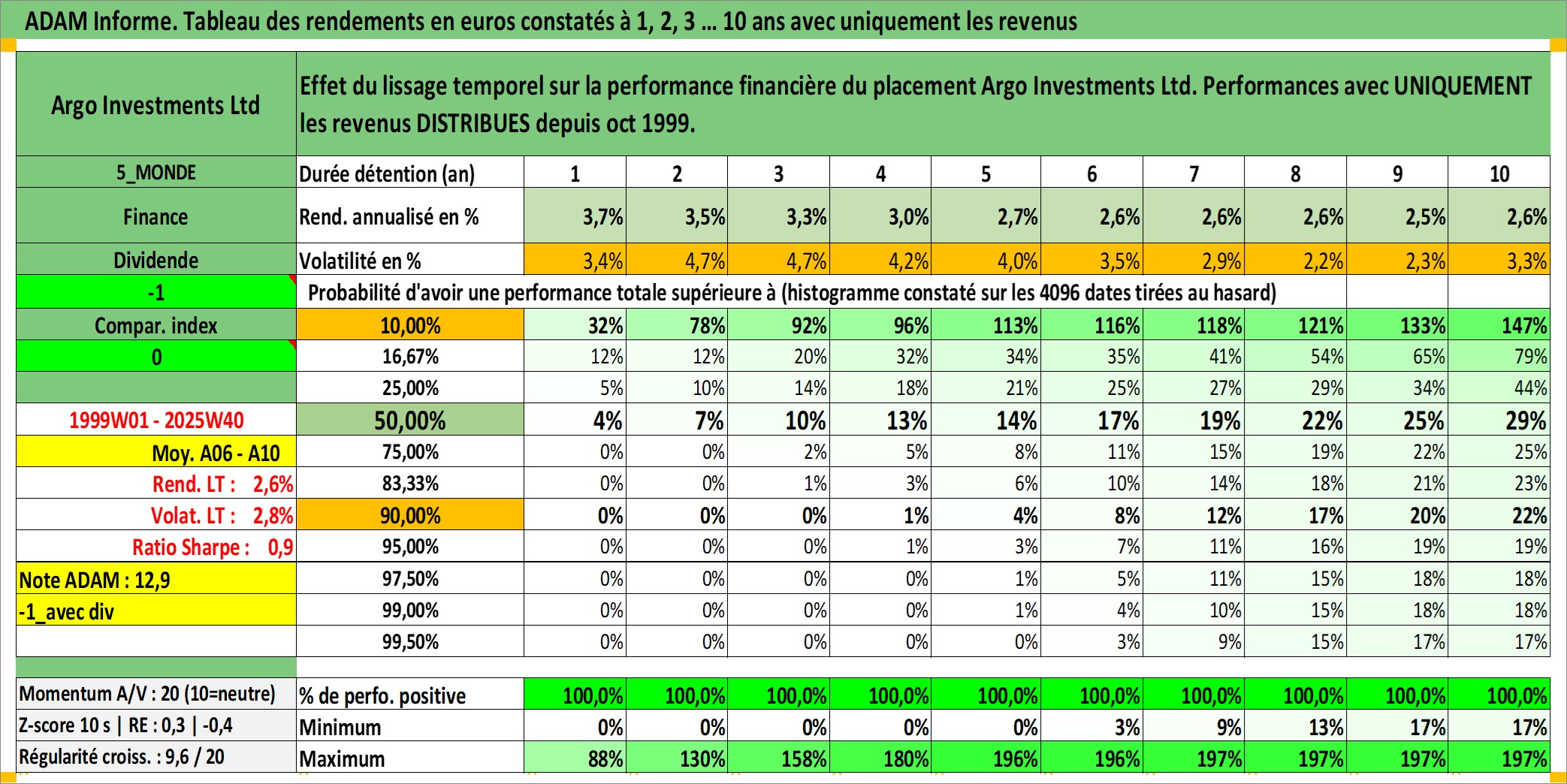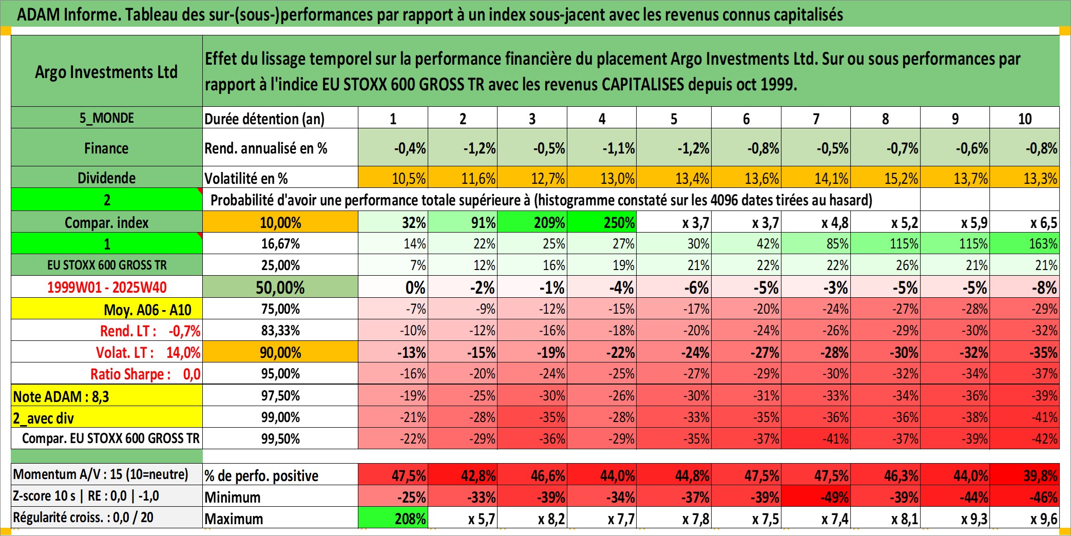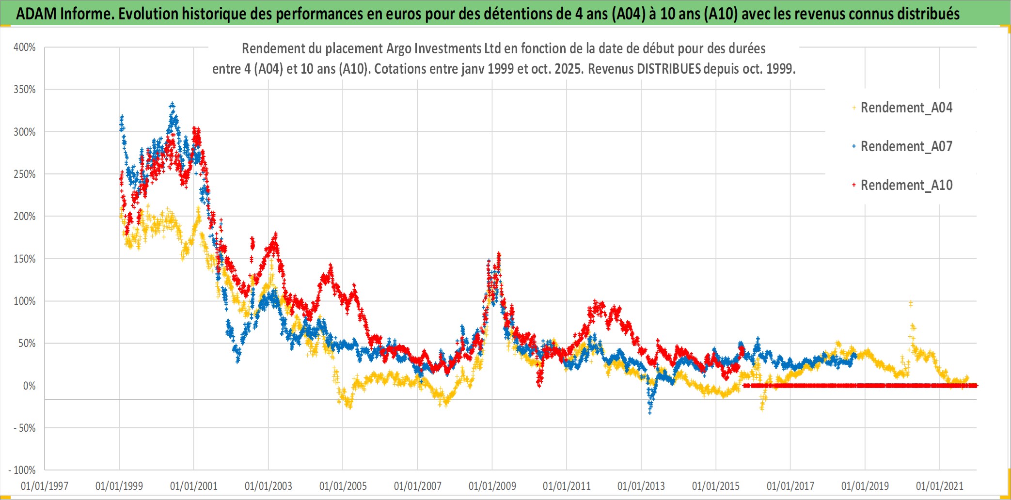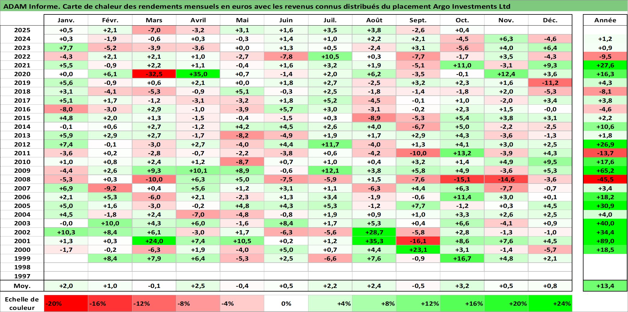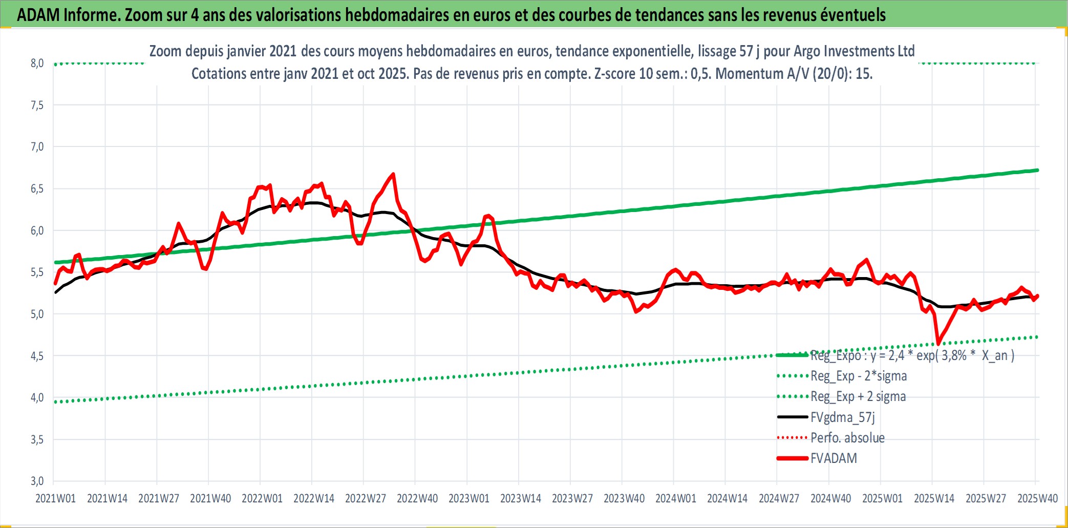 Site dédié aux investisseursPage dédiée sur site financeAnalyse des valorisations hebdomadaires de l'action Argo Investments Ltd. Cet actif est cote en AUD. Les valorisations sont en contrevaleur EURO et couvrent les semaines 1999W01 a 2025W40. Les revenus de cet actif financier sont pris en compte depuis la semaine 1999W42. La note ESG de cet actif n'est pas connue.