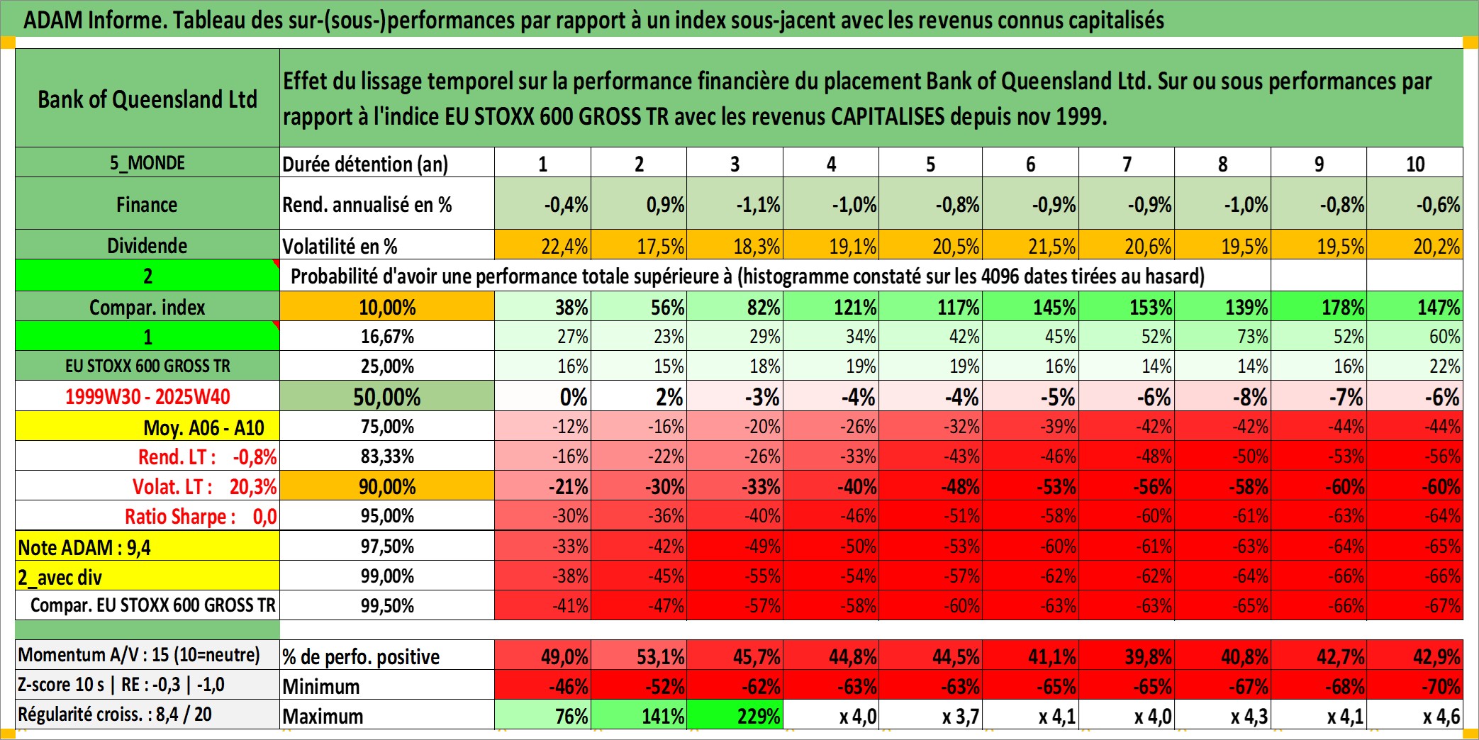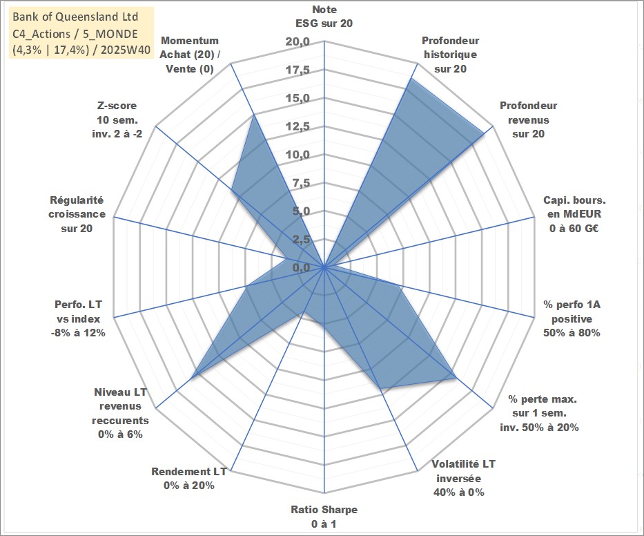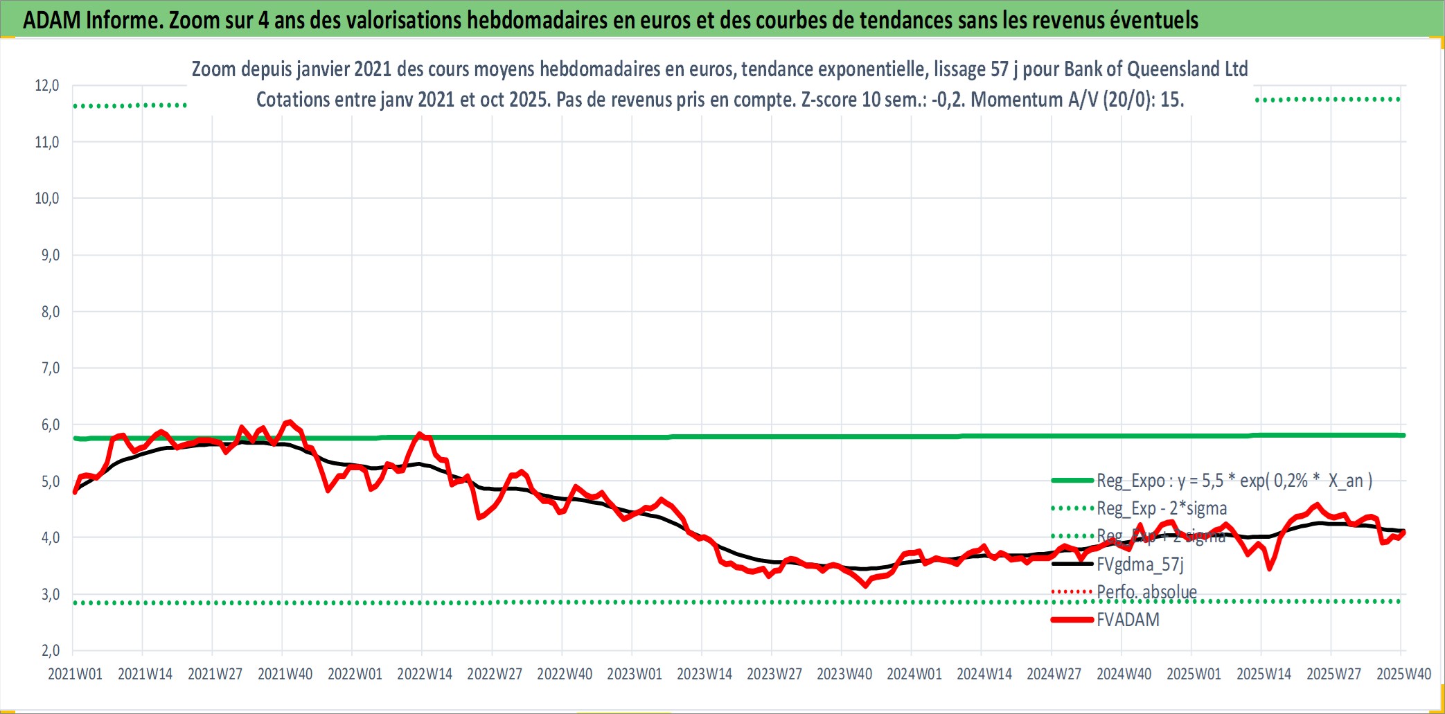 Site dédié aux investisseursPage dédiée sur site financeAnalyse des valorisations hebdomadaires de l'action Bank of Queensland Ltd. Cet actif est cote en AUD. Les valorisations sont en contrevaleur EURO et couvrent les semaines 1999W30 a 2025W40. Les revenus de cet actif financier sont pris en compte depuis la semaine 1999W46. La note ESG de cet actif n'est pas connue.