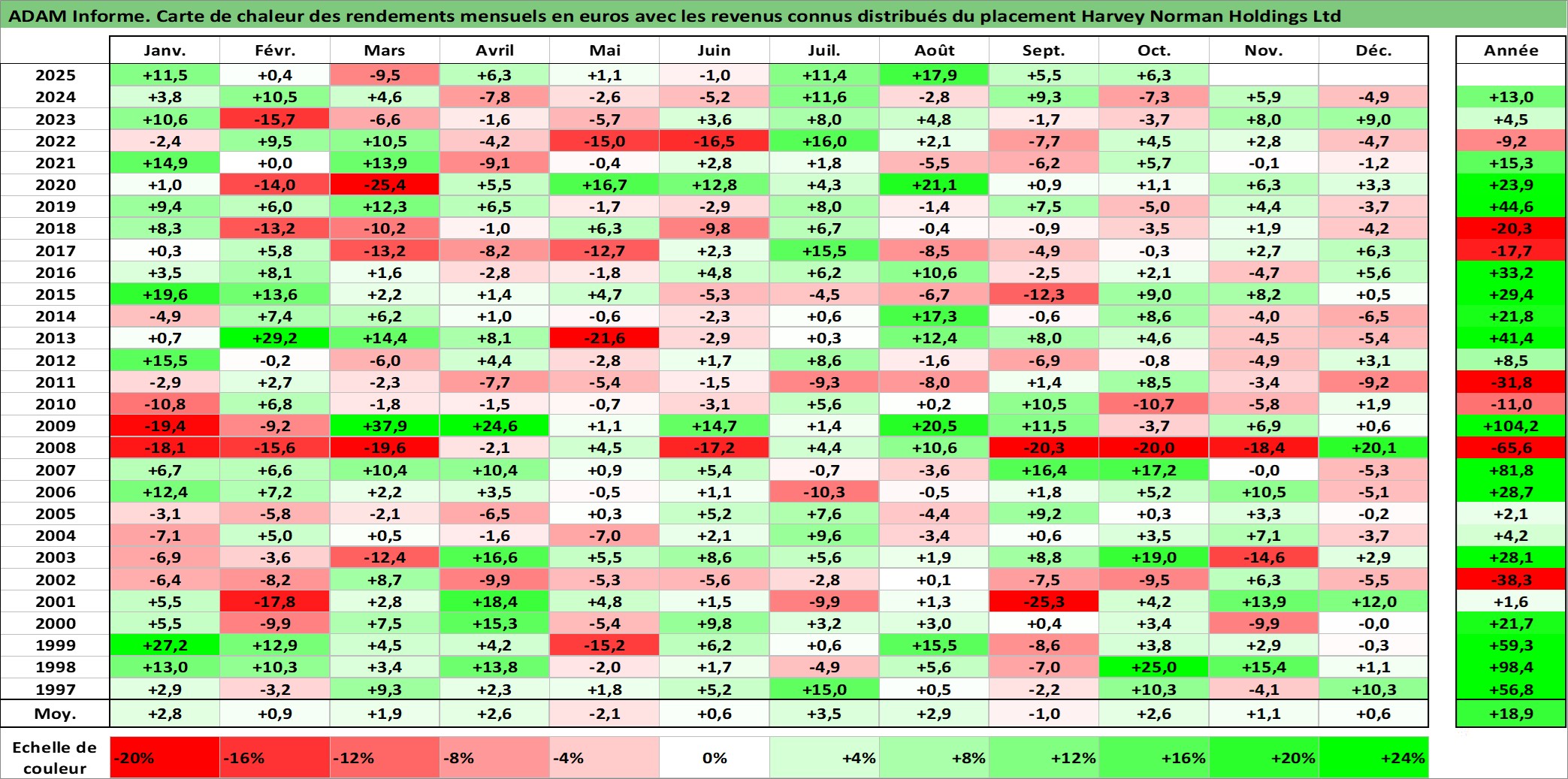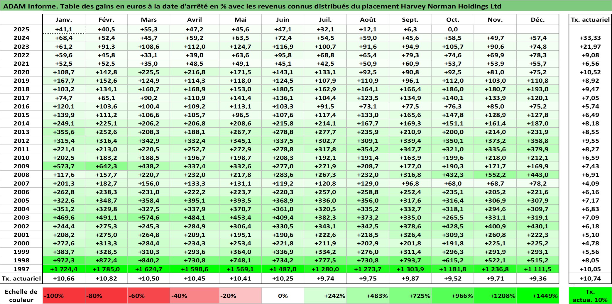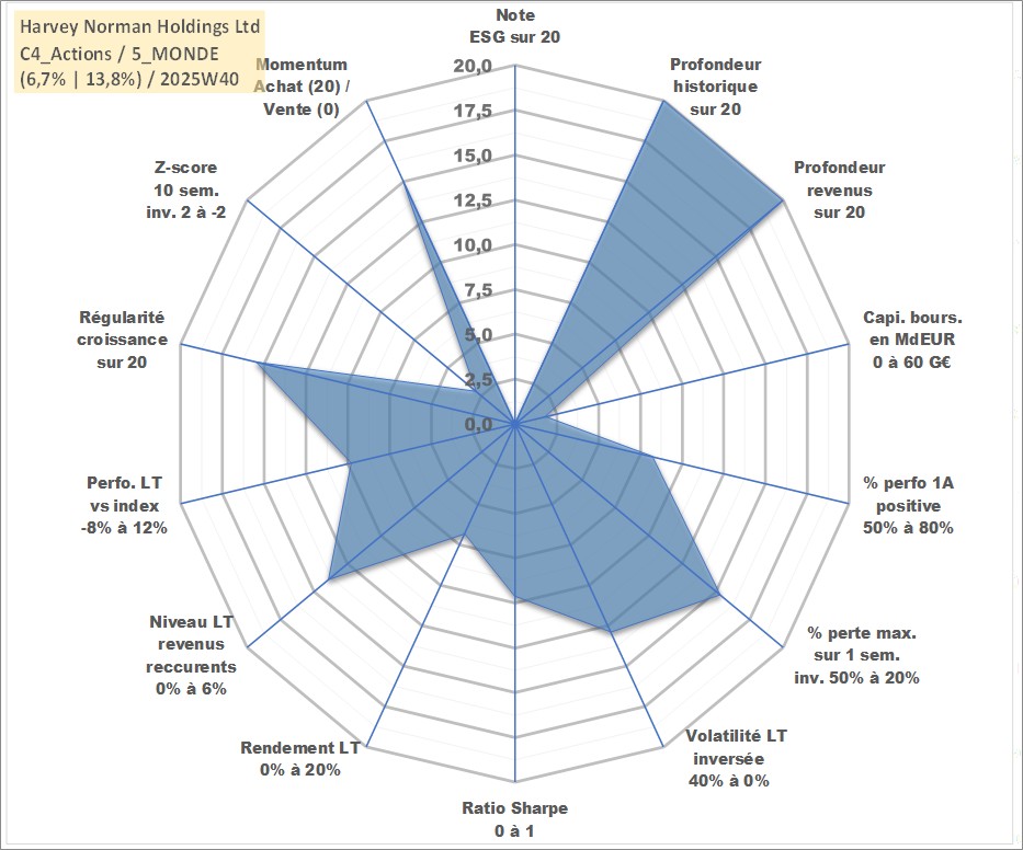 Site dédié aux investisseursPage dédiée sur site financeAnalyse des valorisations hebdomadaires de l'action Harvey Norman Holdings Ltd. Cet actif est cote en AUD. Les valorisations sont en contrevaleur EURO et couvrent les semaines 1997W01 a 2025W40. Les revenus de cet actif financier sont pris en compte depuis la semaine 1997W15. La note ESG de cet actif n'est pas connue.