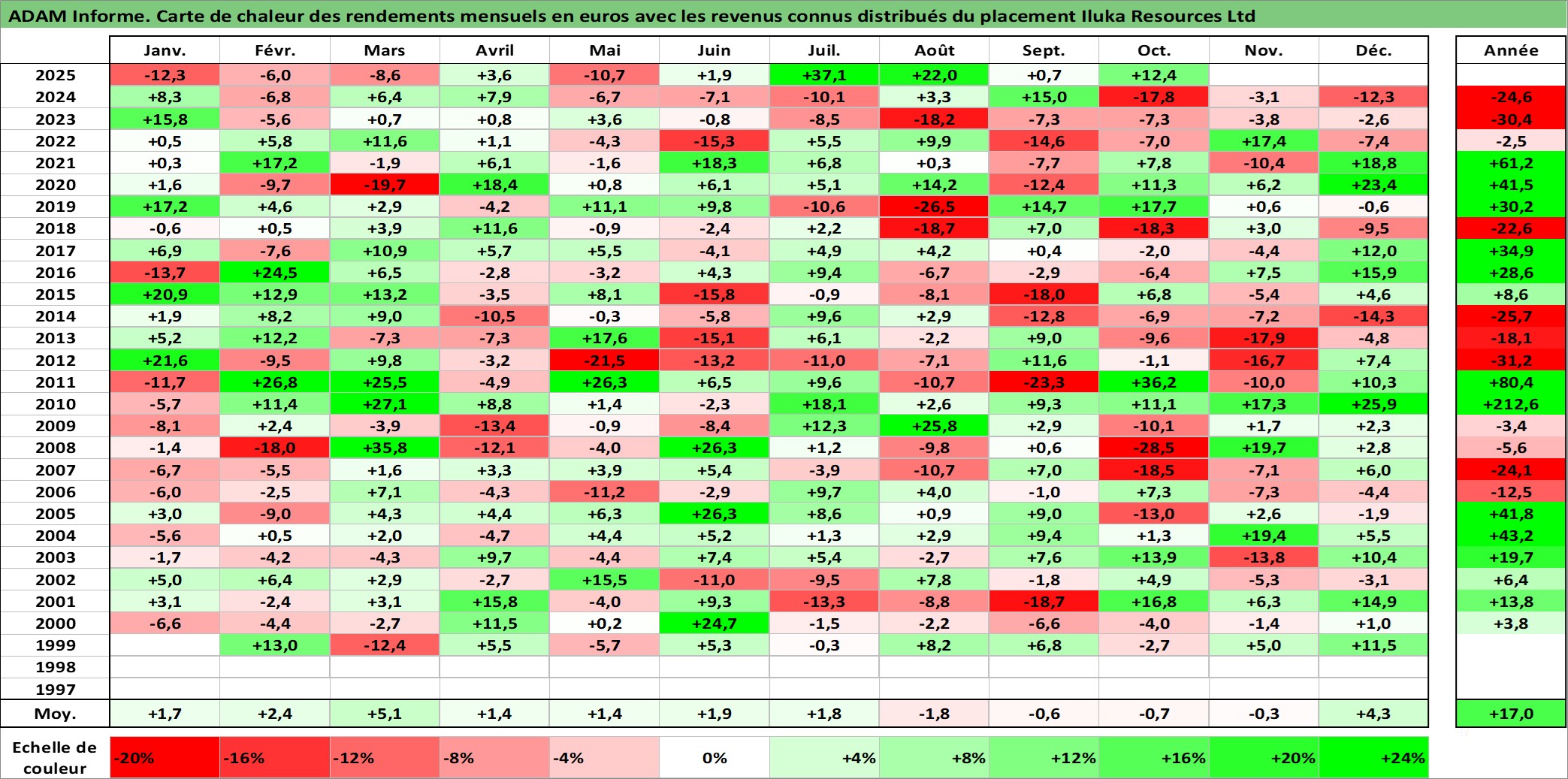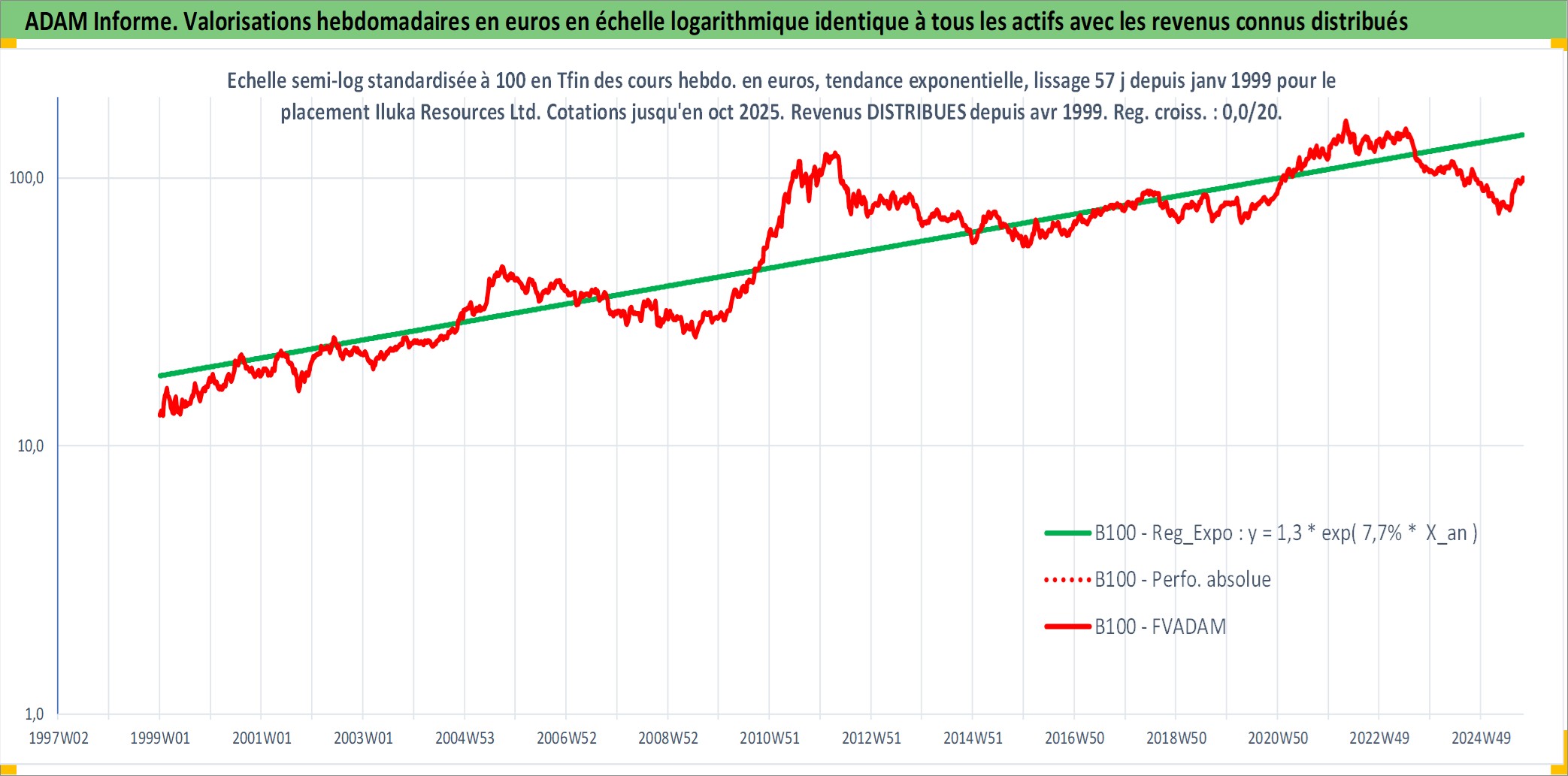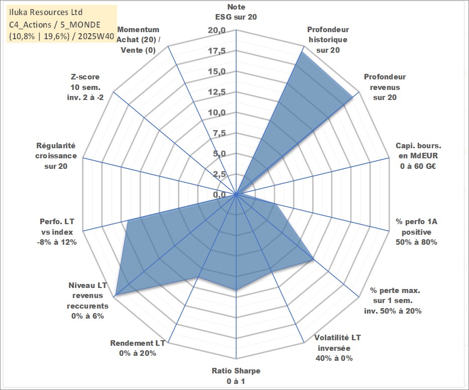 Site dédié aux investisseursPage dédiée sur site financeAnalyse des valorisations hebdomadaires de l'action Iluka Resources Ltd. Cet actif est cote en AUD. Les valorisations sont en contrevaleur EURO et couvrent les semaines 1999W01 a 2025W40. Les revenus de cet actif financier sont pris en compte depuis la semaine 1999W17. La note ESG de cet actif n'est pas connue.