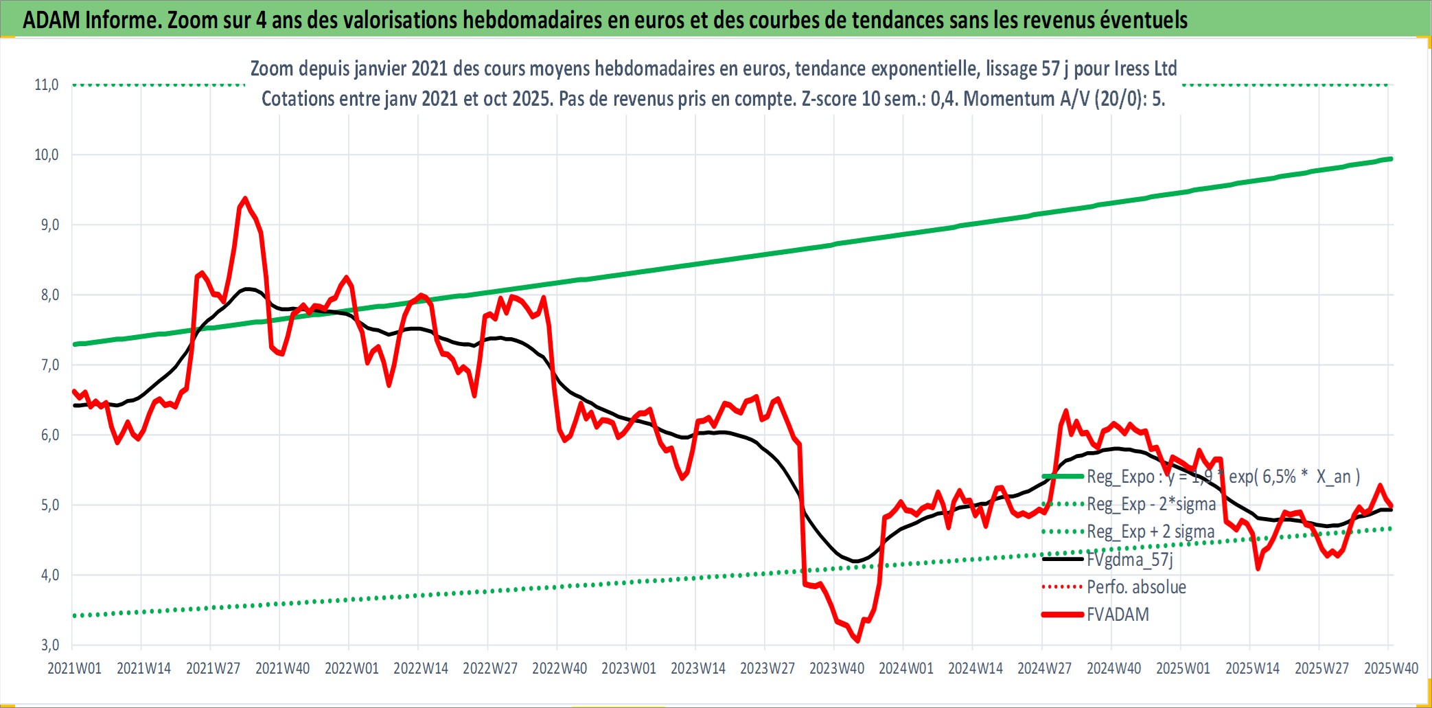 Site dédié aux investisseursPage dédiée sur site financeAnalyse des valorisations hebdomadaires de l'action Iress Ltd. Cet actif est cote en AUD. Les valorisations sont en contrevaleur EURO et couvrent les semaines 2000W44 a 2025W40. Les revenus de cet actif financier sont pris en compte depuis la semaine 2001W09. La note ESG de cet actif n'est pas connue.