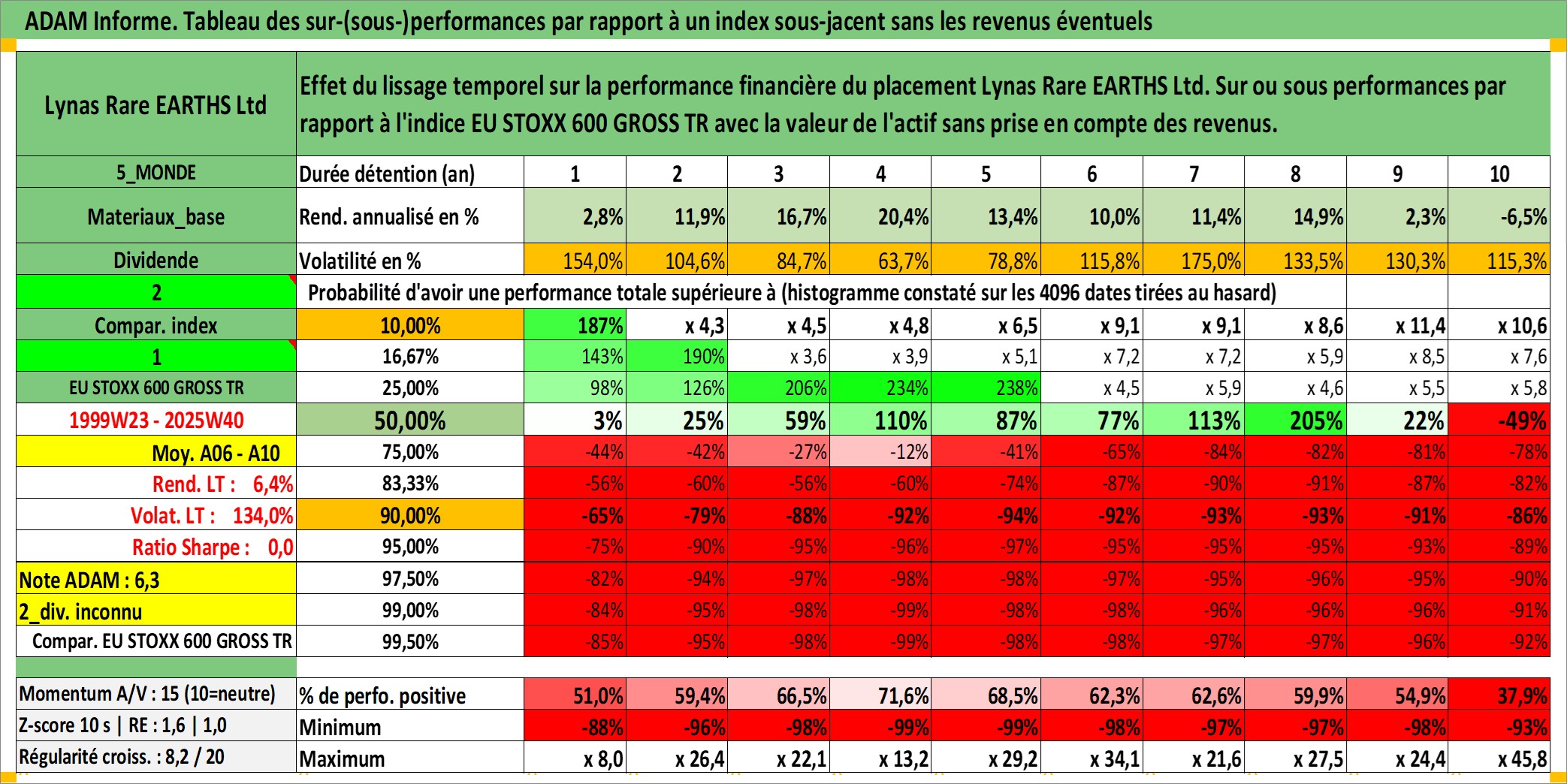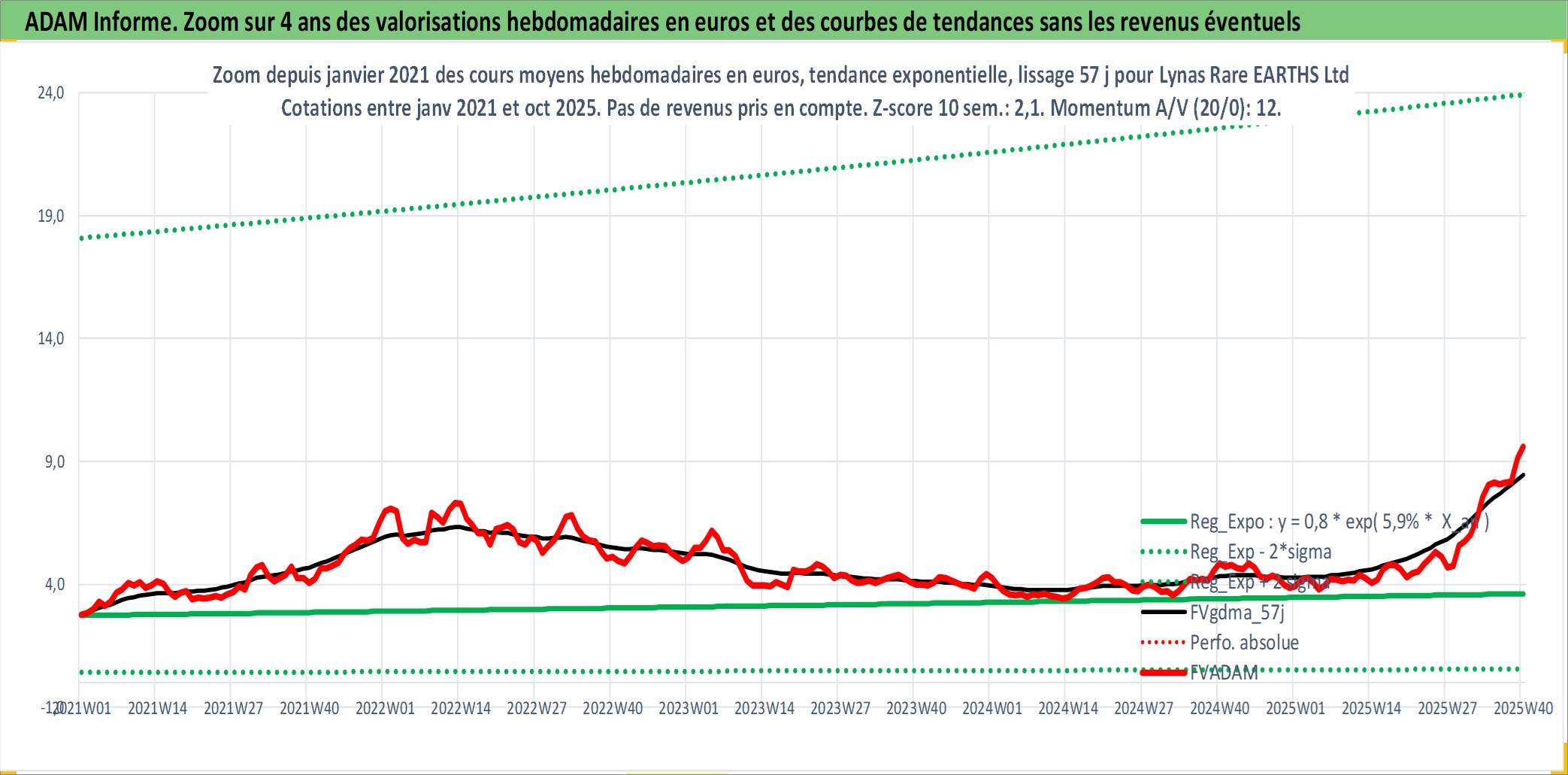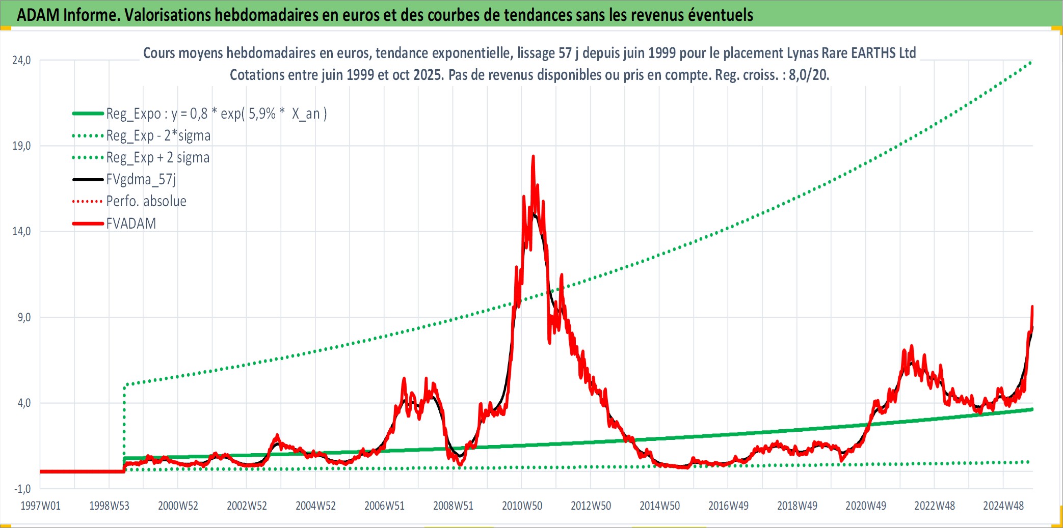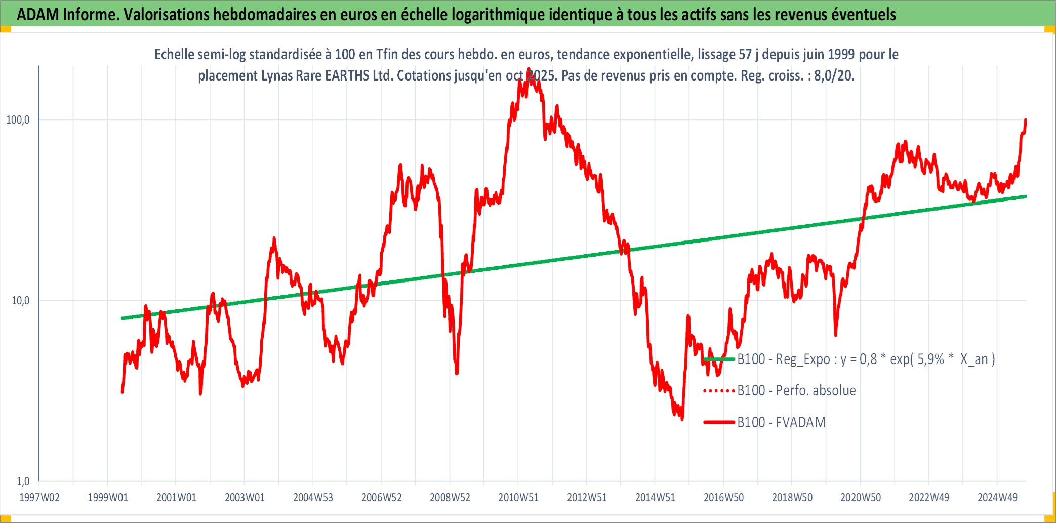 Site dédié aux investisseursPage dédiée sur site financeAnalyse des valorisations hebdomadaires de l'action Lynas Rare EARTHS Ltd. Cet actif est cote en AUD. Les valorisations sont en contrevaleur EURO et couvrent les semaines 1999W23 a 2025W40. Les revenus de cet actif financier ne sont pas connus car non existants ou non disponibles sur le site Yahoo Finance. La note ESG de cet actif n'est pas connue.