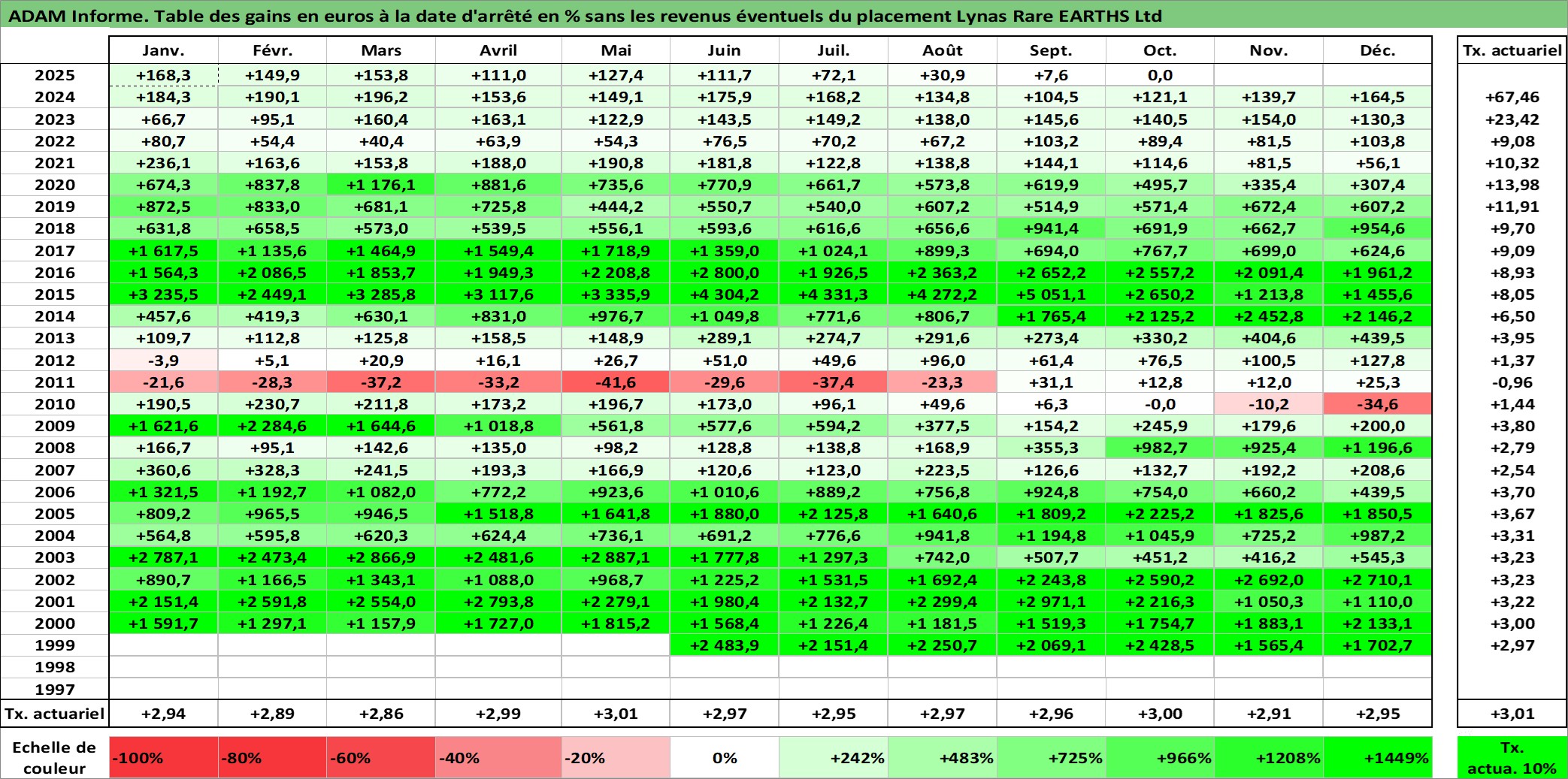 Dernière perfo 10 ans en %