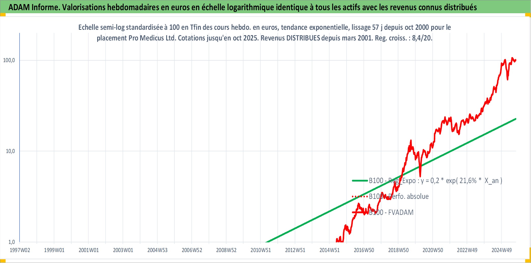 Site dédié aux investisseursPage dédiée sur site financeAnalyse des valorisations hebdomadaires de l'action Pro Medicus Ltd. Cet actif est cote en AUD. Les valorisations sont en contrevaleur EURO et couvrent les semaines 2000W41 a 2025W40. Les revenus de cet actif financier sont pris en compte depuis la semaine 2001W11. La note ESG de cet actif n'est pas connue.