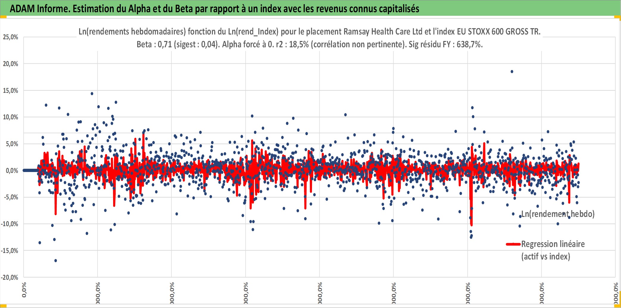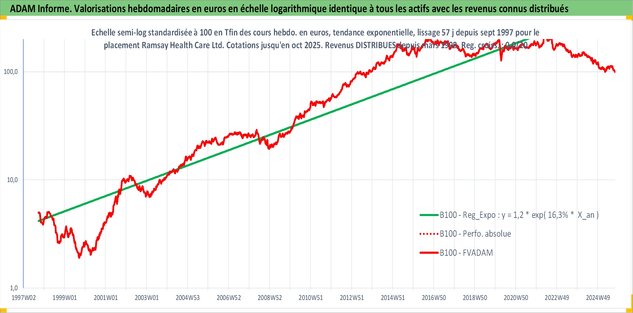 Site dédié aux investisseursPage dédiée sur site financeAnalyse des valorisations hebdomadaires de l'action Ramsay Health Care Ltd. Cet actif est cote en AUD. Les valorisations sont en contrevaleur EURO et couvrent les semaines 1997W40 a 2025W40. Les revenus de cet actif financier sont pris en compte depuis la semaine 1998W10. La note globale ESG de cet actif est estimee a 10.0 (apres rebasage entre 0 et 20).