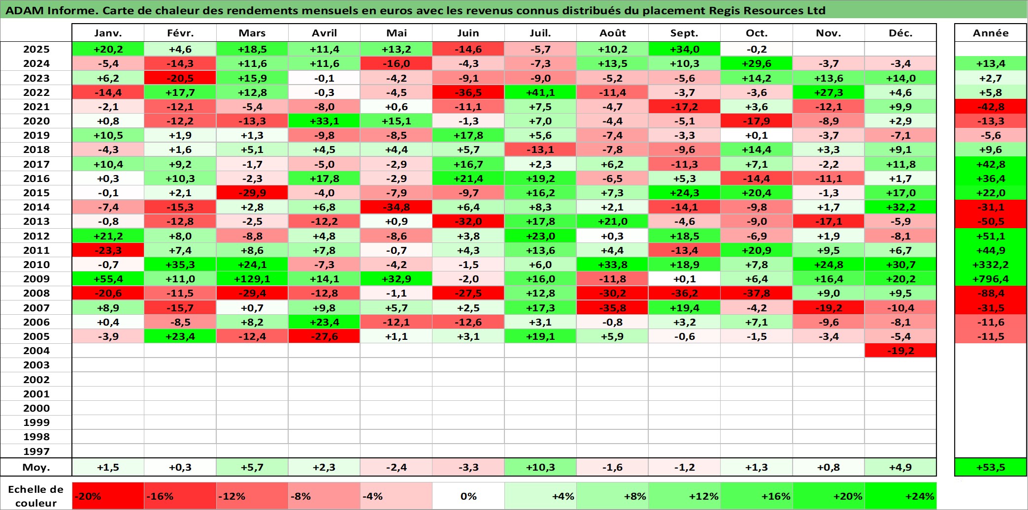 Régularité croissance sur 20