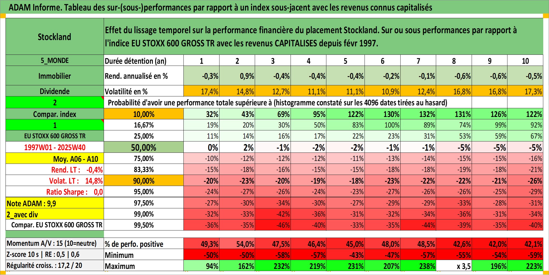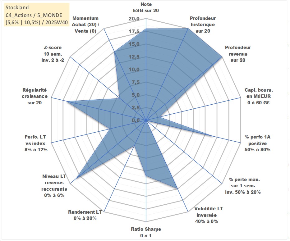 Site dédié aux investisseursPage dédiée sur site financeAnalyse des valorisations hebdomadaires de l'action Stockland. Cet actif est cote en AUD. Les valorisations sont en contrevaleur EURO et couvrent les semaines 1997W01 a 2025W40. Les revenus de cet actif financier sont pris en compte depuis la semaine 1997W07. La note globale ESG de cet actif est estimee a 18.0 (apres rebasage entre 0 et 20).