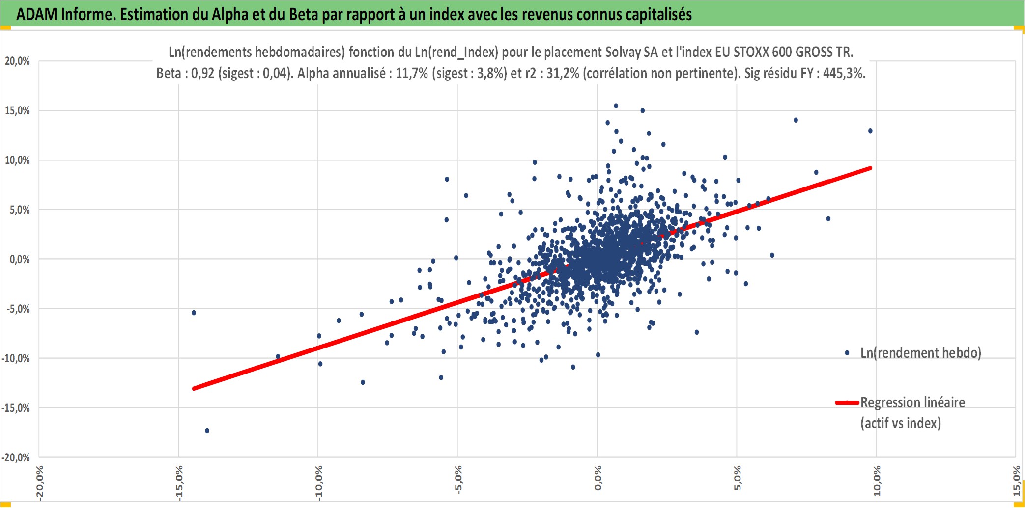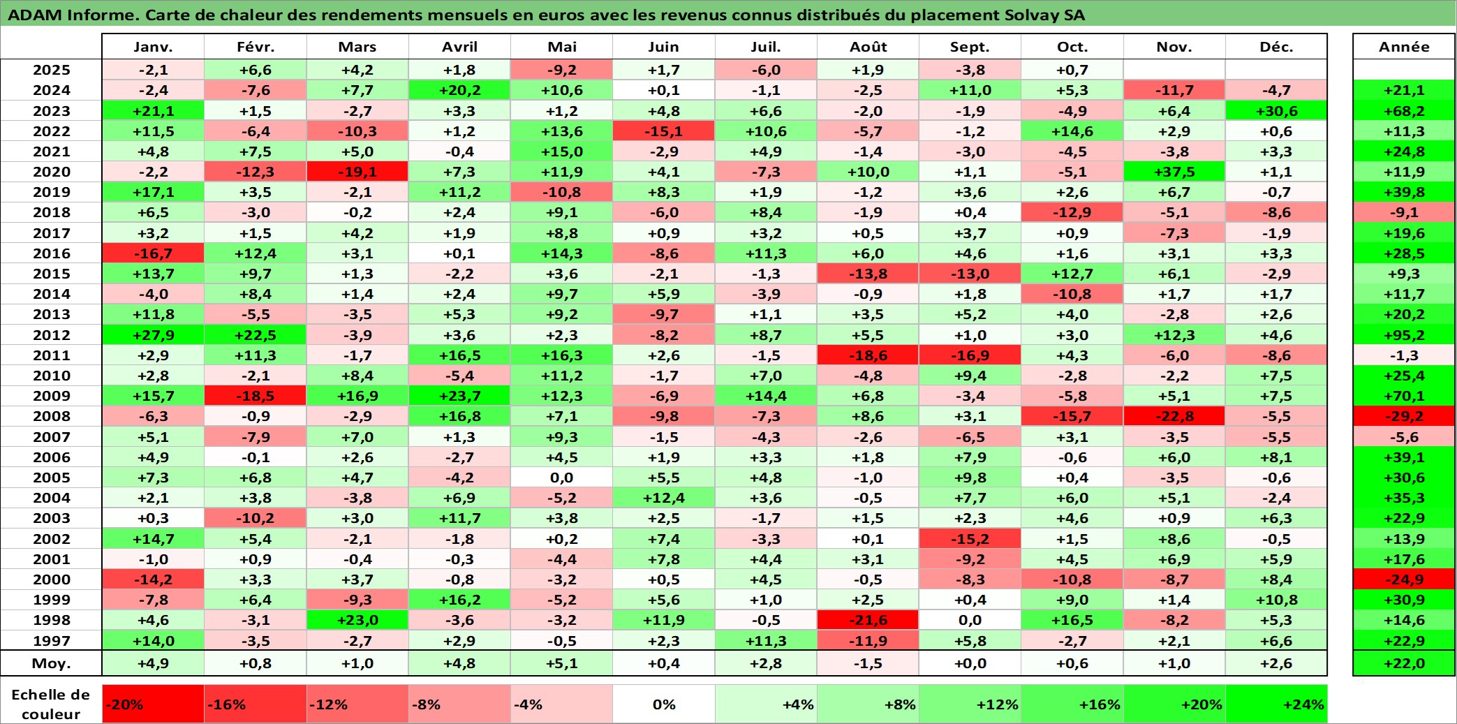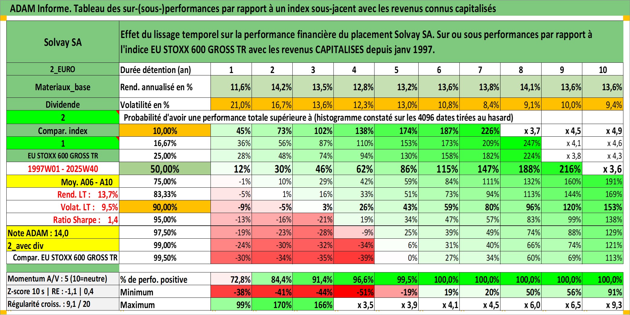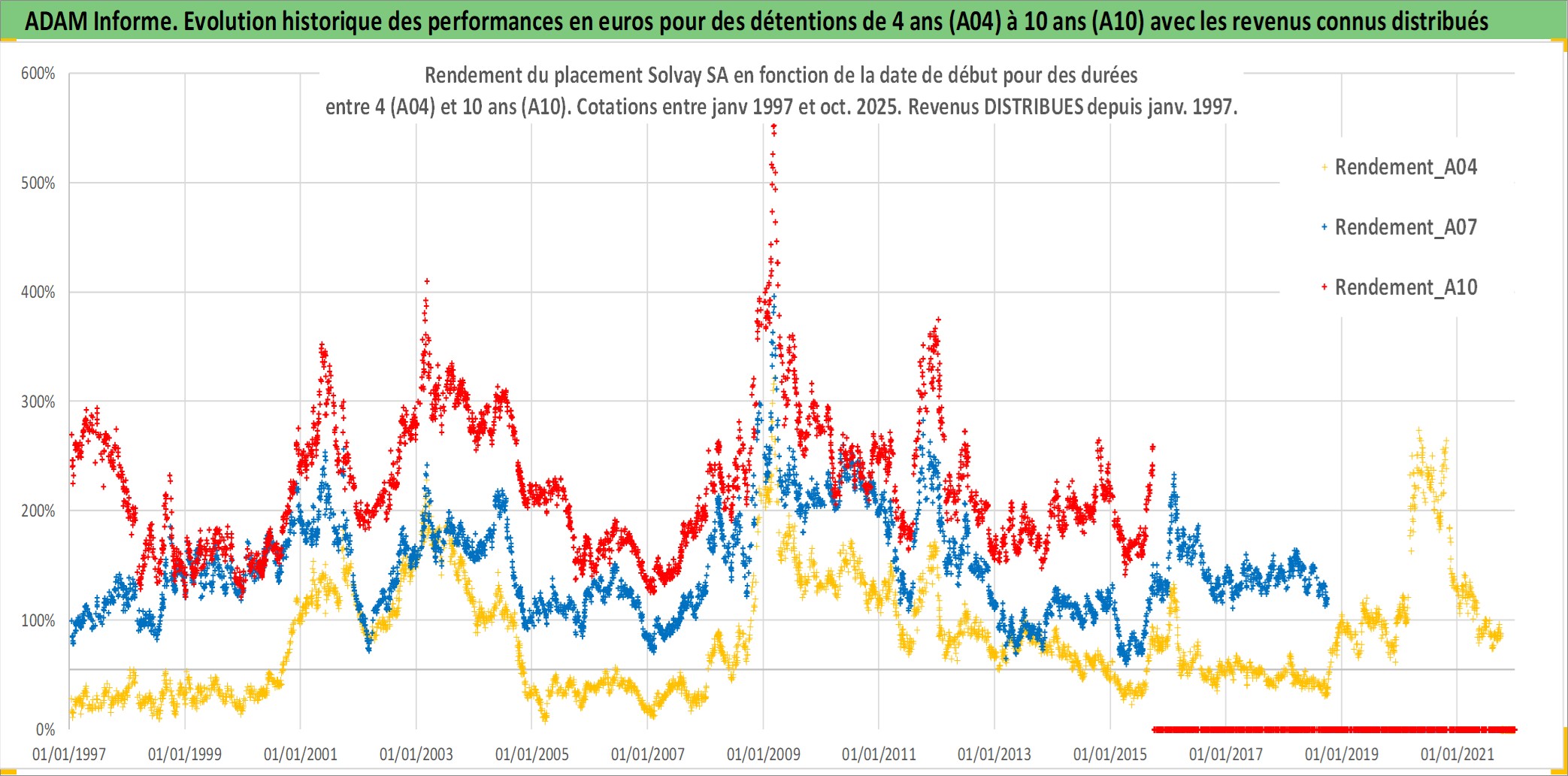 Site dédié aux investisseursPage dédiée sur site financeAnalyse des valorisations hebdomadaires de l'action Solvay SA. Cet actif est cote en EUR. Les valorisations couvrent les semaines 1997W01 a 2025W40. Les revenus de cet actif financier sont pris en compte depuis la semaine 1997W04. La note globale ESG de cet actif est estimee a 8.0 (apres rebasage entre 0 et 20).