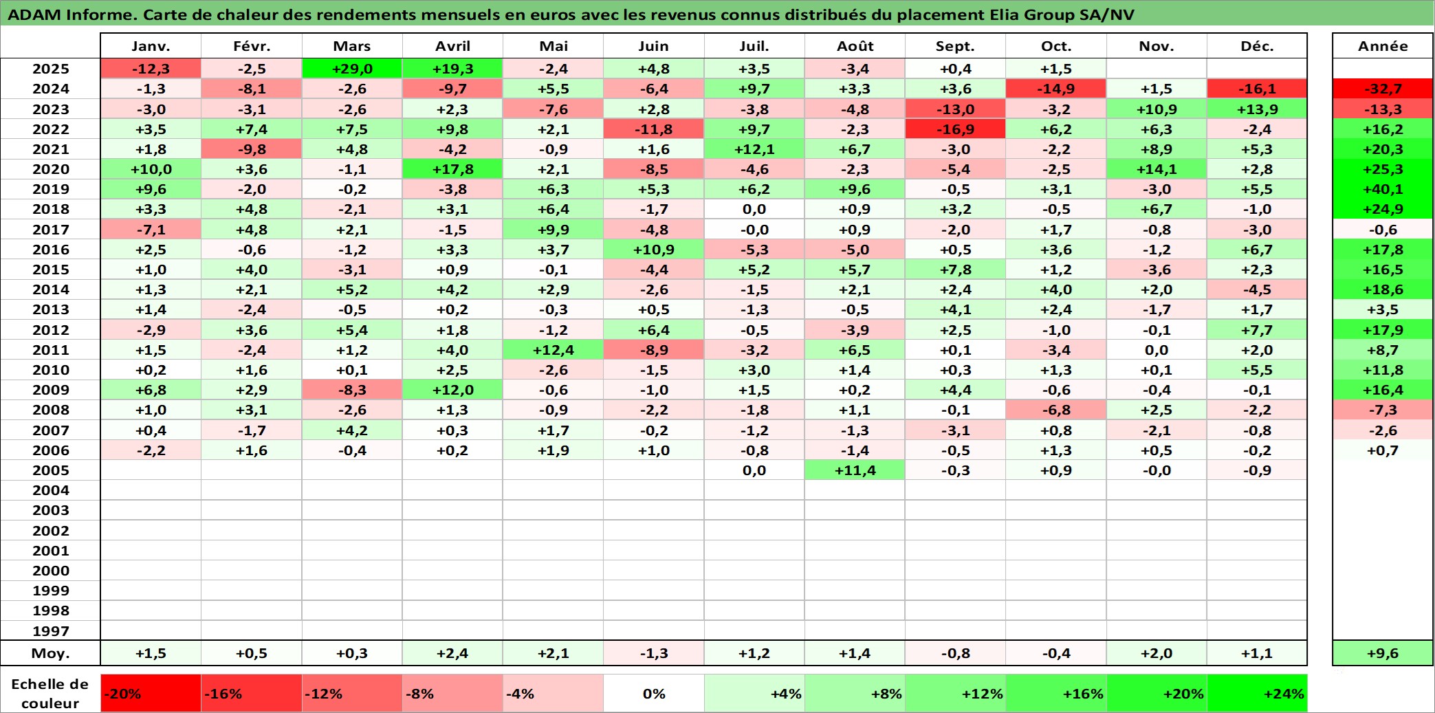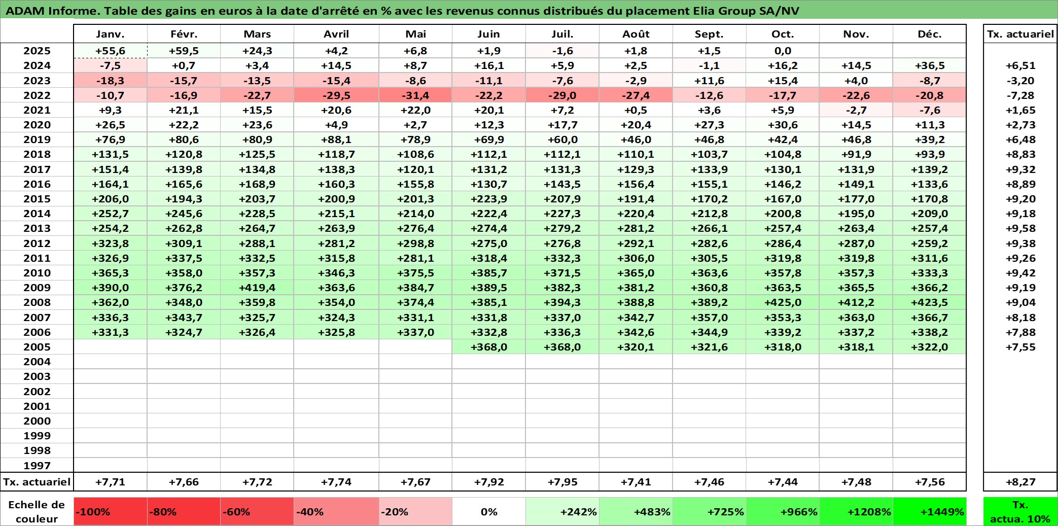 Site dédié aux investisseursPage dédiée sur site financeAnalyse des valorisations hebdomadaires de l'action Elia Group SA/NV. Cet actif est cote en EUR. Les valorisations couvrent les semaines 2005W24 a 2025W40. Les revenus de cet actif financier sont pris en compte depuis la semaine 2006W19. La note ESG de cet actif n'est pas connue.