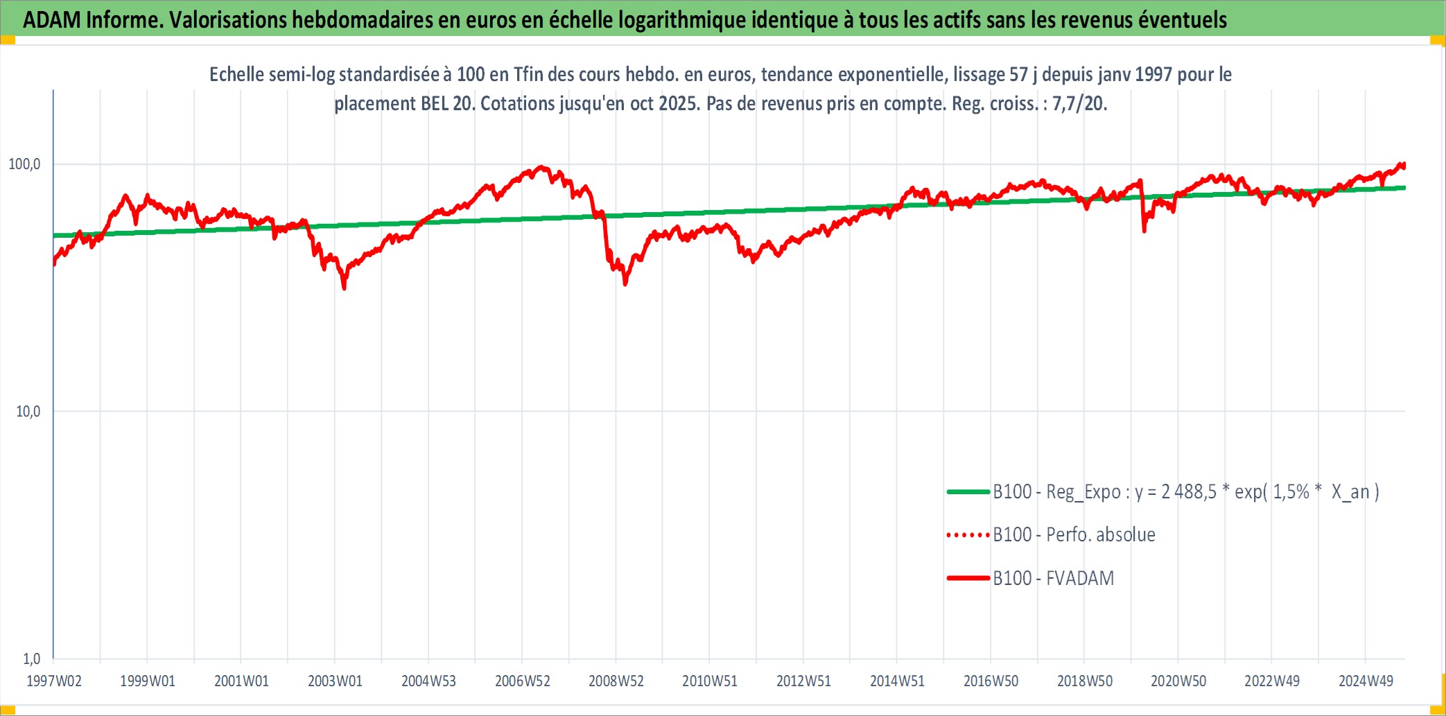Site dédié aux investisseursPage dédiée sur site financeAnalyse des valorisations hebdomadaires de l'actif BEL 20. Cet actif est cote en EUR. Les valorisations couvrent les semaines 1997W01 a 2025W40. Les revenus de cet actif financier ne sont pas connus car non existants ou non disponibles sur le site Yahoo Finance. La note ESG de cet actif n'est pas connue.