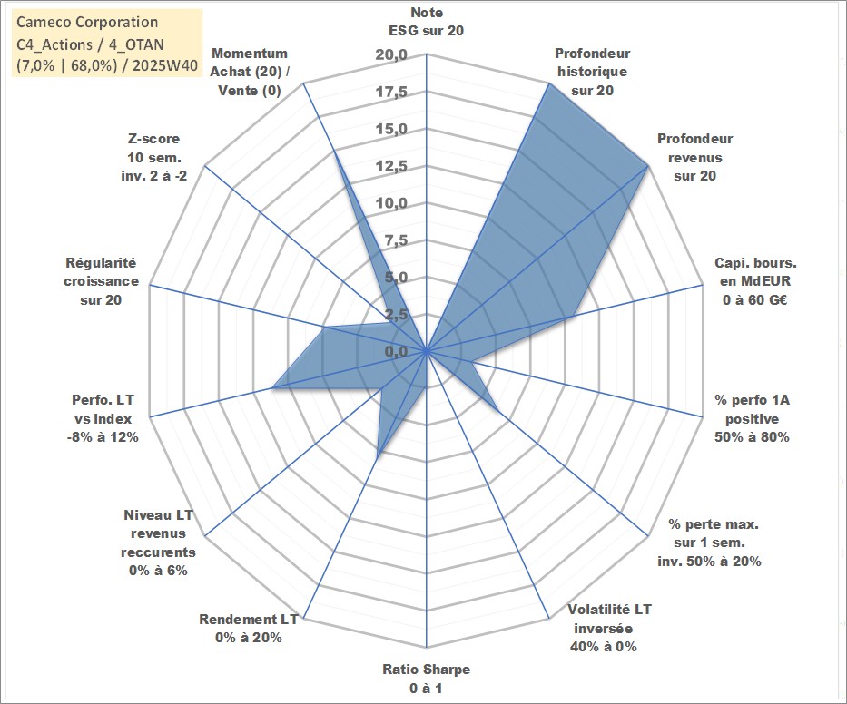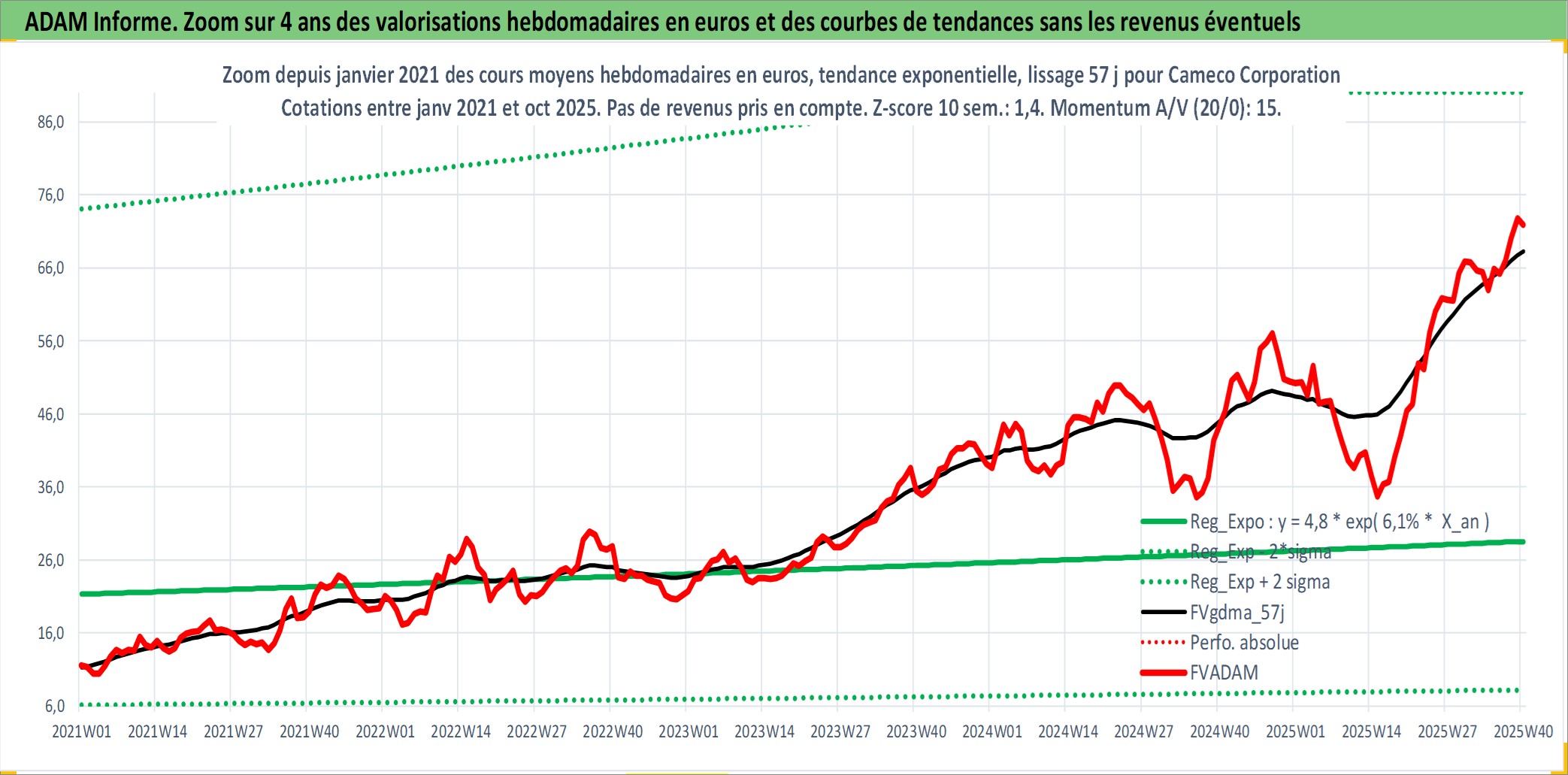 Site dédié aux investisseursPage dédiée sur site financeAnalyse des valorisations hebdomadaires de l'action Cameco Corporation. Cet actif est cote en CAD. Les valorisations sont en contrevaleur EURO et couvrent les semaines 1997W01 a 2025W40. Les revenus de cet actif financier sont pris en compte depuis la semaine 1997W13. La note ESG de cet actif n'est pas connue.