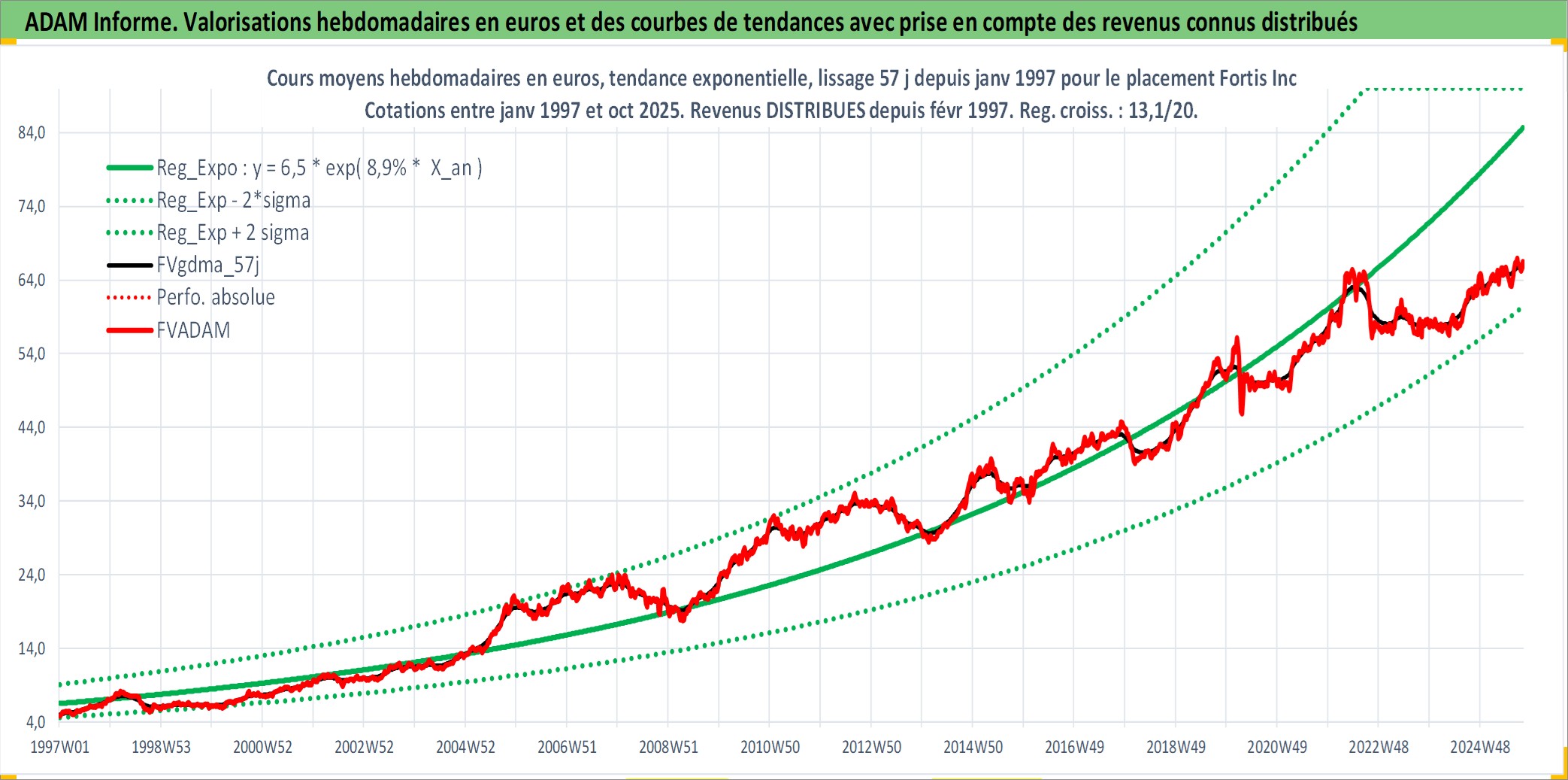 Site dédié aux investisseursPage dédiée sur site financeAnalyse des valorisations hebdomadaires de l'action Fortis Inc. Cet actif est cote en CAD. Les valorisations sont en contrevaleur EURO et couvrent les semaines 1997W01 a 2025W40. Les revenus de cet actif financier sont pris en compte depuis la semaine 1997W07. La note globale ESG de cet actif est estimee a 7.0 (apres rebasage entre 0 et 20).