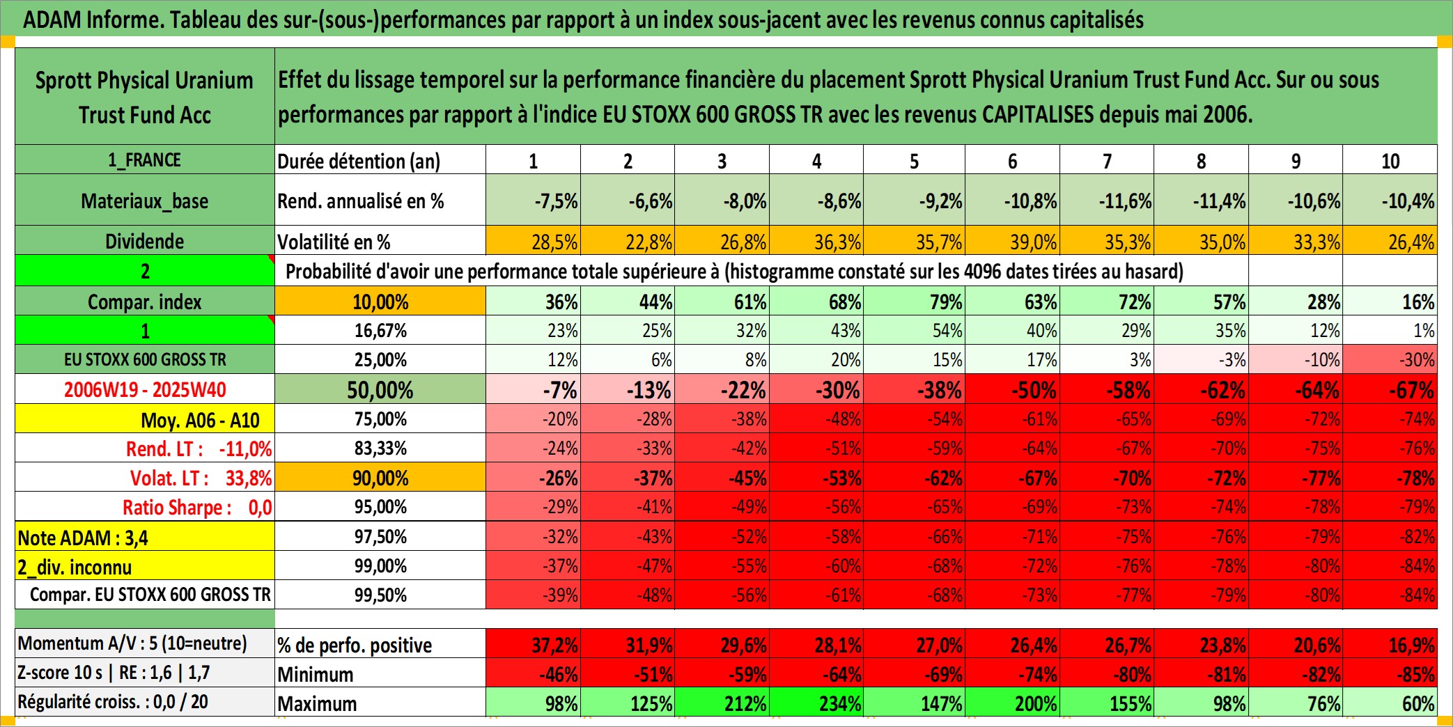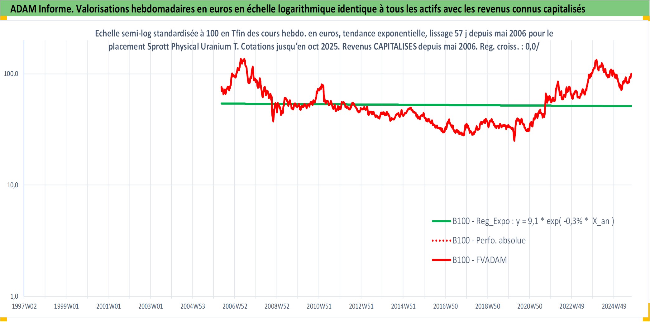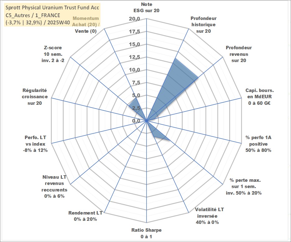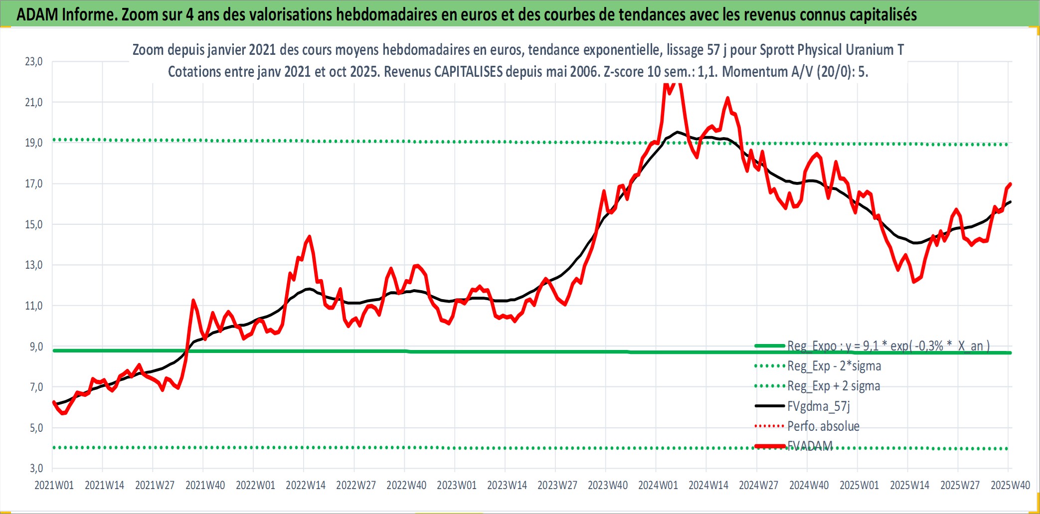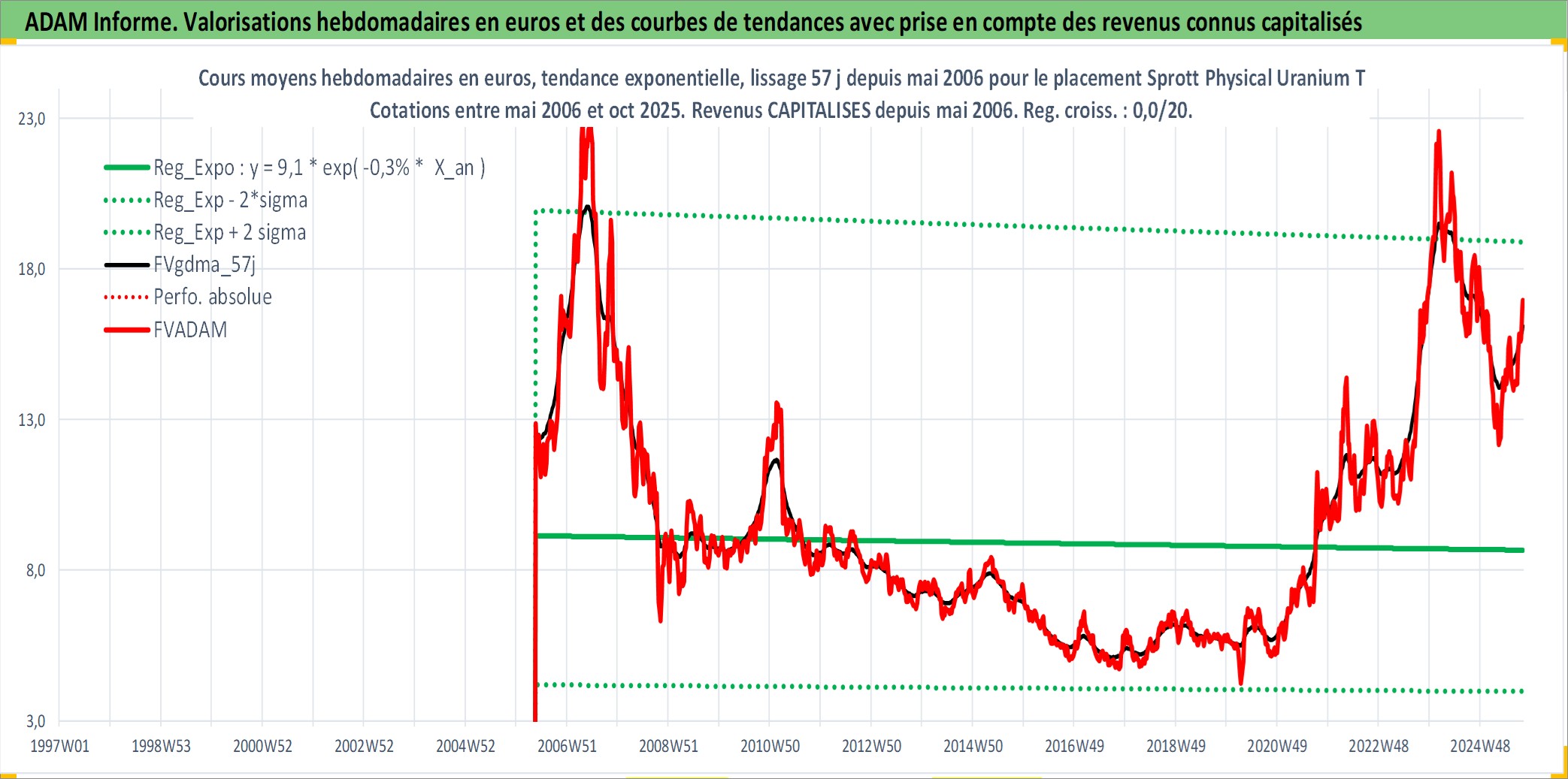 Site dédié aux investisseursPage dédiée sur site financeAnalyse des valorisations hebdomadaires du fonds Sprott Physical Uranium Trust Fund Acc. Cet actif est cote en CAD. Les valorisations sont en contrevaleur EURO et couvrent les semaines 2006W19 a 2025W40. Les revenus de cet actif financier sont pris en compte depuis la semaine 2006W19. La note ESG de cet actif n'est pas connue.