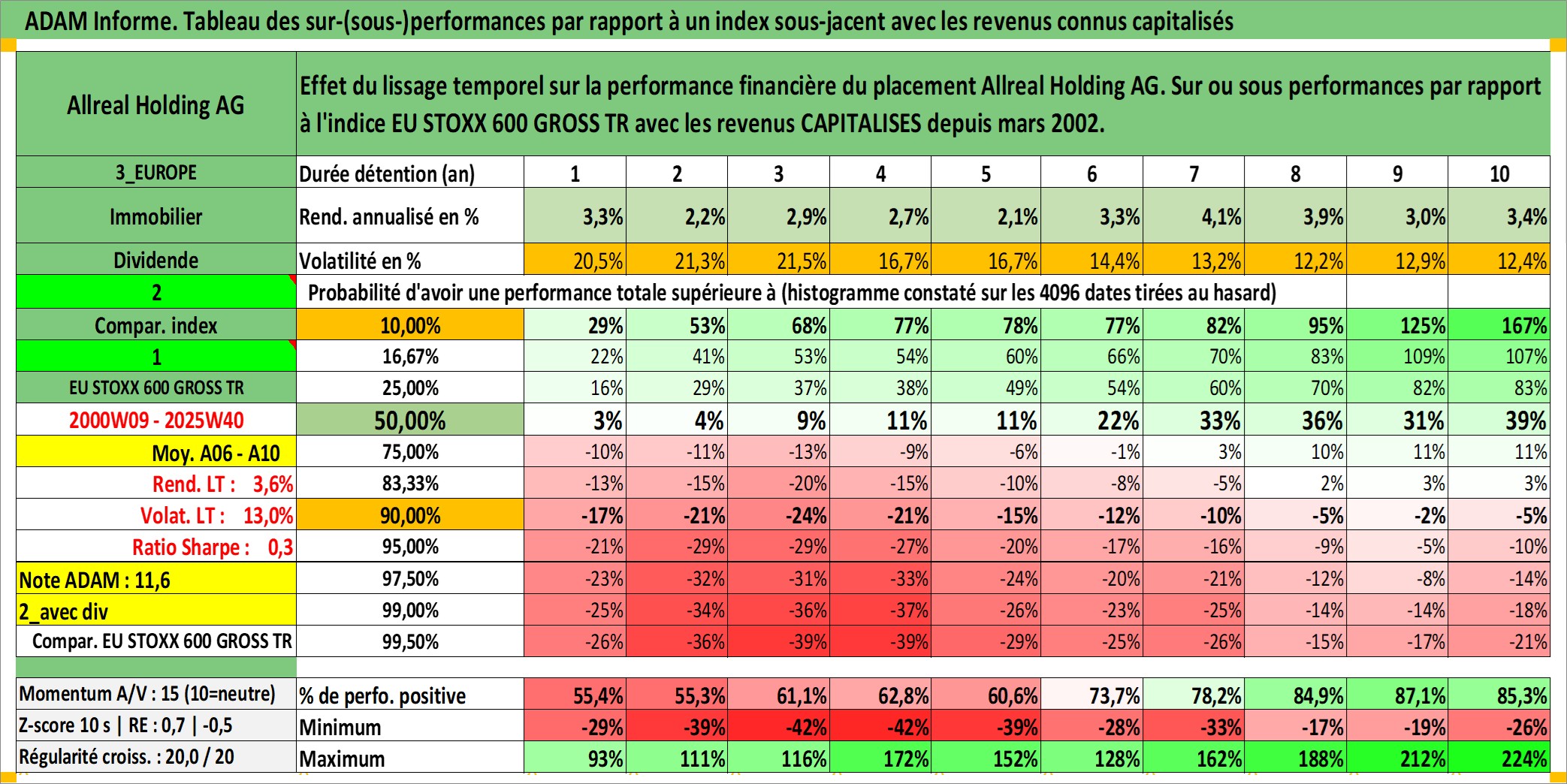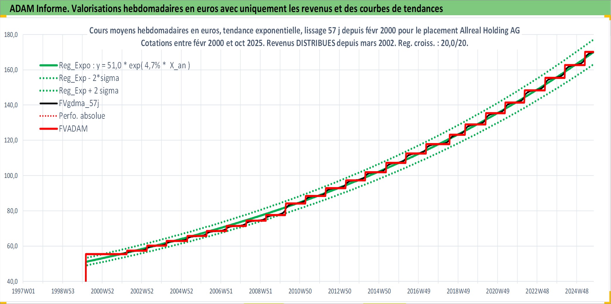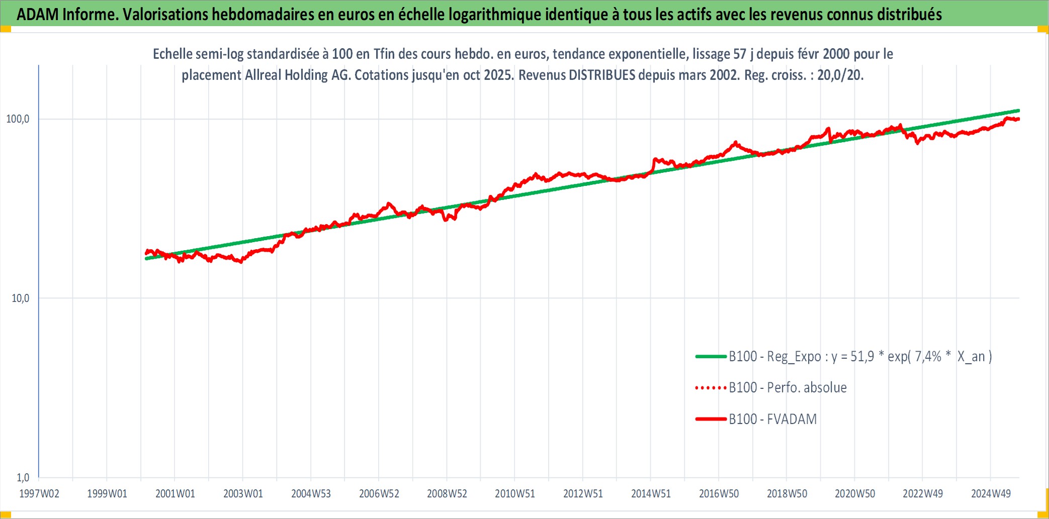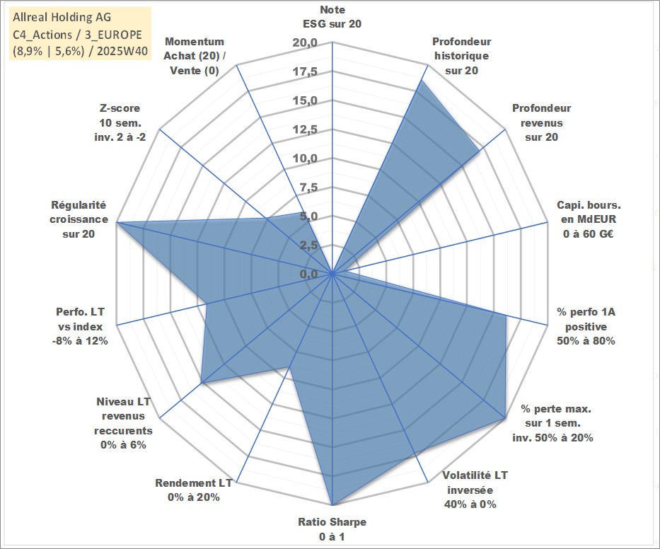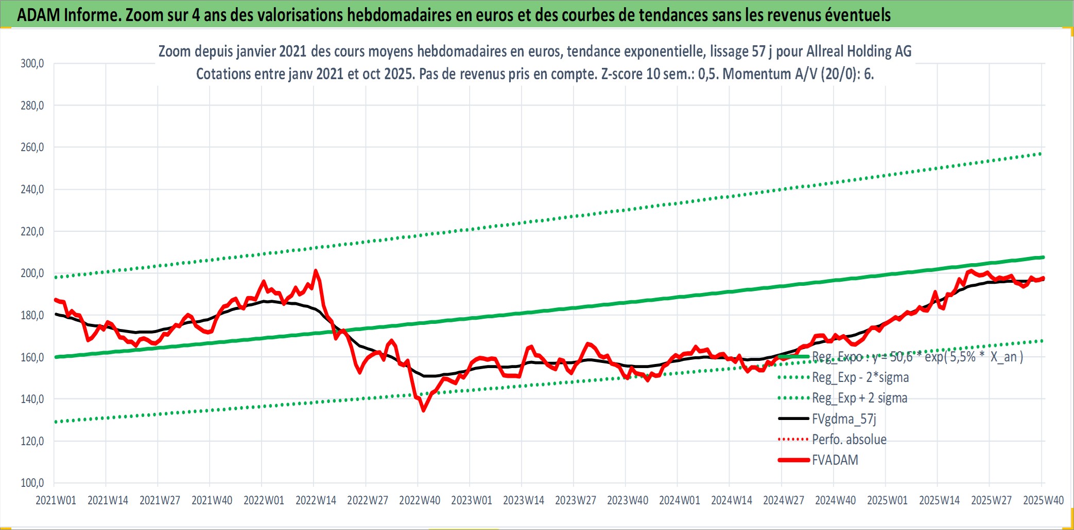 Site dédié aux investisseursPage dédiée sur site financeAnalyse des valorisations hebdomadaires de l'action Allreal Holding AG. Cet actif est cote en CHF. Les valorisations sont en contrevaleur EURO et couvrent les semaines 2000W09 a 2025W40. Les revenus de cet actif financier sont pris en compte depuis la semaine 2002W13. La note ESG de cet actif n'est pas connue.
