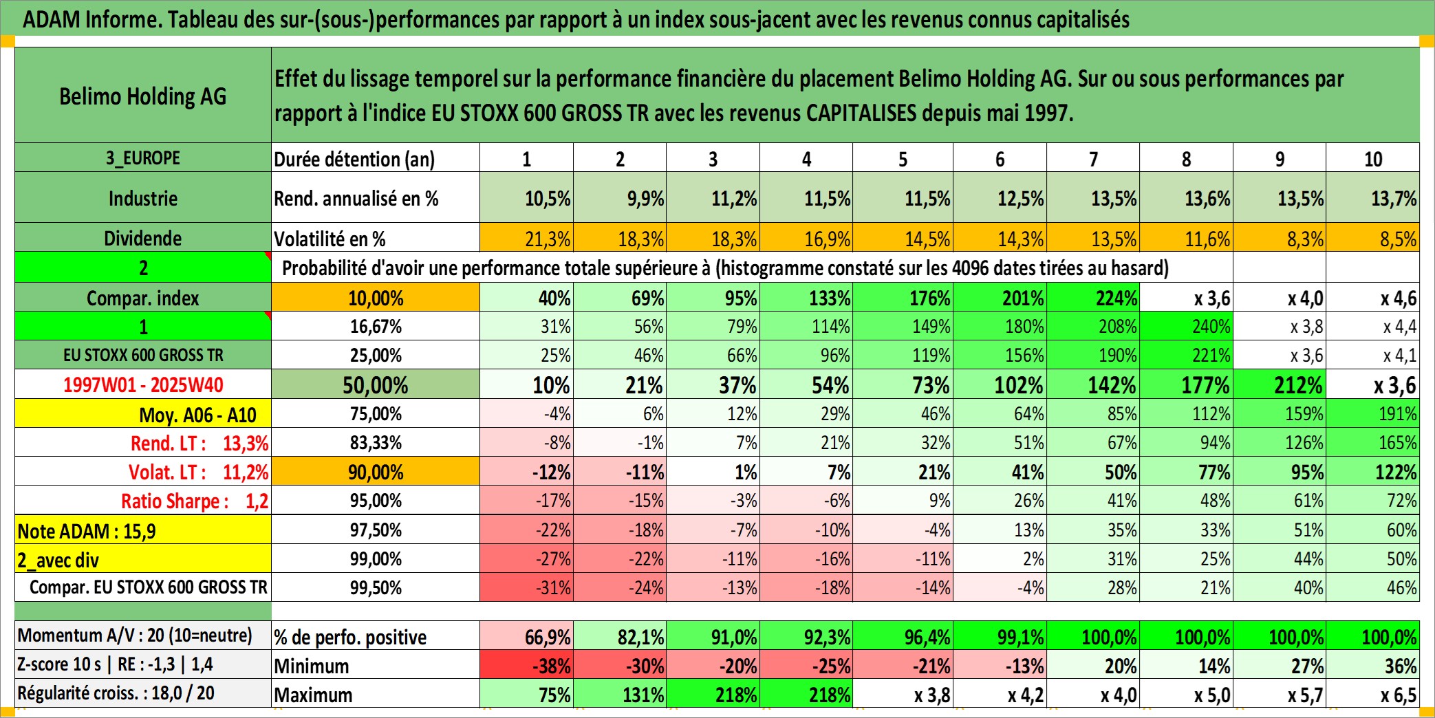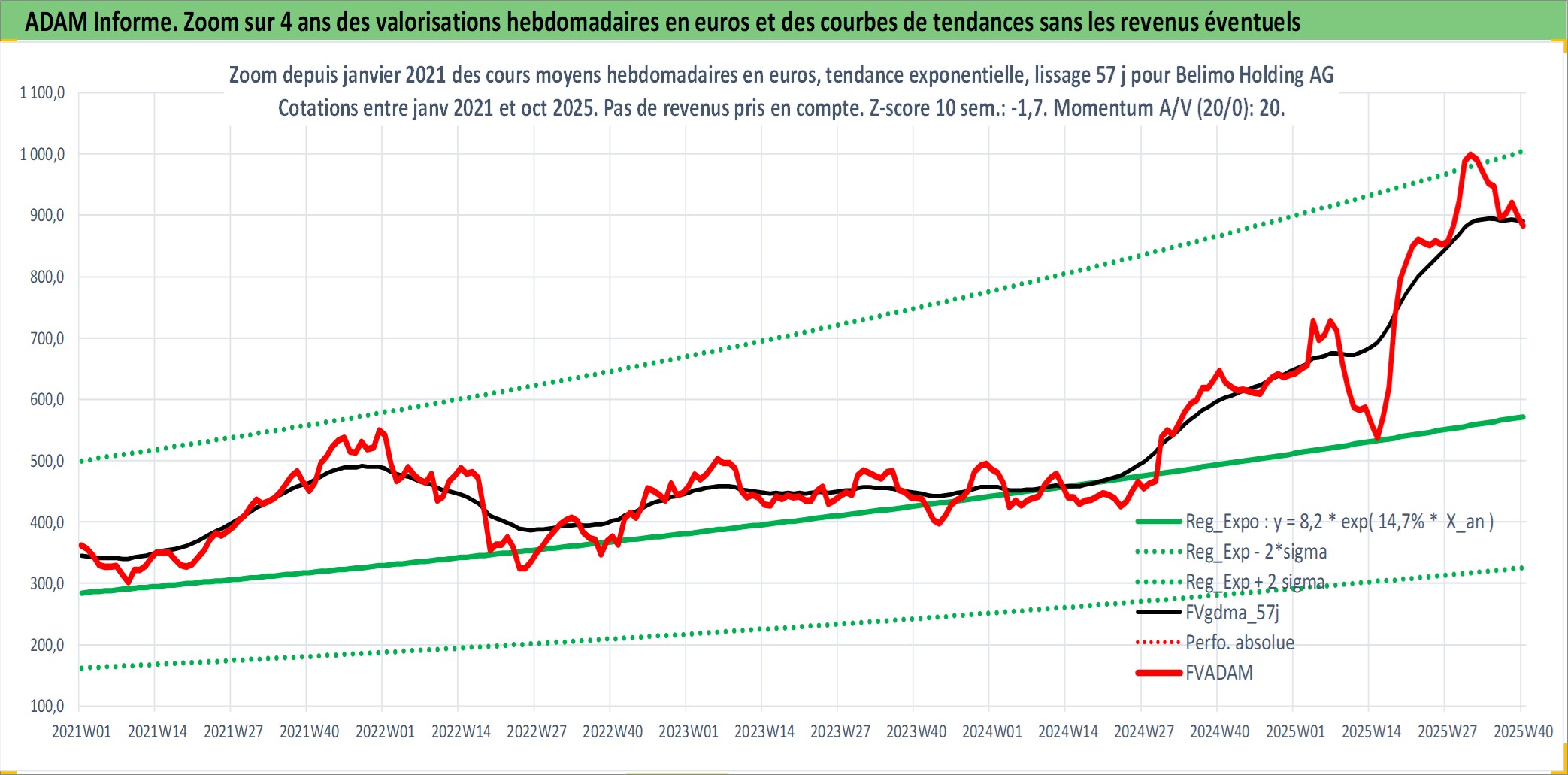 Site dédié aux investisseursPage dédiée sur site financeAnalyse des valorisations hebdomadaires de l'action Belimo Holding AG. Cet actif est cote en CHF. Les valorisations sont en contrevaleur EURO et couvrent les semaines 1997W01 a 2025W40. Les revenus de cet actif financier sont pris en compte depuis la semaine 1997W18. La note ESG de cet actif n'est pas connue.