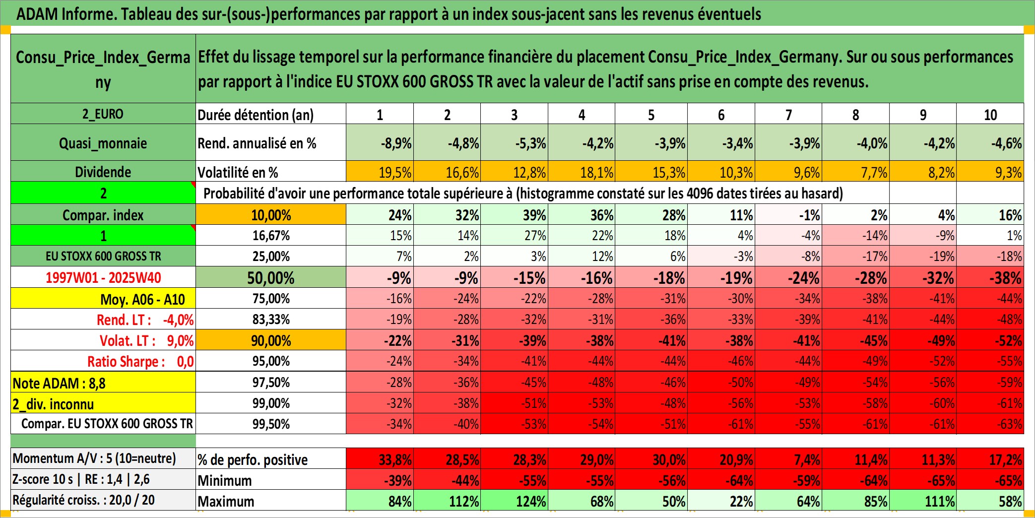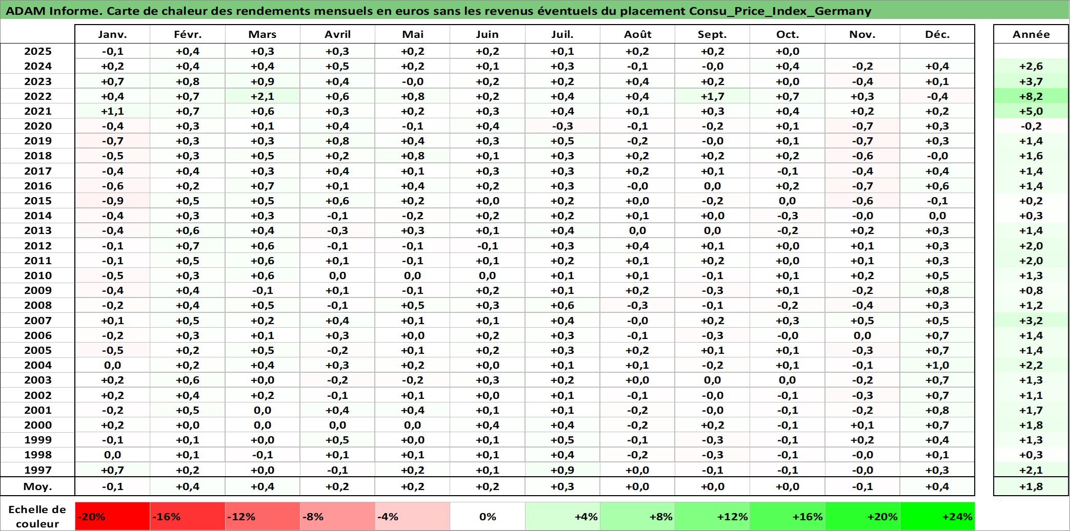Site dédié aux investisseursPage dédiée sur site financeAnalyse des valorisations hebdomadaires de l'action Consu_Price_Index_Germany. Cet actif est cote en EUR. Les valorisations couvrent les semaines 1997W01 a 2025W40. Les revenus de cet actif financier ne sont pas connus car non existants ou non disponibles sur le site Yahoo Finance. La note ESG de cet actif n'est pas connue.