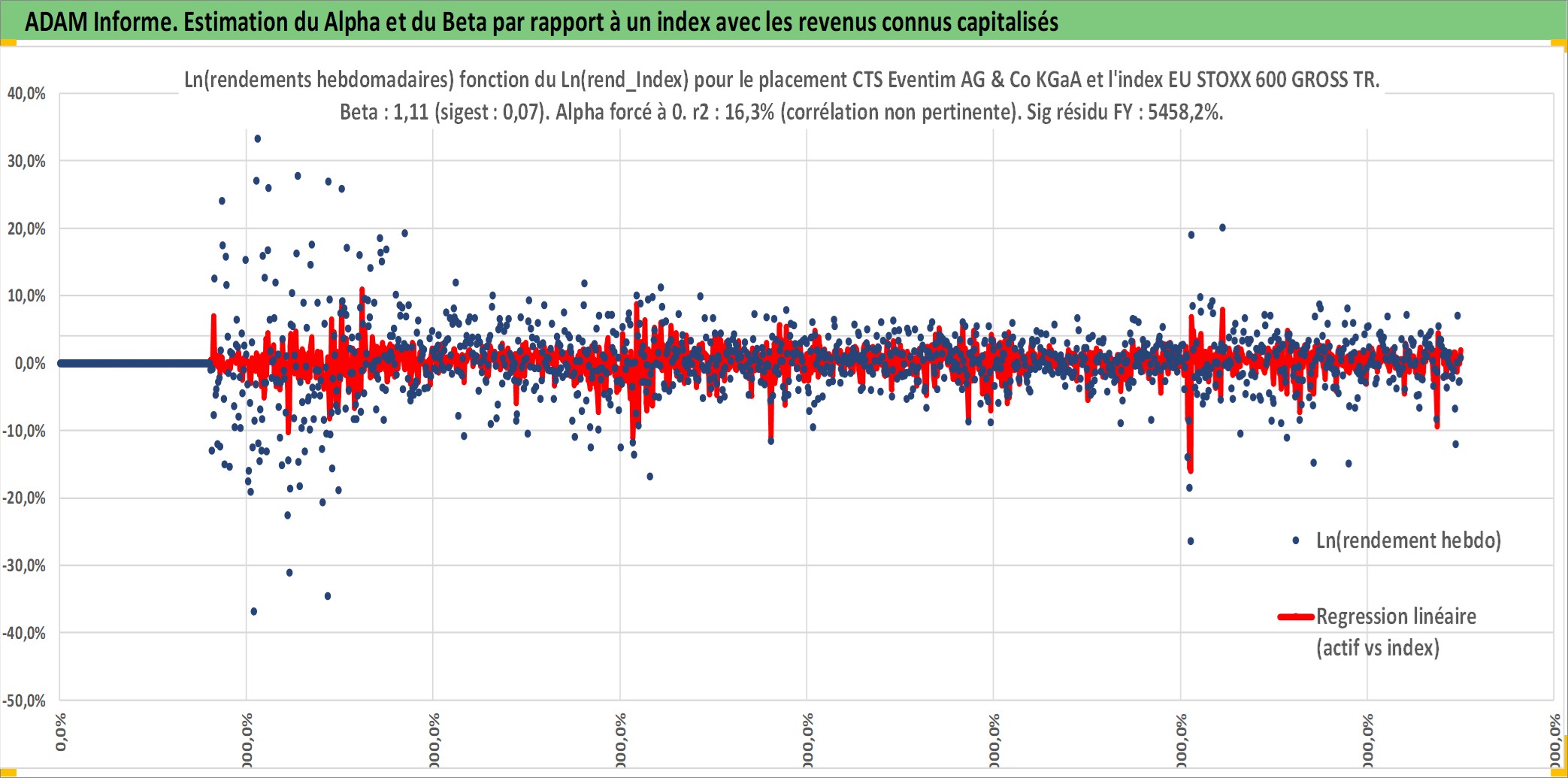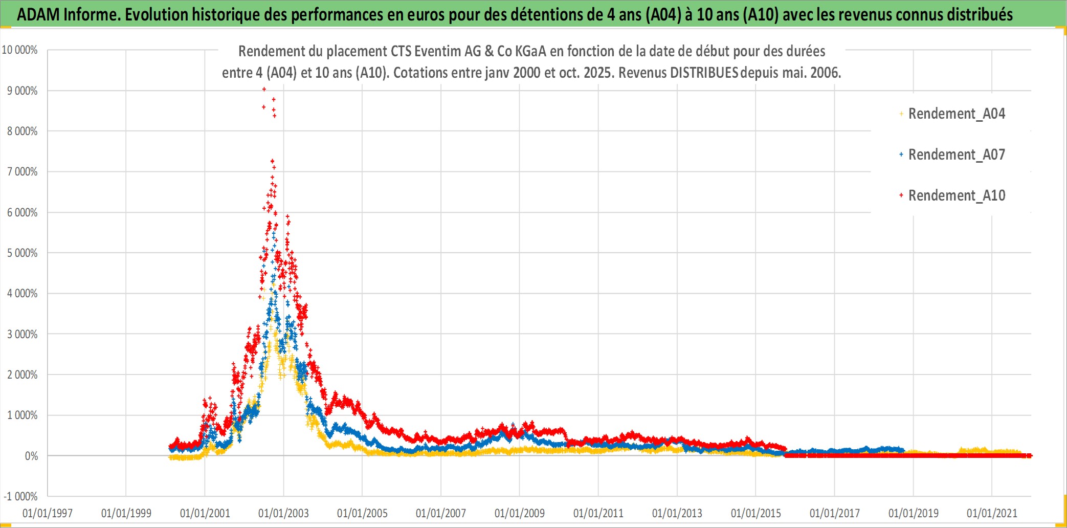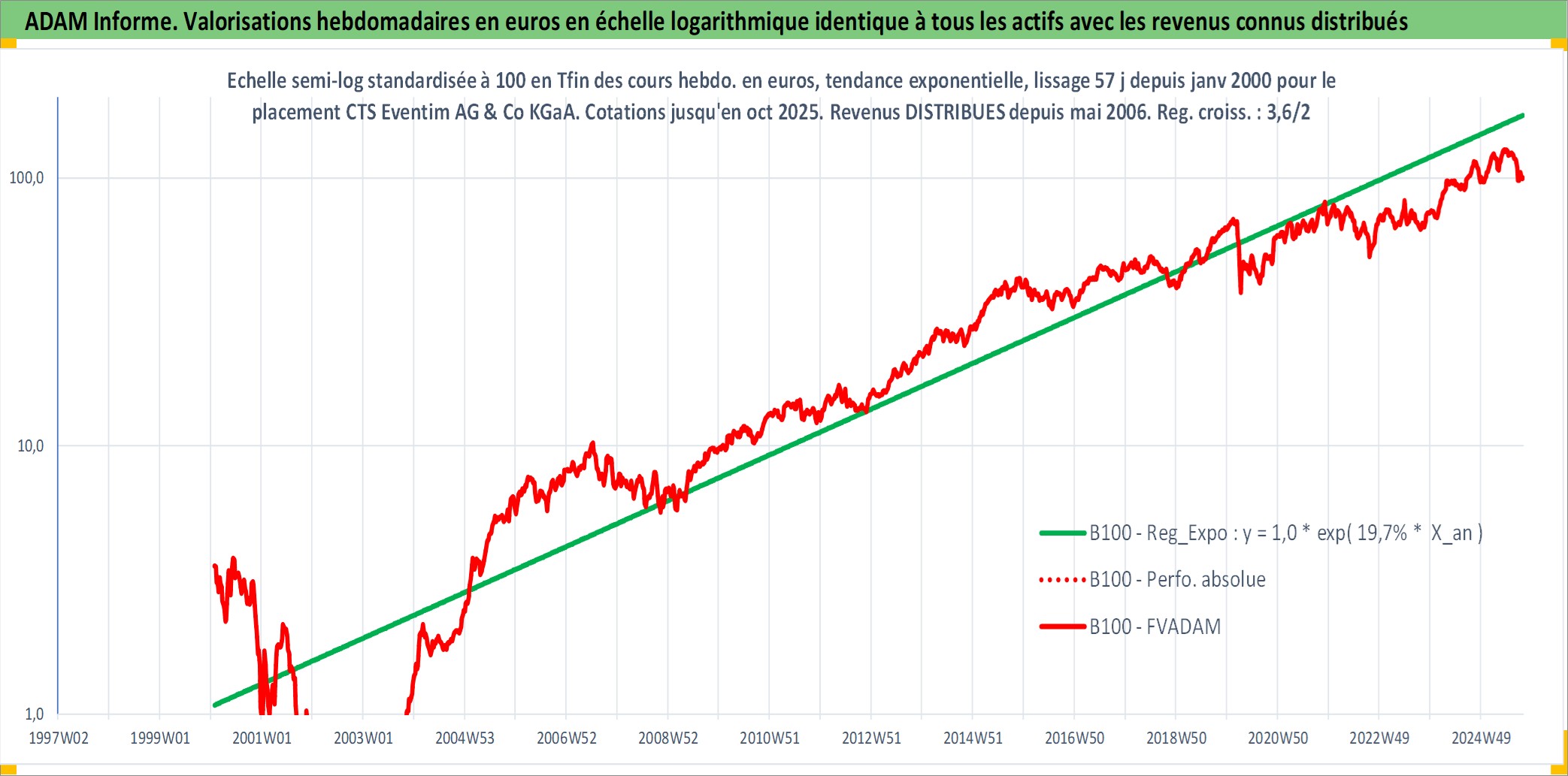 Site dédié aux investisseursPage dédiée sur site financeAnalyse des valorisations hebdomadaires de l'action CTS Eventim AG & Co KGaA. Cet actif est cote en EUR. Les valorisations couvrent les semaines 2000W05 a 2025W40. Les revenus de cet actif financier sont pris en compte depuis la semaine 2006W19. La note ESG de cet actif n'est pas connue.