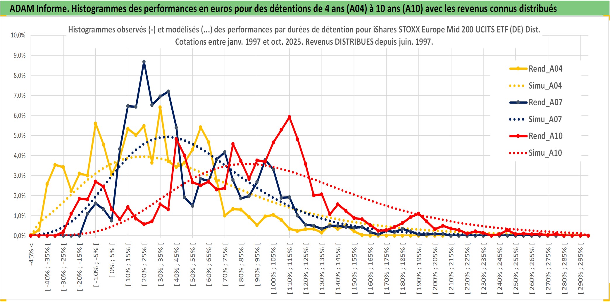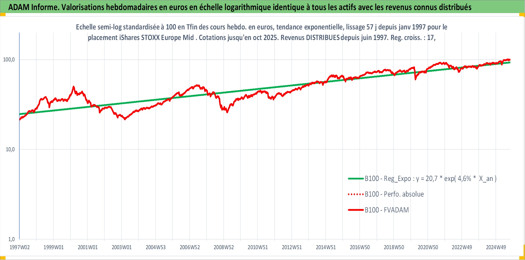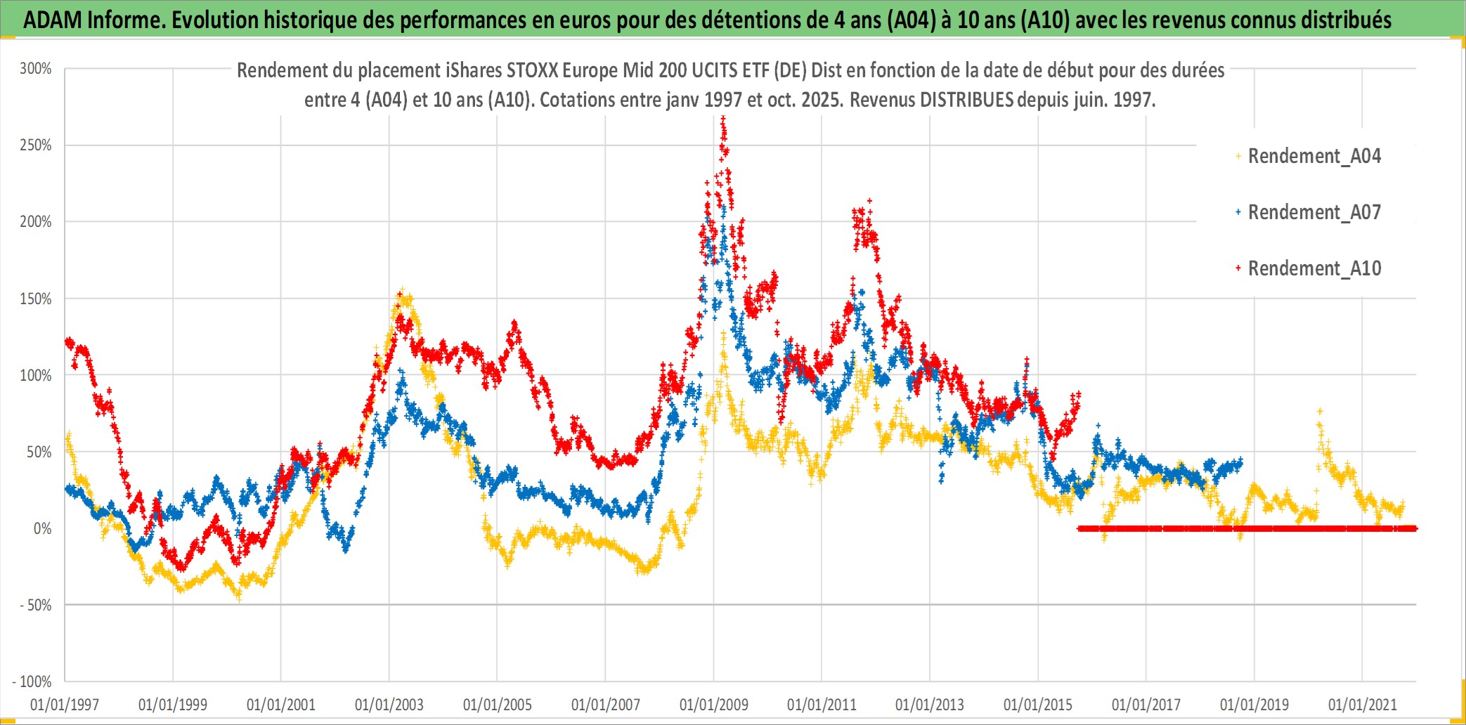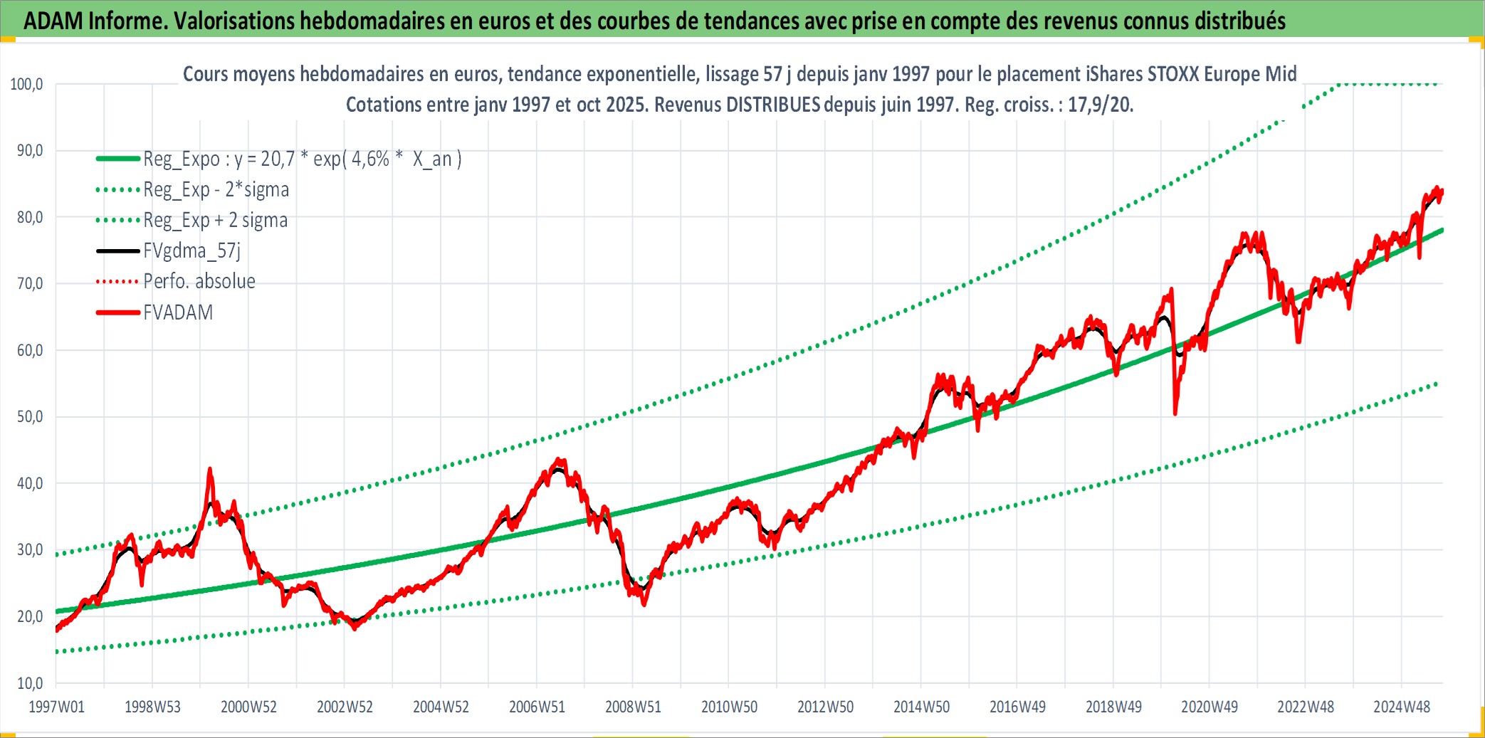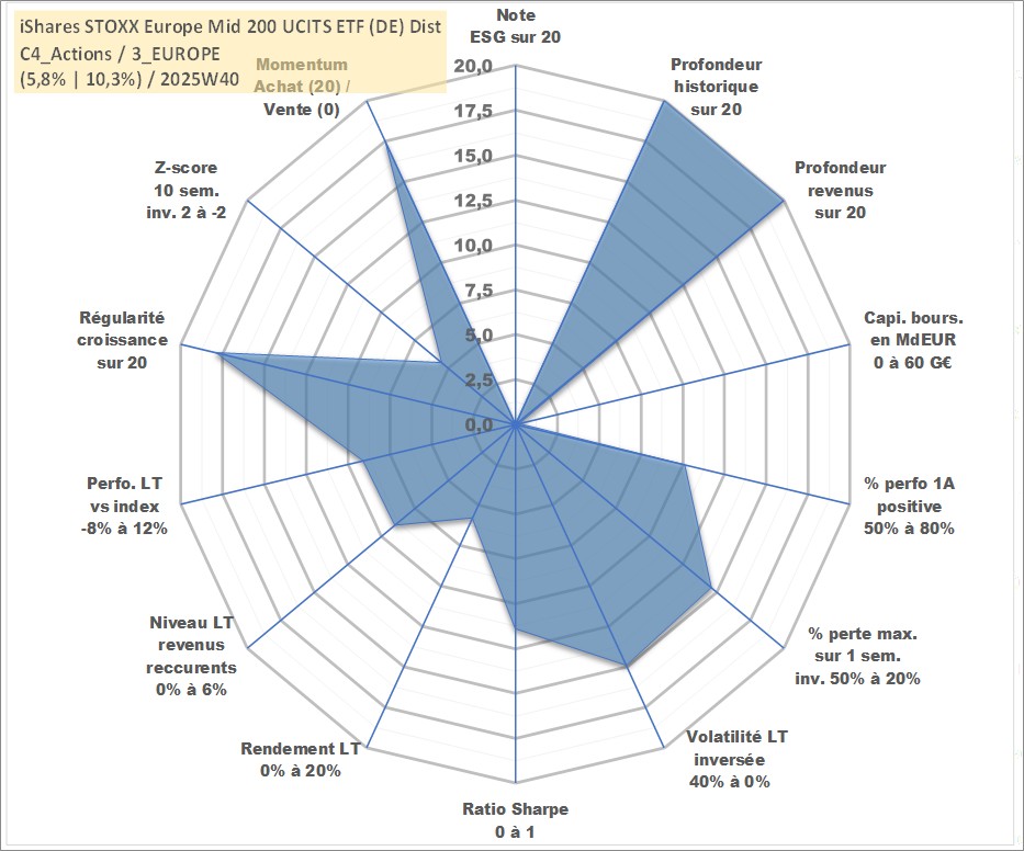 Site dédié aux investisseursPage dédiée sur site financeAnalyse des valorisations hebdomadaires du fonds iShares STOXX Europe Mid 200 UCITS ETF (DE) Dist. Cet actif est cote en EUR. Les valorisations couvrent les semaines 1997W01 a 2025W40. Les revenus de cet actif financier sont pris en compte depuis la semaine 1997W25. La note ESG de cet actif n'est pas connue.