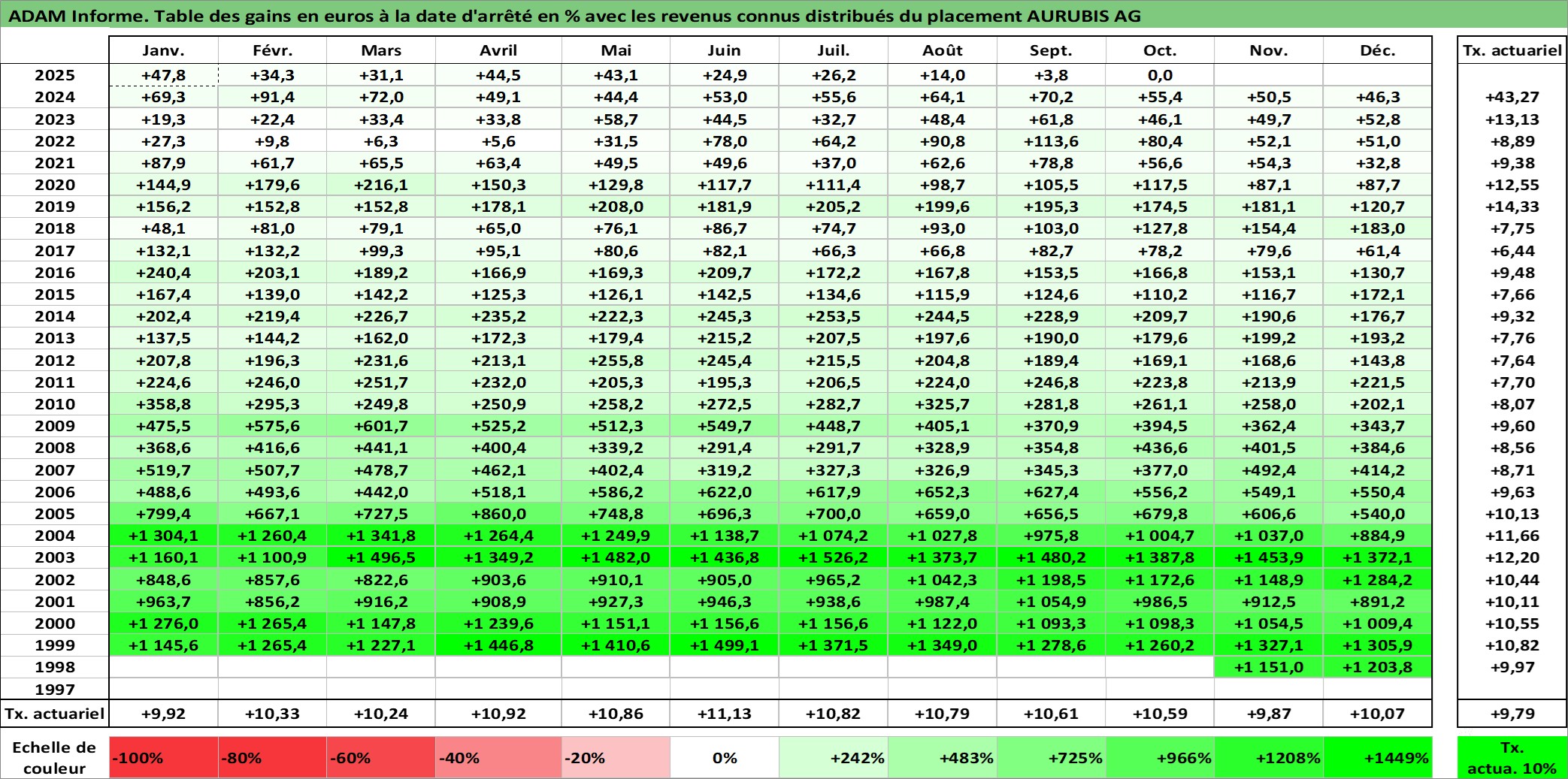 Dernière perfo 10 ans en %