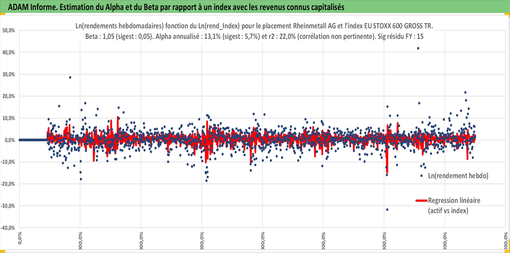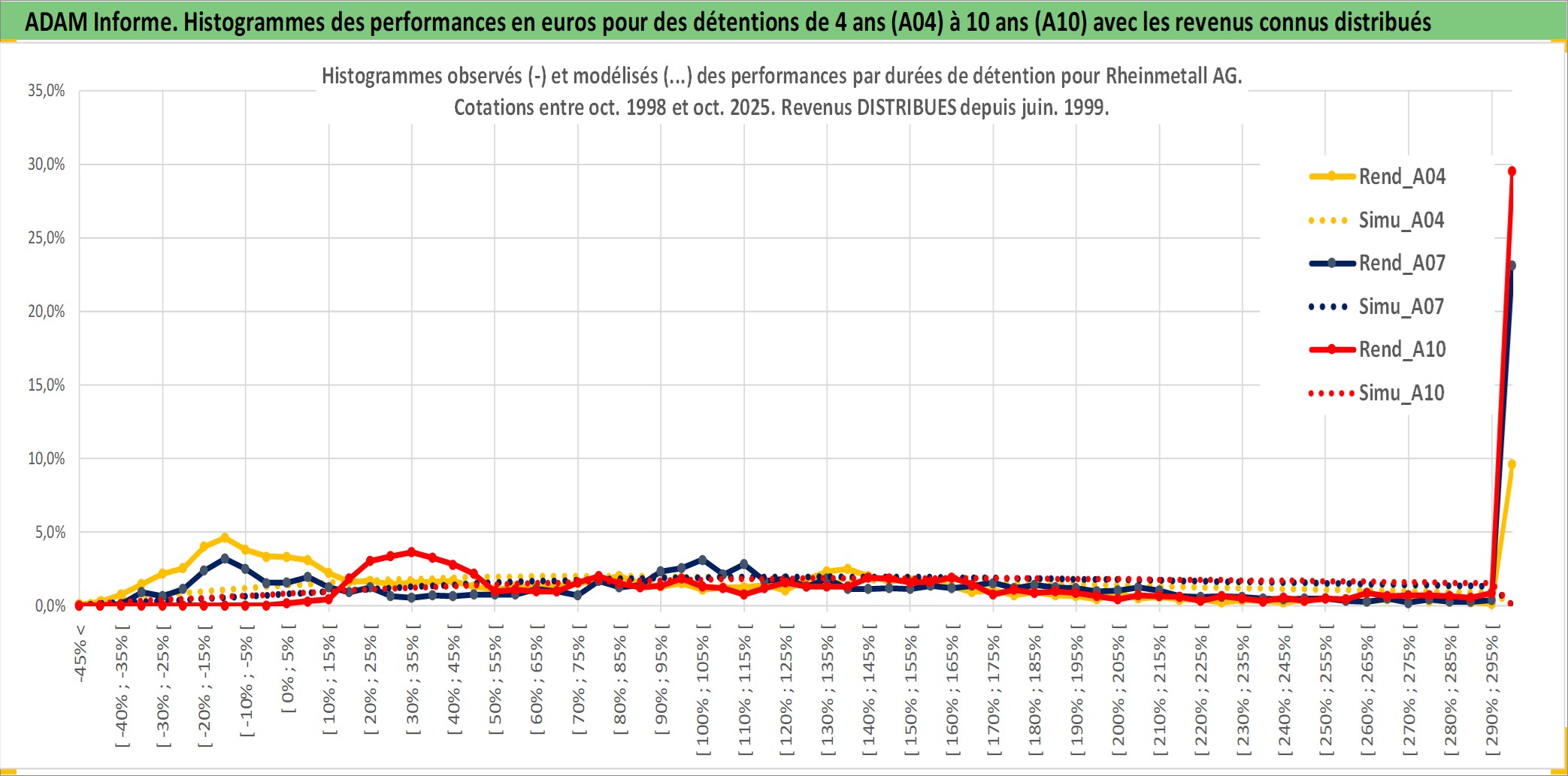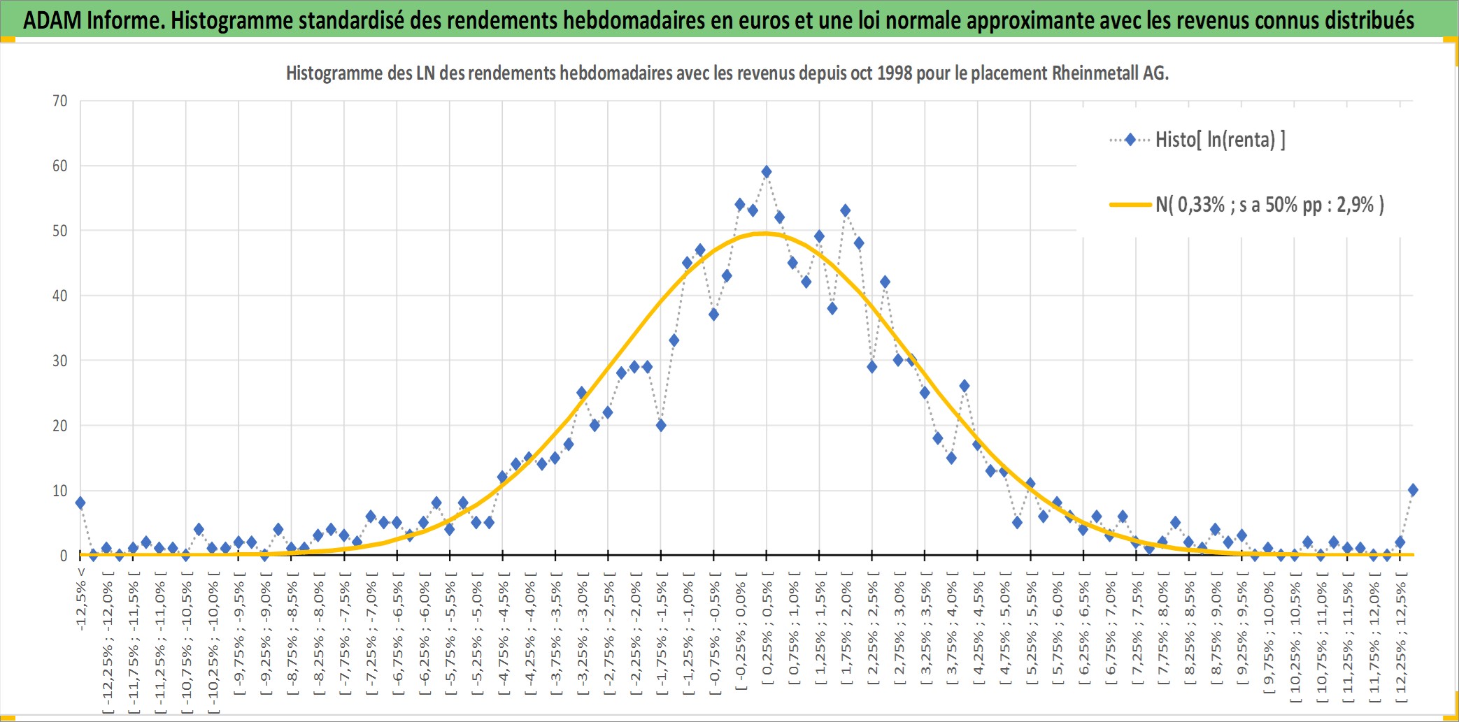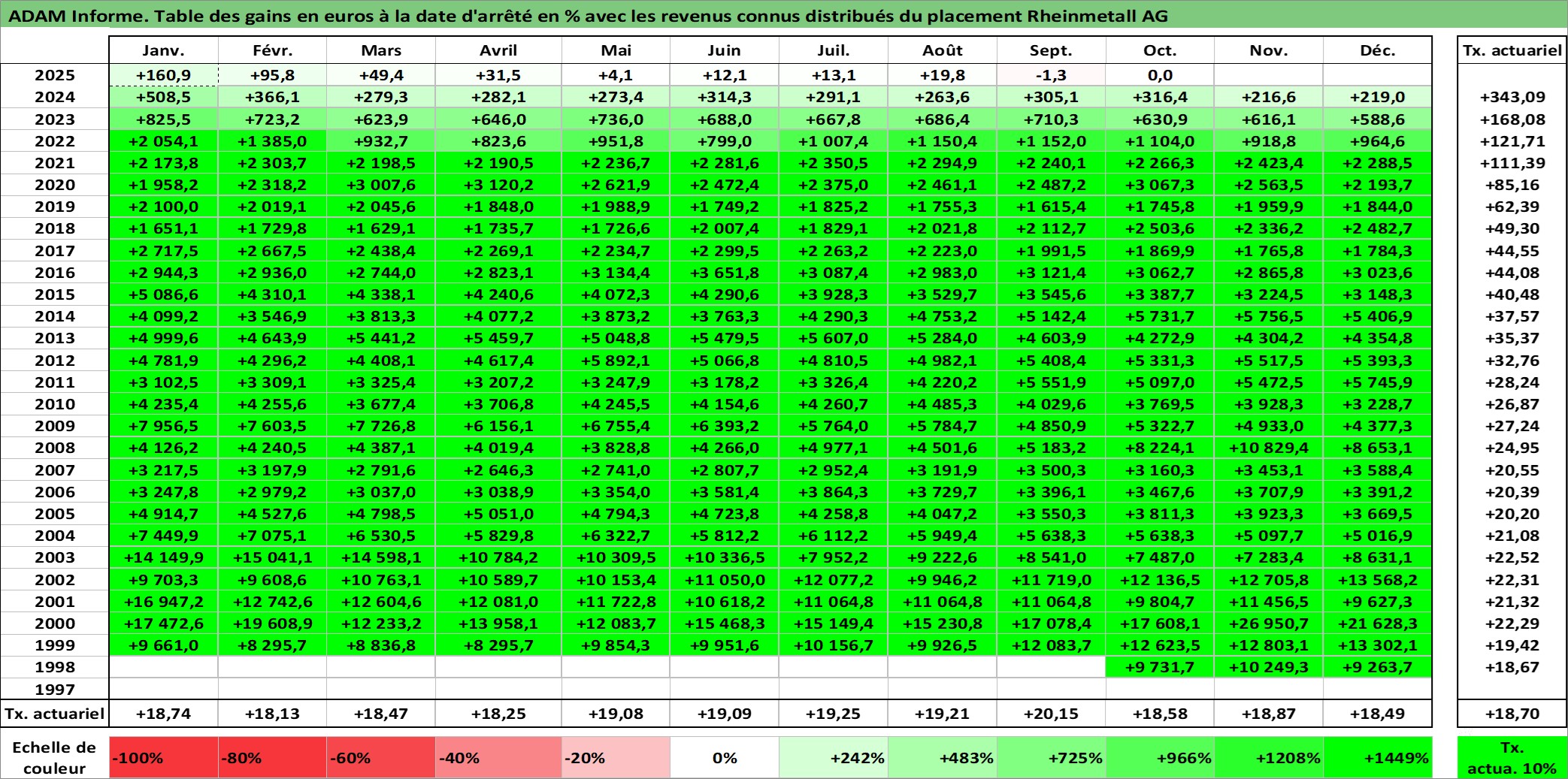 Site dédié aux investisseursPage dédiée sur site financeAnalyse des valorisations hebdomadaires de l'action Rheinmetall AG. Cet actif est cote en EUR. Les valorisations couvrent les semaines 1998W41 a 2025W40. Les revenus de cet actif financier sont pris en compte depuis la semaine 1999W25. La note ESG de cet actif n'est pas connue.