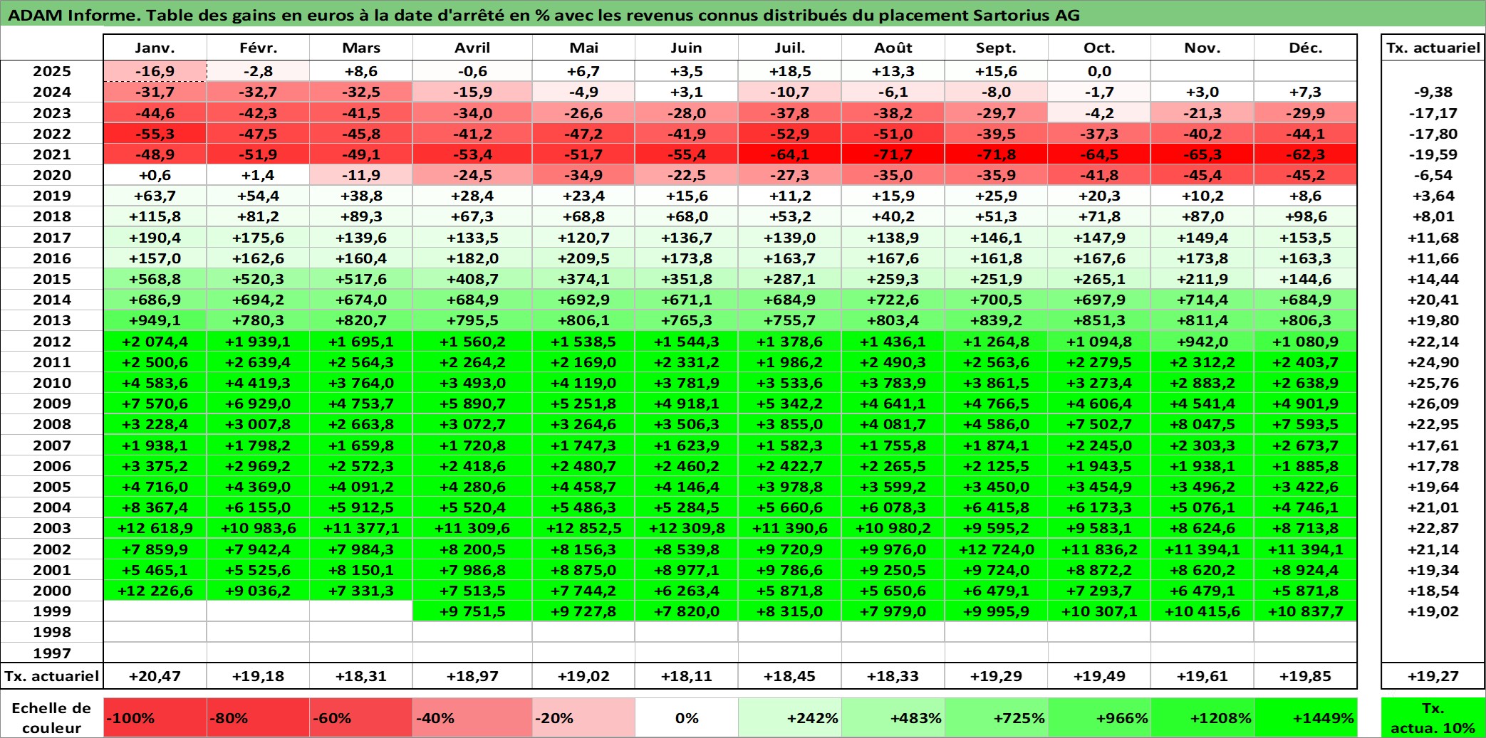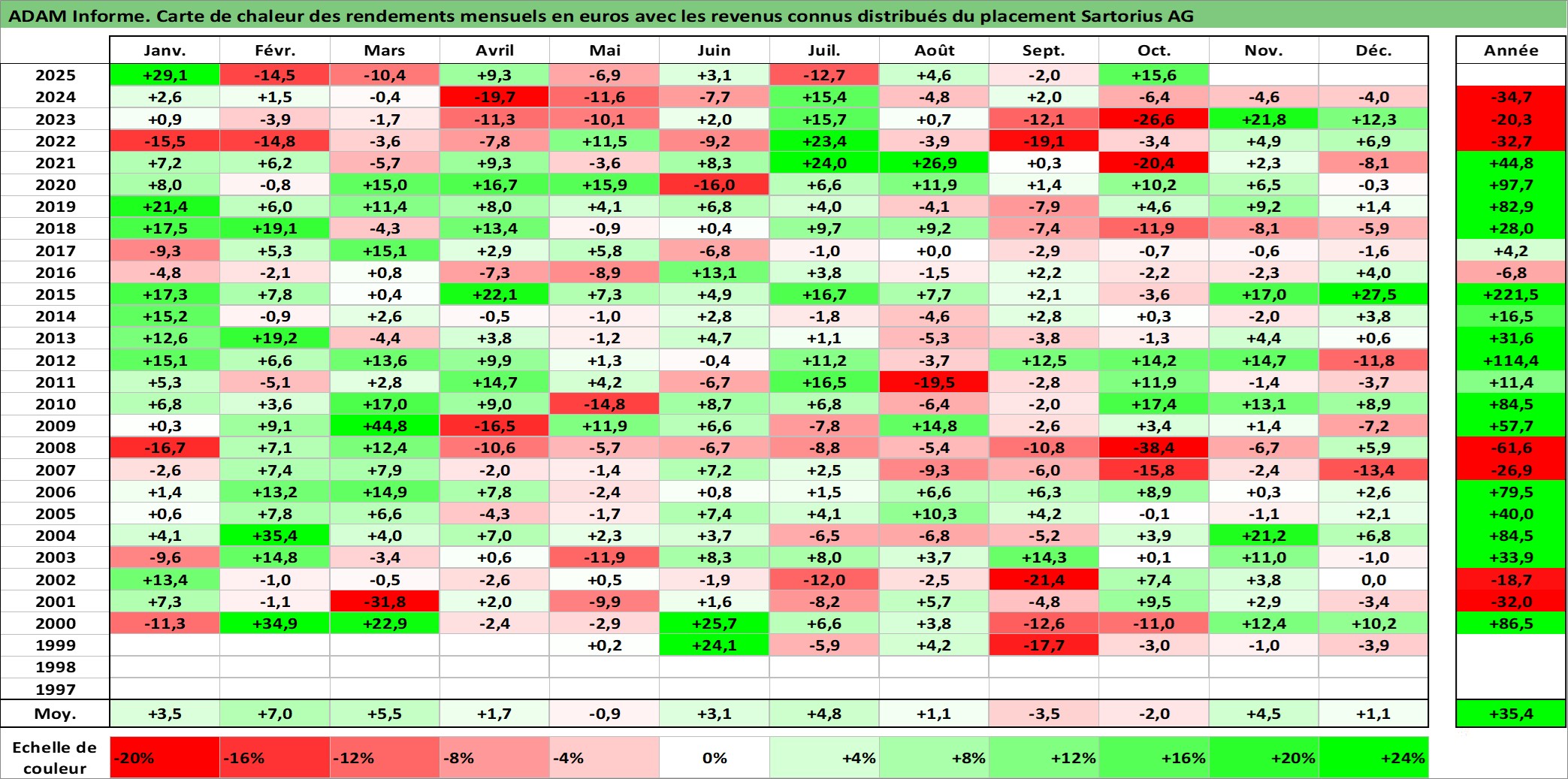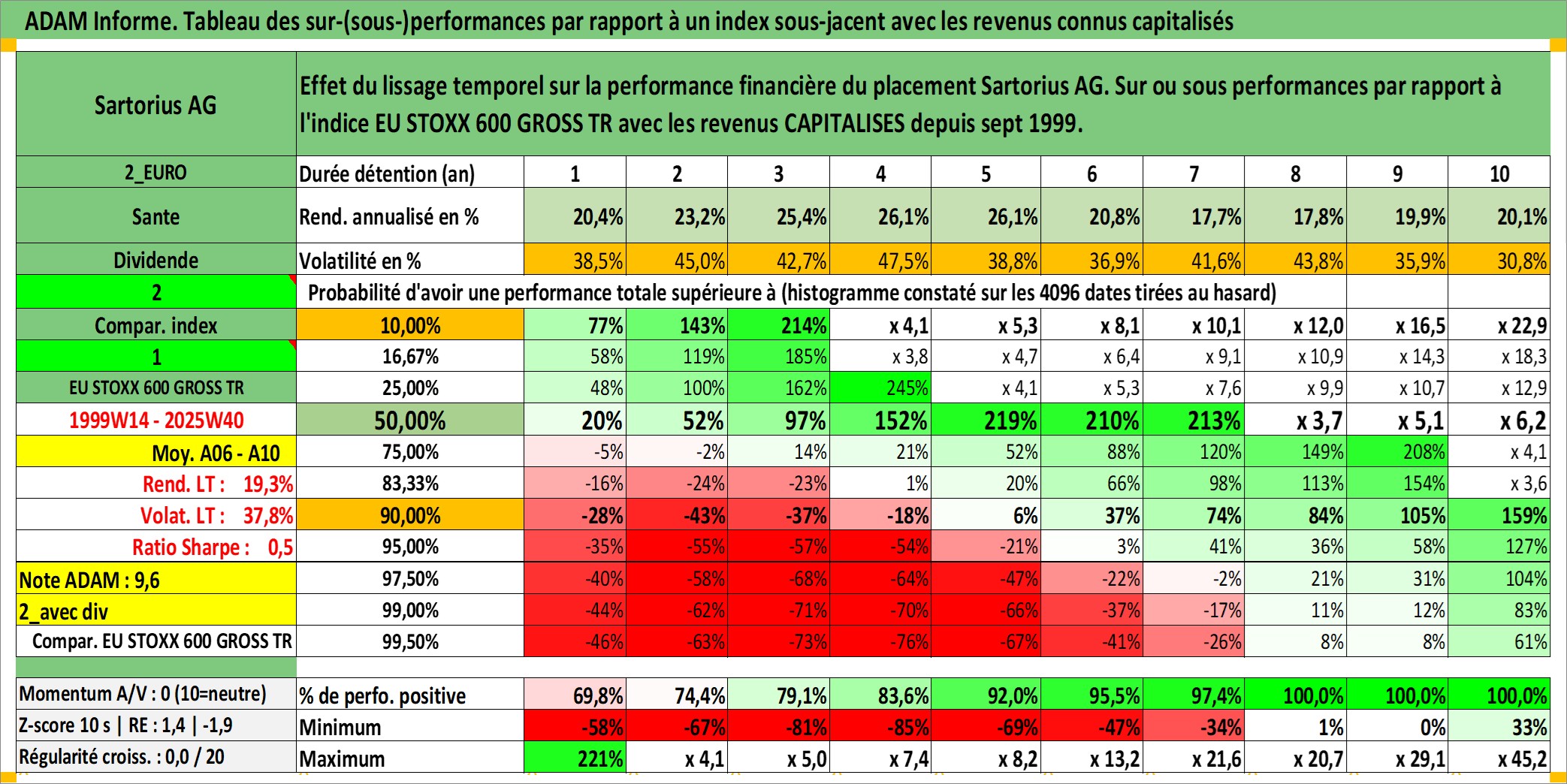 Site dédié aux investisseursPage dédiée sur site financeAnalyse des valorisations hebdomadaires de l'action Sartorius AG. Cet actif est cote en EUR. Les valorisations couvrent les semaines 1999W14 a 2025W40. Les revenus de cet actif financier sont pris en compte depuis la semaine 1999W35. La note ESG de cet actif n'est pas connue.