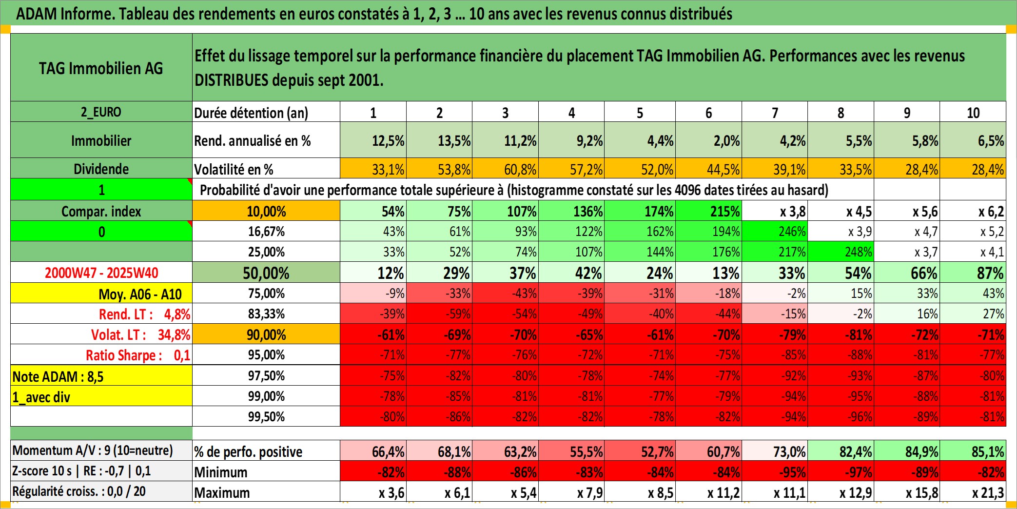Site dédié aux investisseursPage dédiée sur site financeAnalyse des valorisations hebdomadaires de l'action TAG Immobilien AG. Cet actif est cote en EUR. Les valorisations couvrent les semaines 2000W47 a 2025W40. Les revenus de cet actif financier sont pris en compte depuis la semaine 2001W36. La note ESG de cet actif n'est pas connue.