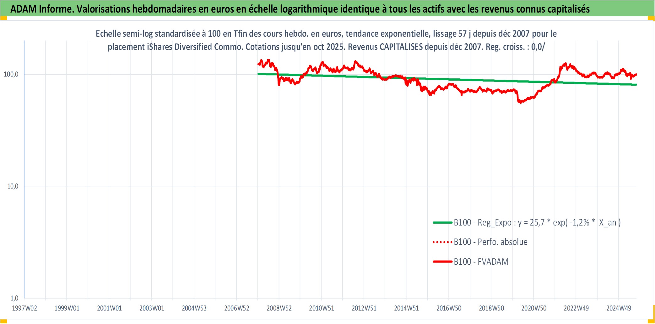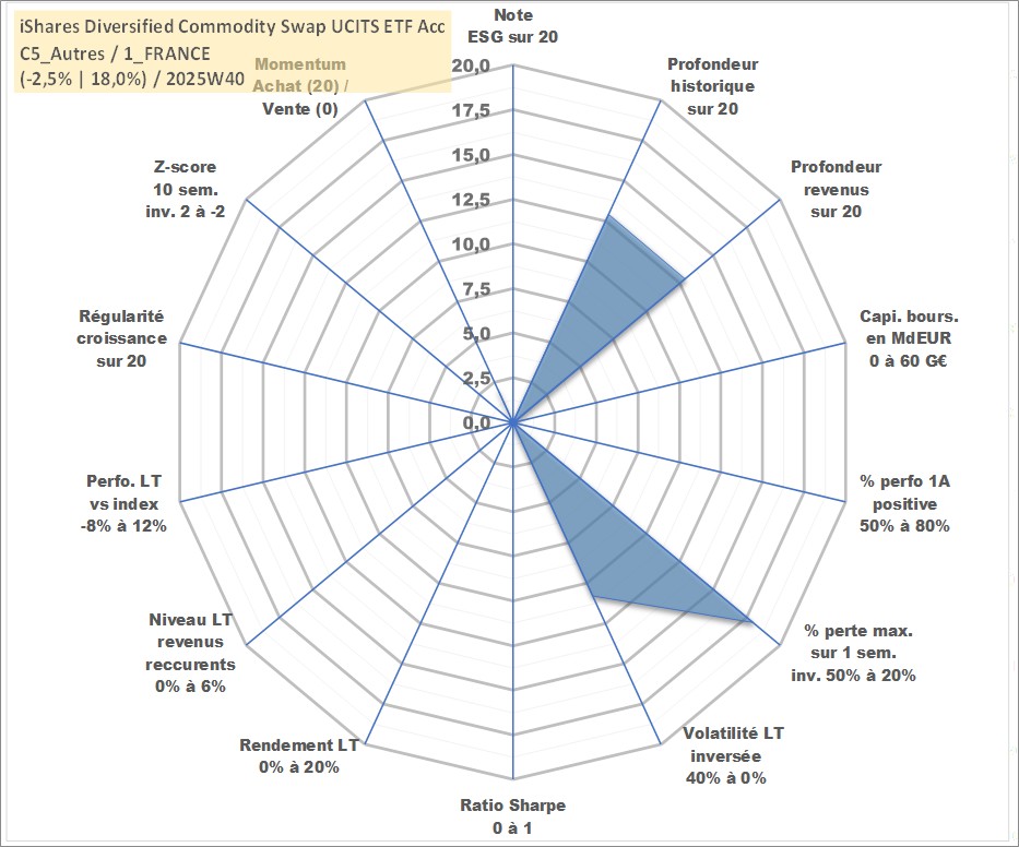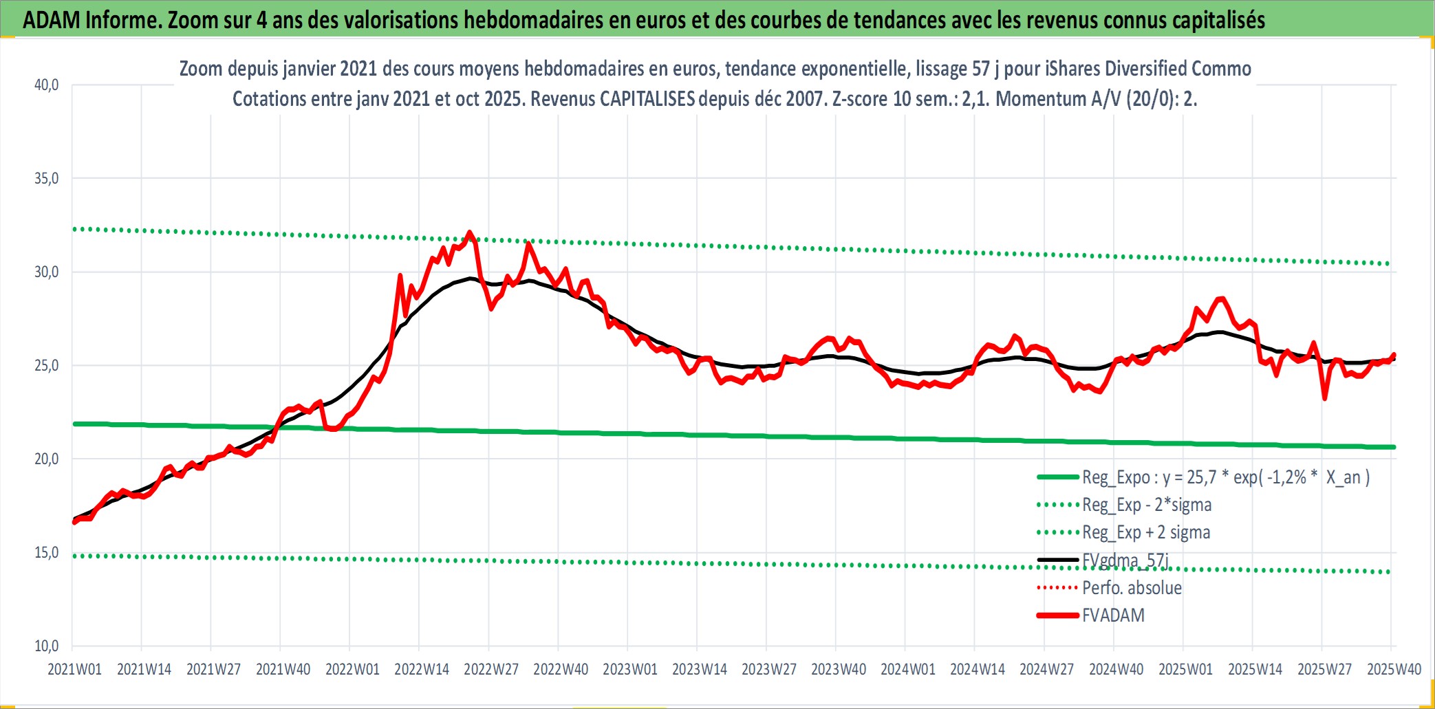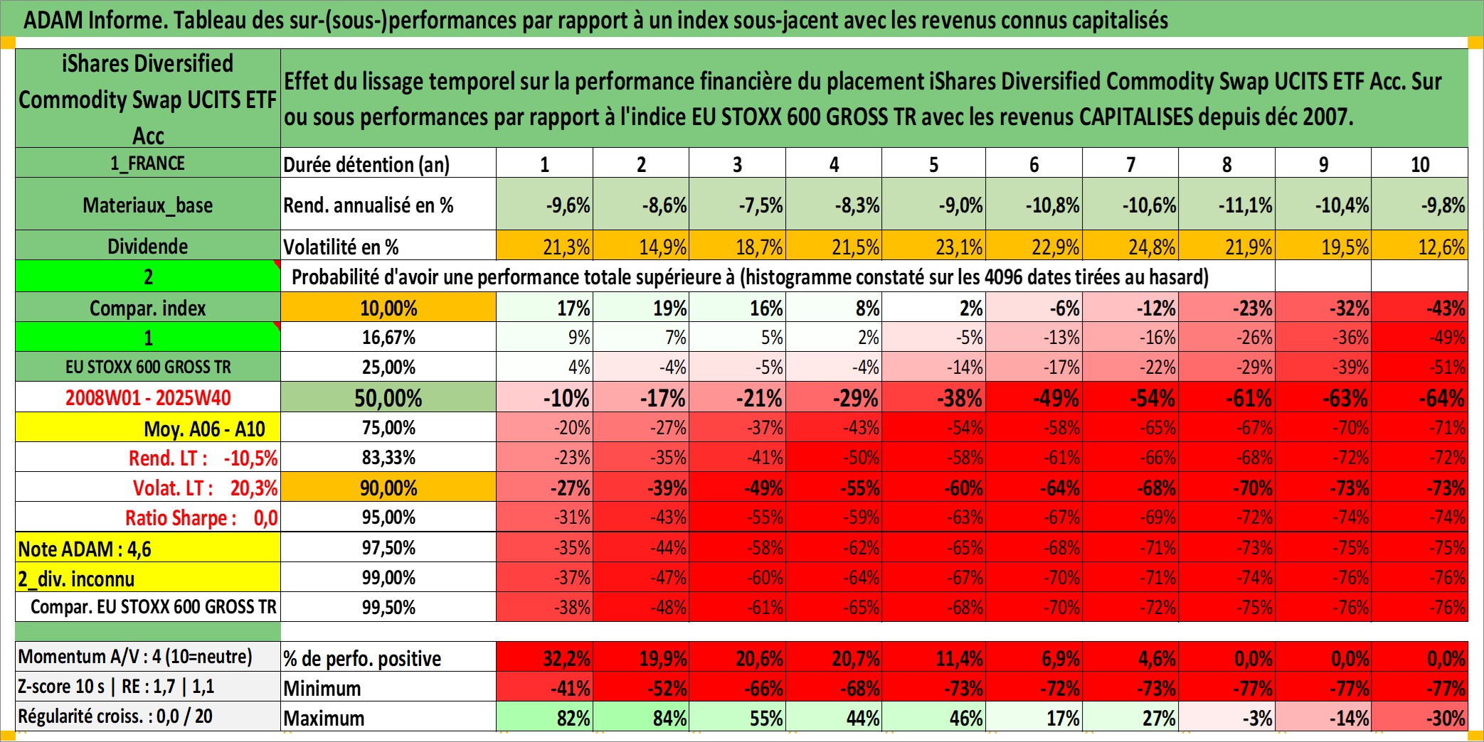 Site dédié aux investisseursPage dédiée sur site financeAnalyse des valorisations hebdomadaires du fonds iShares Diversified Commodity Swap UCITS ETF Acc. Cet actif est cote en USD. Les valorisations sont en contrevaleur EURO et couvrent les semaines 2008W01 a 2025W40. Les revenus de cet actif financier sont pris en compte depuis la semaine 2008W01. La note ESG de cet actif n'est pas connue.