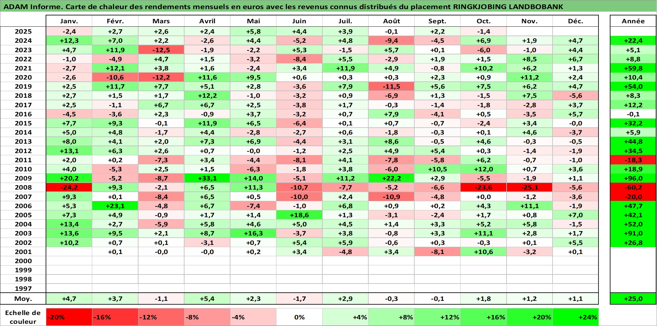 Site dédié aux investisseursPage dédiée sur site financeAnalyse des valorisations hebdomadaires de l'action RINGKJOBING LANDBOBANK. Cet actif est cote en DKK. Les valorisations sont en contrevaleur EURO et couvrent les semaines 2001W02 a 2025W40. Les revenus de cet actif financier sont pris en compte depuis la semaine 2004W09. La note ESG de cet actif n'est pas connue.