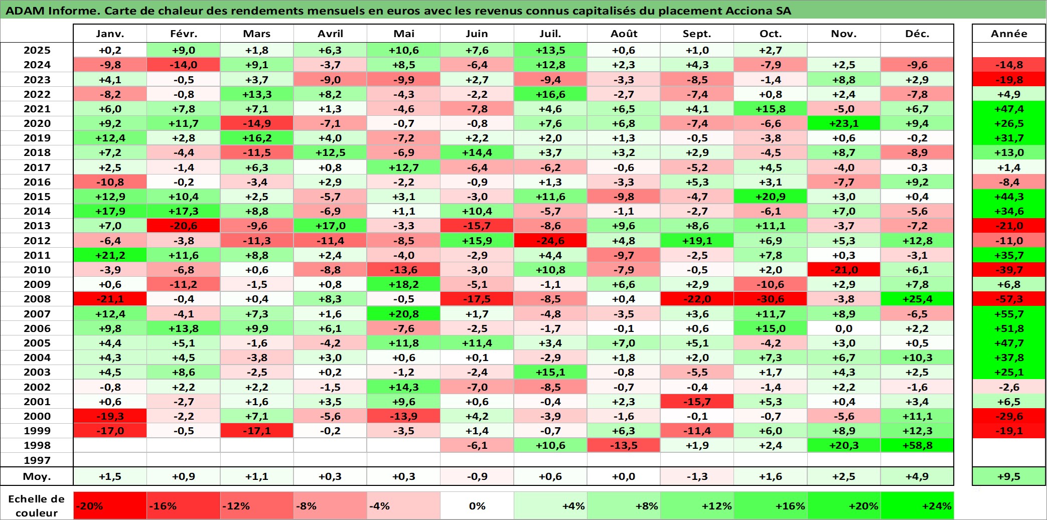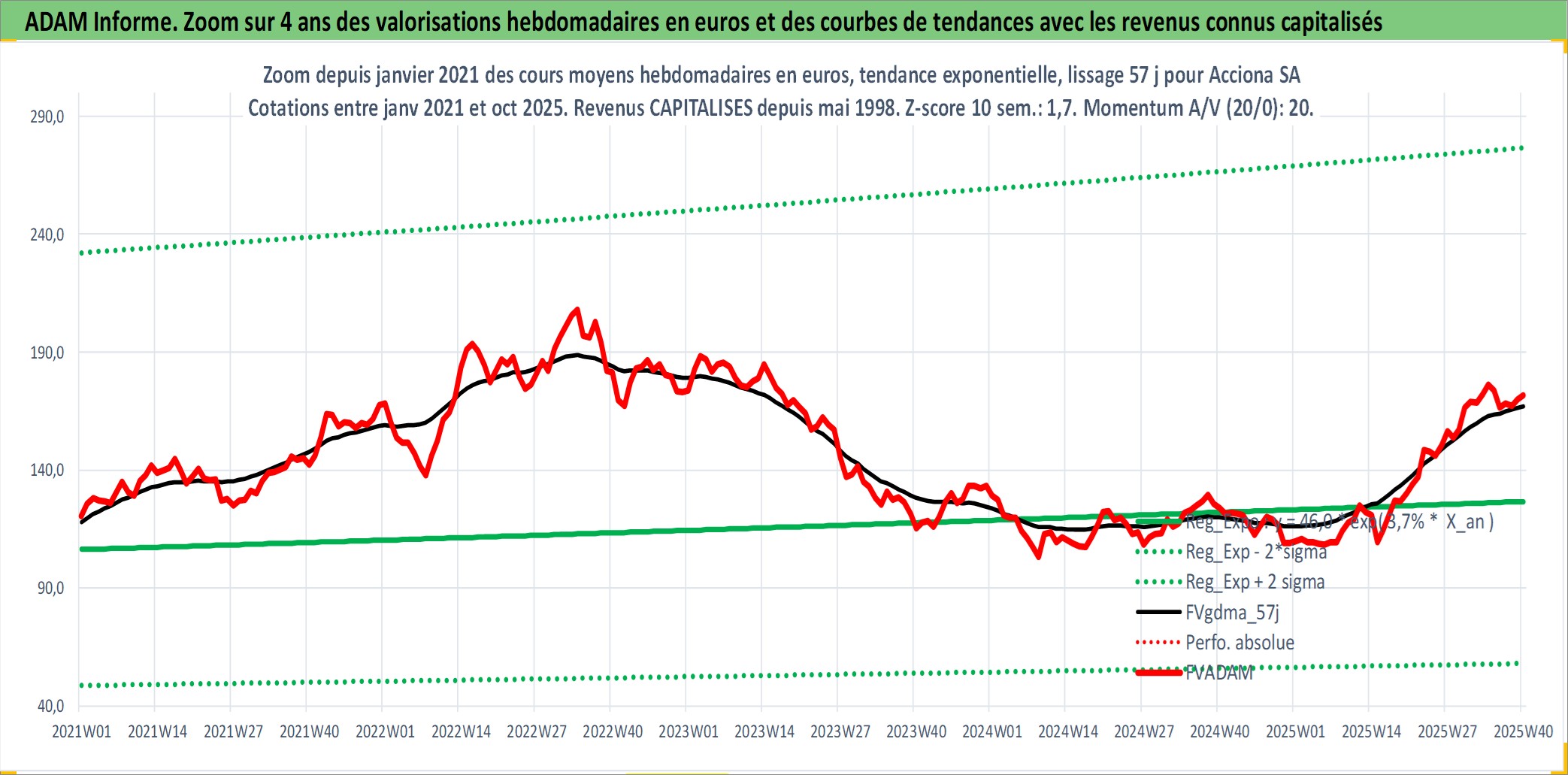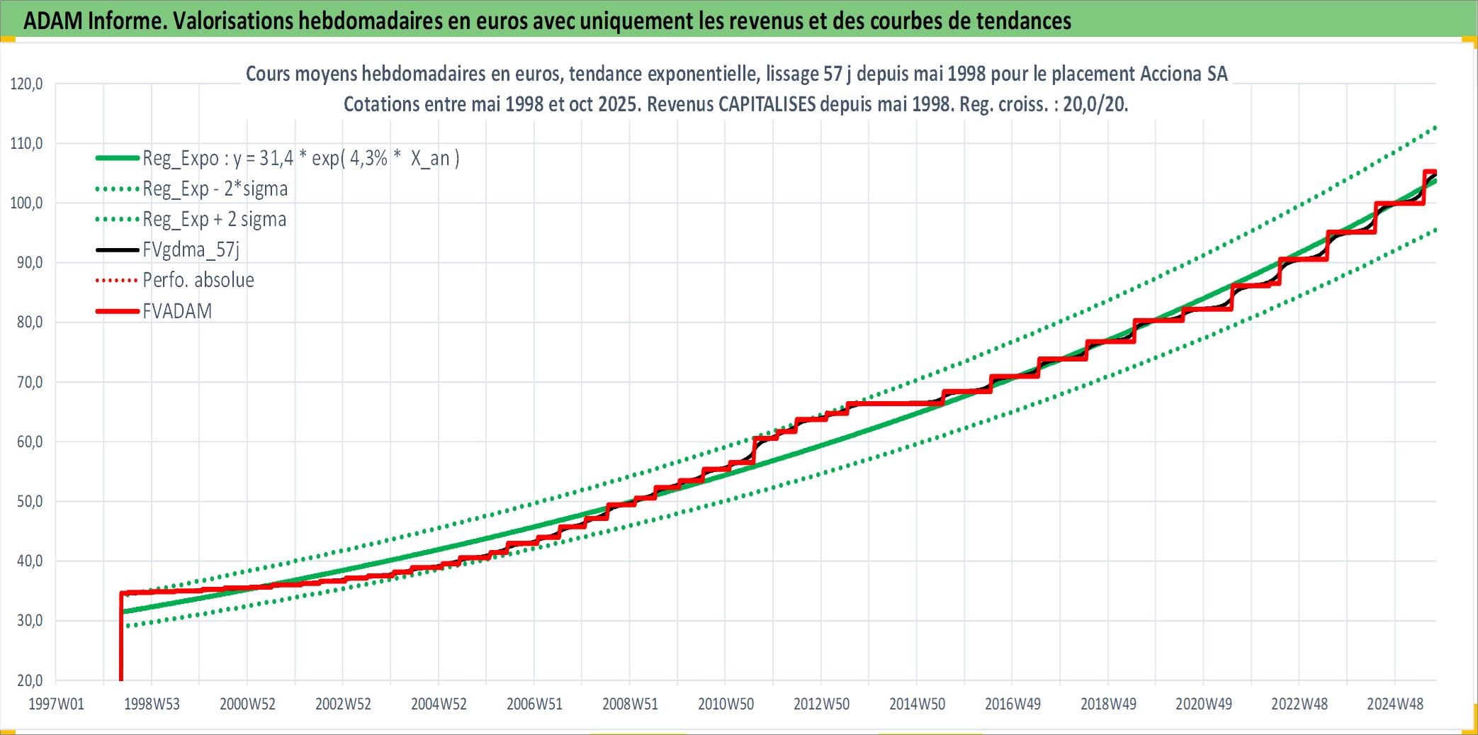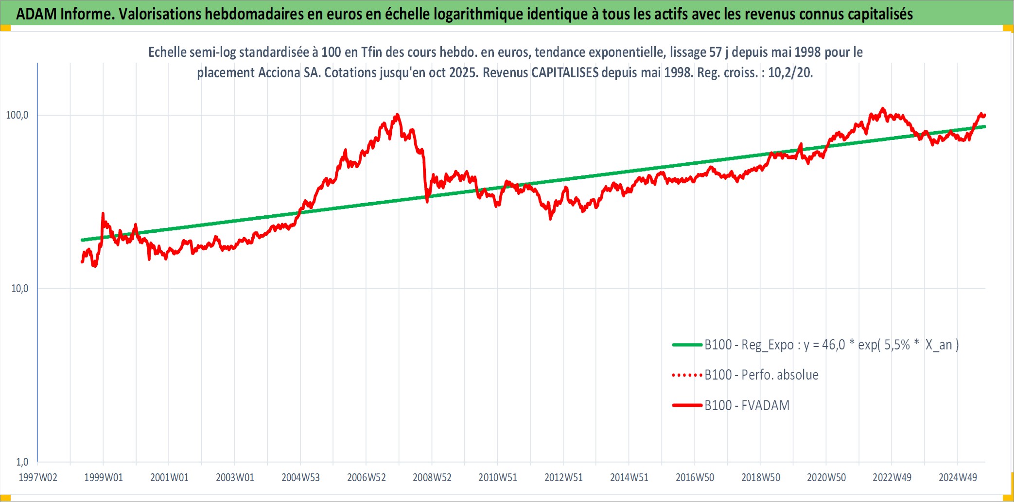 Site dédié aux investisseursPage dédiée sur site financeAnalyse des valorisations hebdomadaires de l'action Acciona SA. Cet actif est cote en EUR. Les valorisations couvrent les semaines 1998W20 a 2025W40. Les revenus de cet actif financier sont pris en compte depuis la semaine 1998W20. La note ESG de cet actif n'est pas connue.
