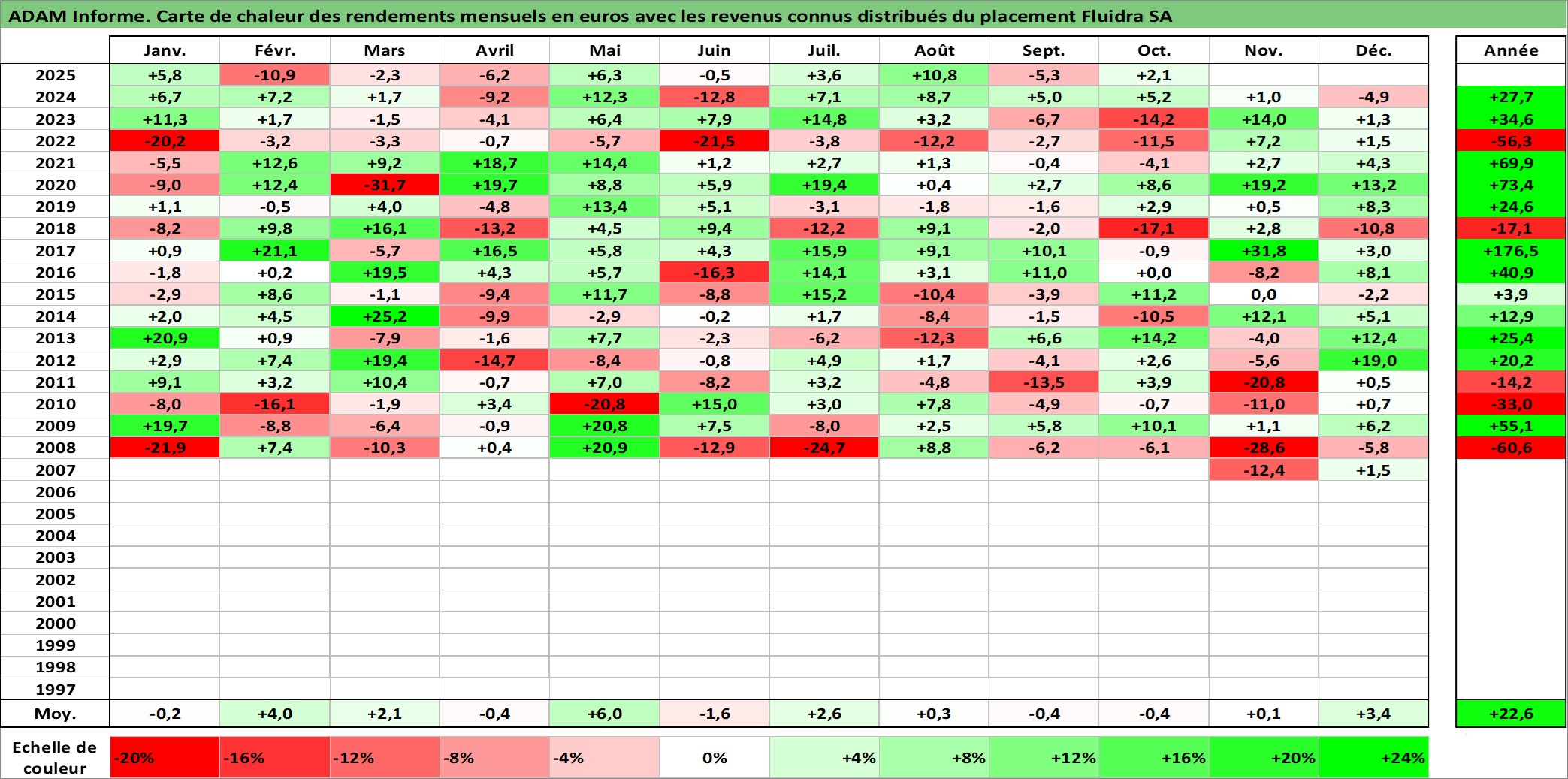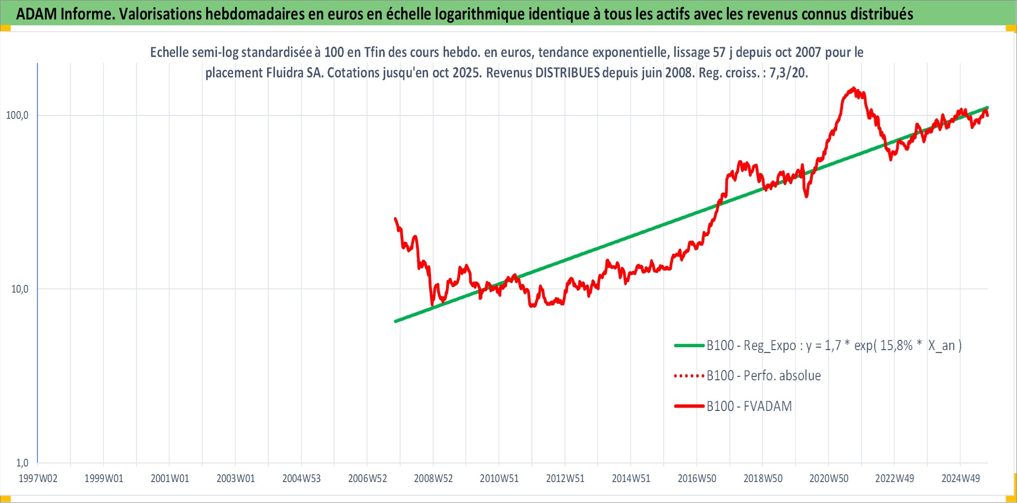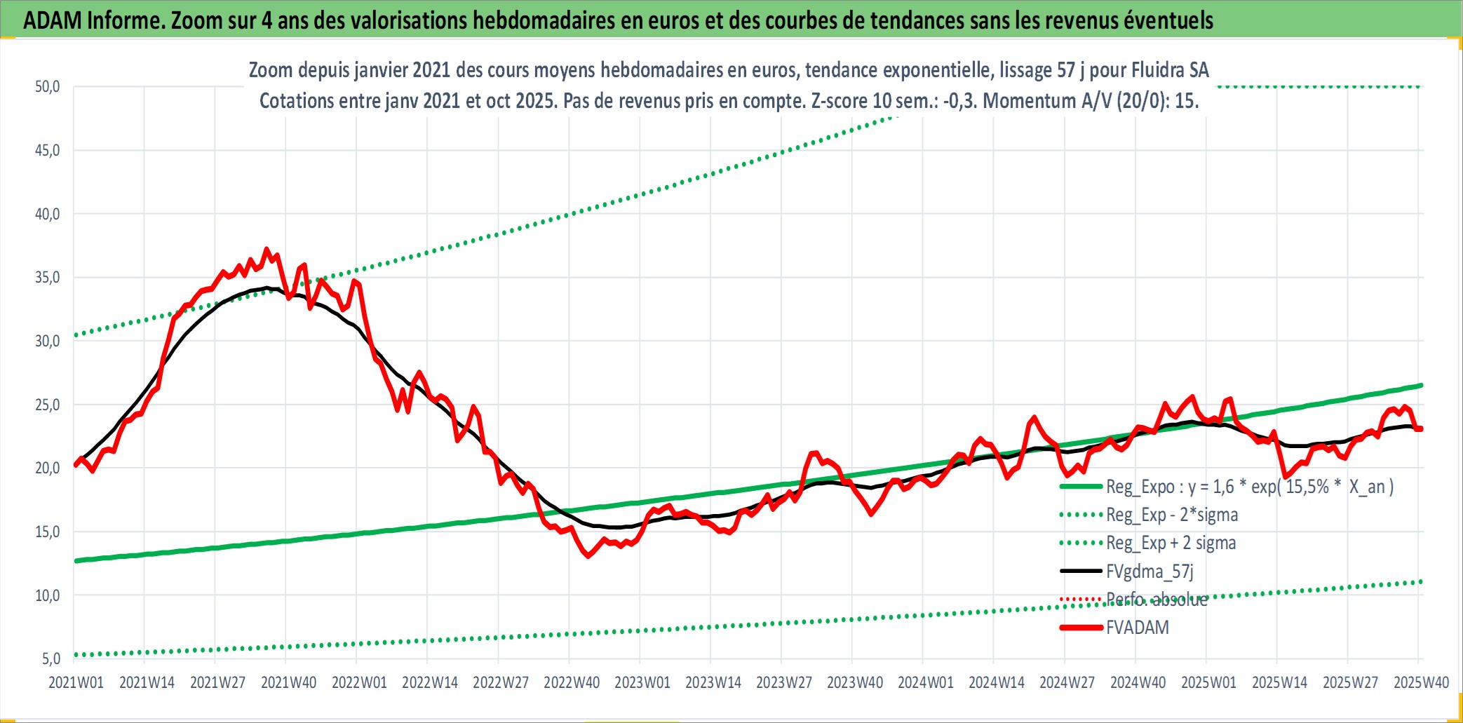 Site dédié aux investisseursPage dédiée sur site financeAnalyse des valorisations hebdomadaires de l'action Fluidra SA. Cet actif est cote en EUR. Les valorisations couvrent les semaines 2007W44 a 2025W40. Les revenus de cet actif financier sont pris en compte depuis la semaine 2008W24. La note ESG de cet actif n'est pas connue.