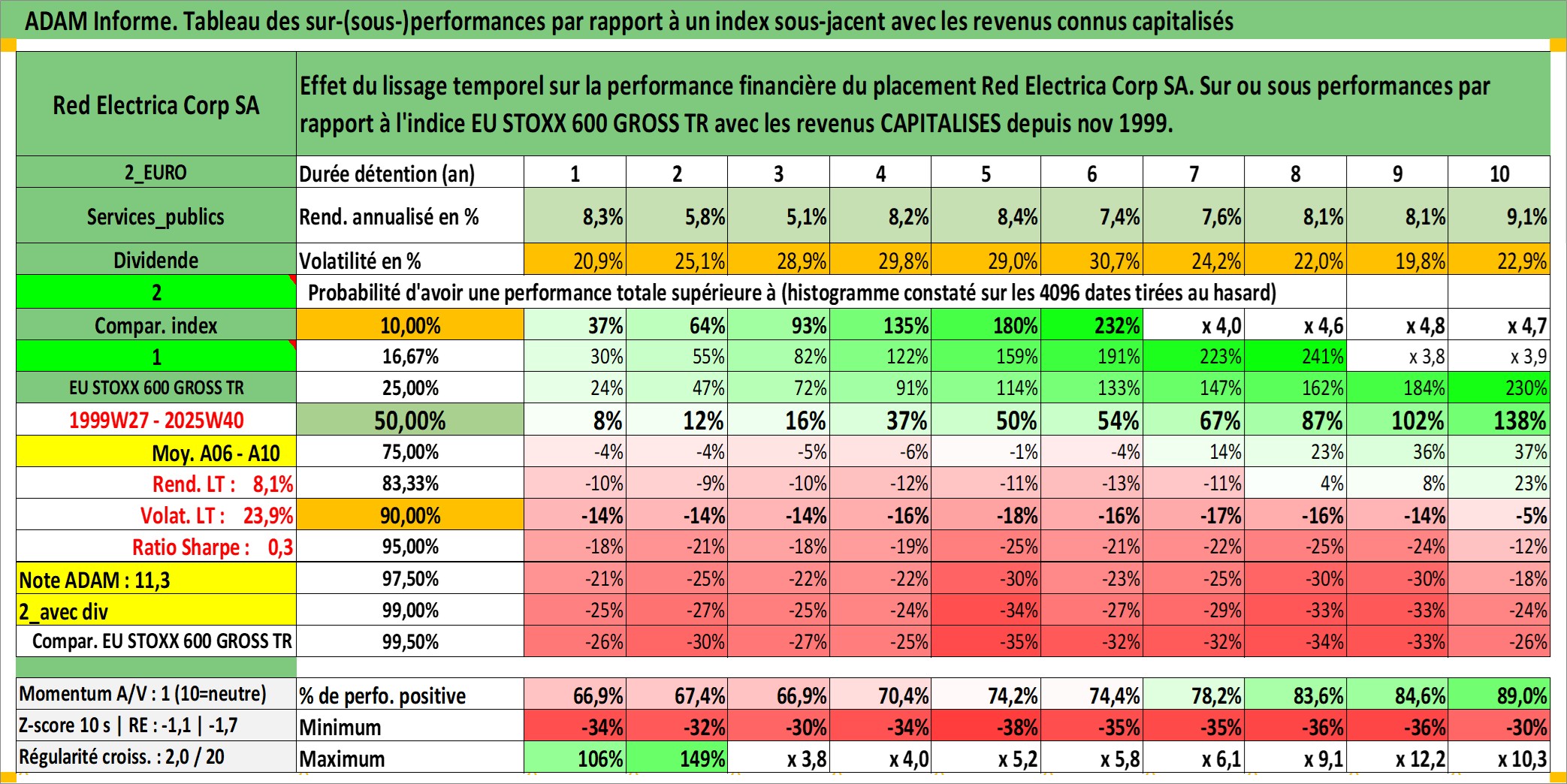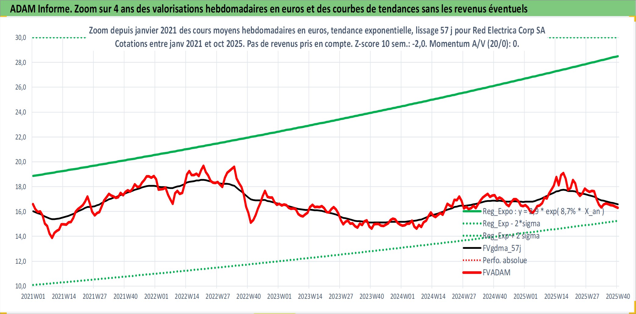 Site dédié aux investisseursPage dédiée sur site financeAnalyse des valorisations hebdomadaires de l'action Red Electrica Corp SA. Cet actif est cote en EUR. Les valorisations couvrent les semaines 1999W27 a 2025W40. Les revenus de cet actif financier sont pris en compte depuis la semaine 1999W47. La note globale ESG de cet actif est estimee a 16.0 (apres rebasage entre 0 et 20).