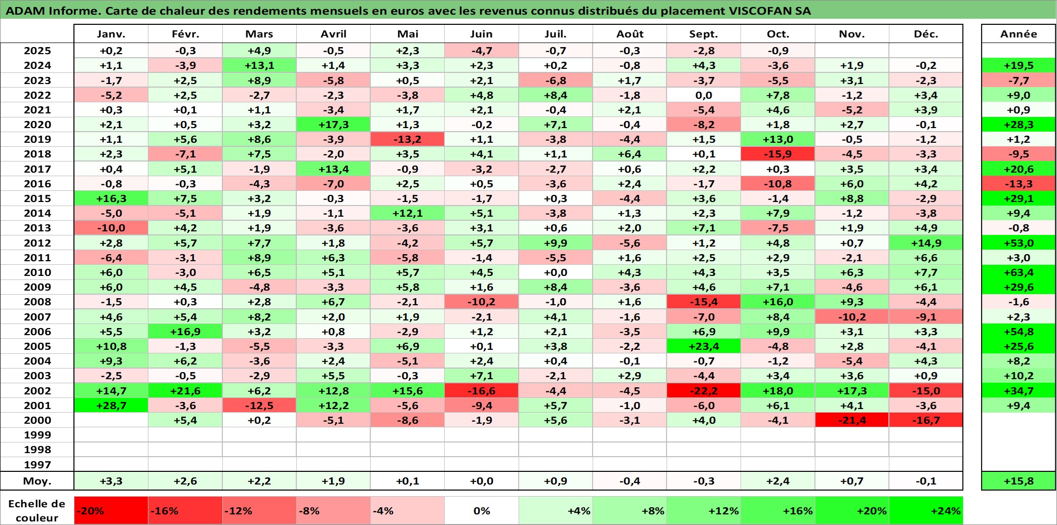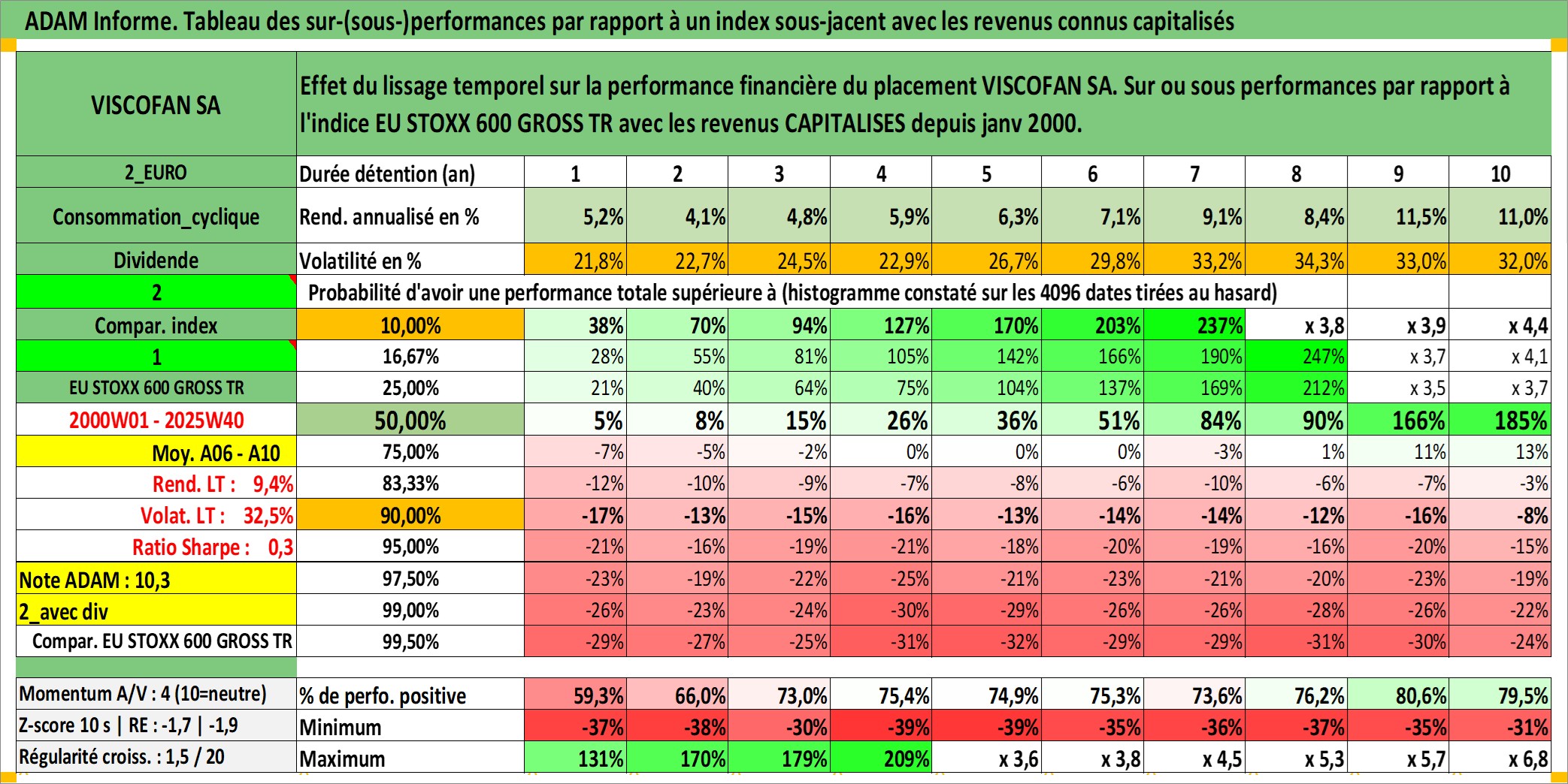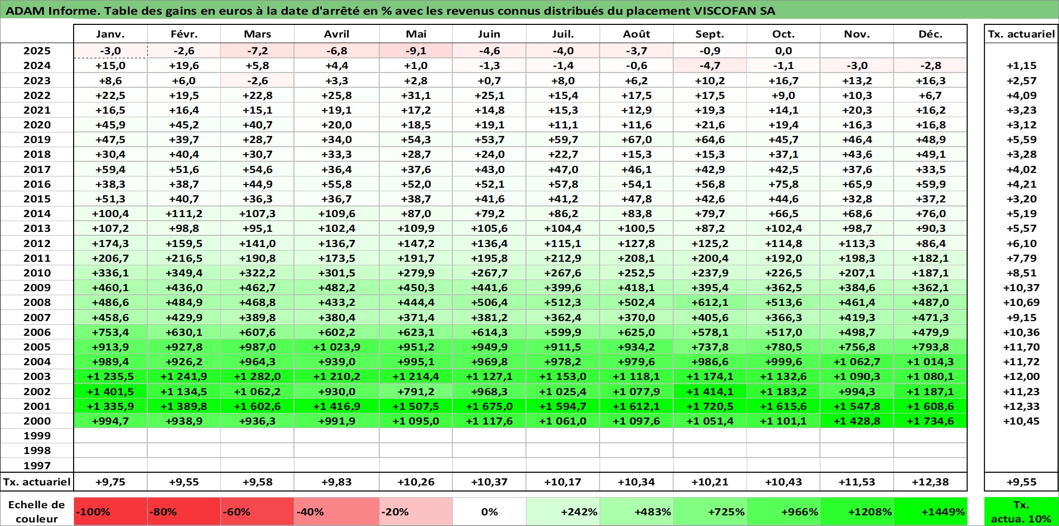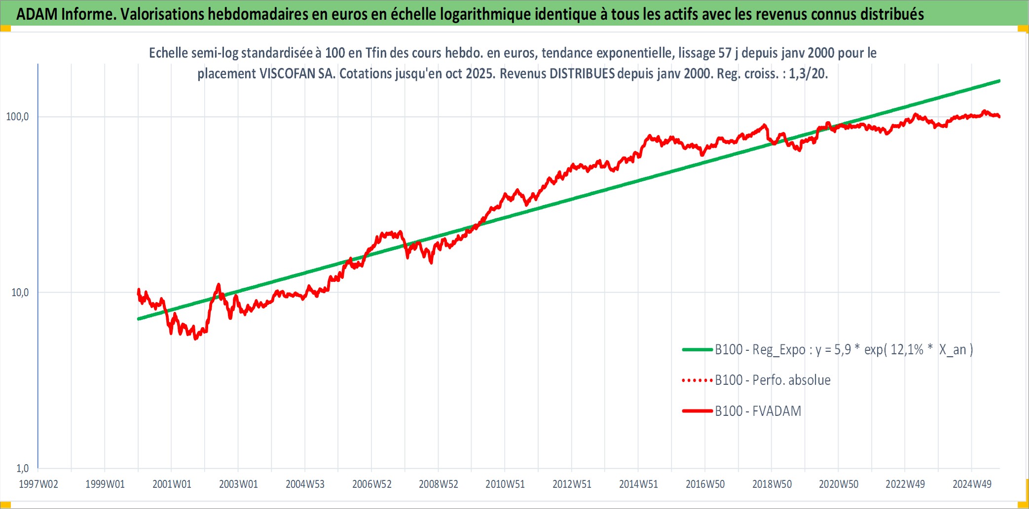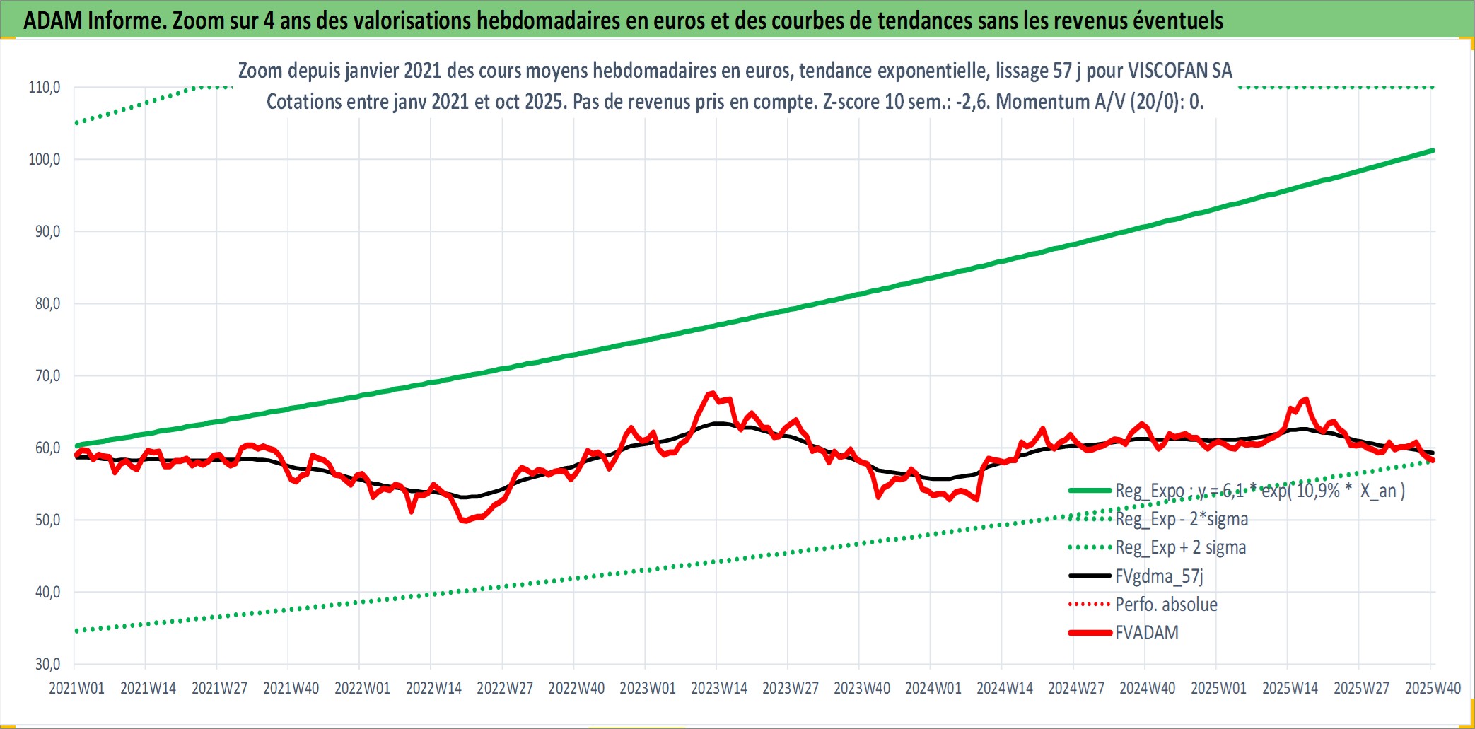Site dédié aux investisseursPage dédiée sur site financeAnalyse des valorisations hebdomadaires de l'action VISCOFAN SA. Cet actif est cote en EUR. Les valorisations couvrent les semaines 2000W01 a 2025W40. Les revenus de cet actif financier sont pris en compte depuis la semaine 2000W05. La note ESG de cet actif n'est pas connue.