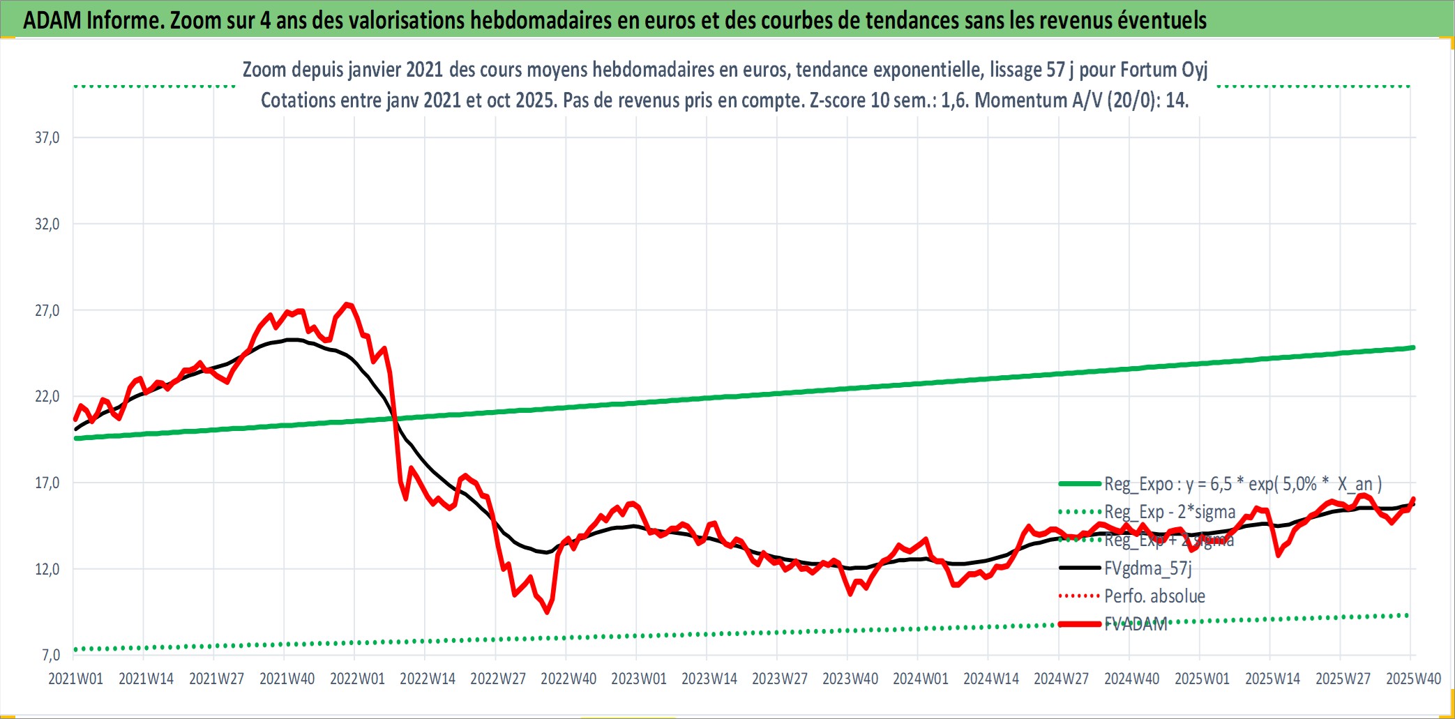 Site dédié aux investisseursPage dédiée sur site financeAnalyse des valorisations hebdomadaires de l'action Fortum Oyj. Cet actif est cote en EUR. Les valorisations couvrent les semaines 1999W04 a 2025W40. Les revenus de cet actif financier sont pris en compte depuis la semaine 1999W16. La note globale ESG de cet actif est estimee a 9.0 (apres rebasage entre 0 et 20).