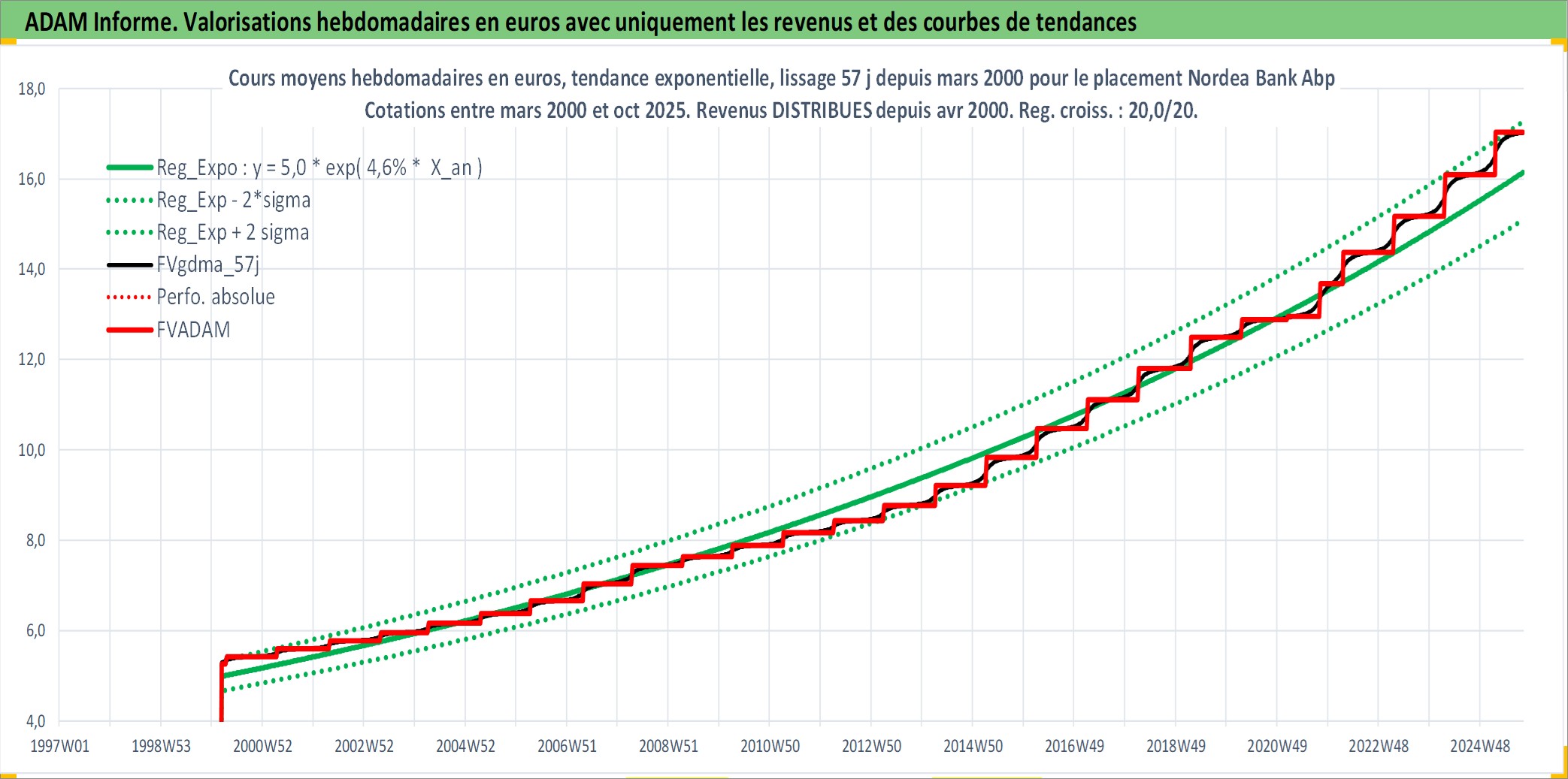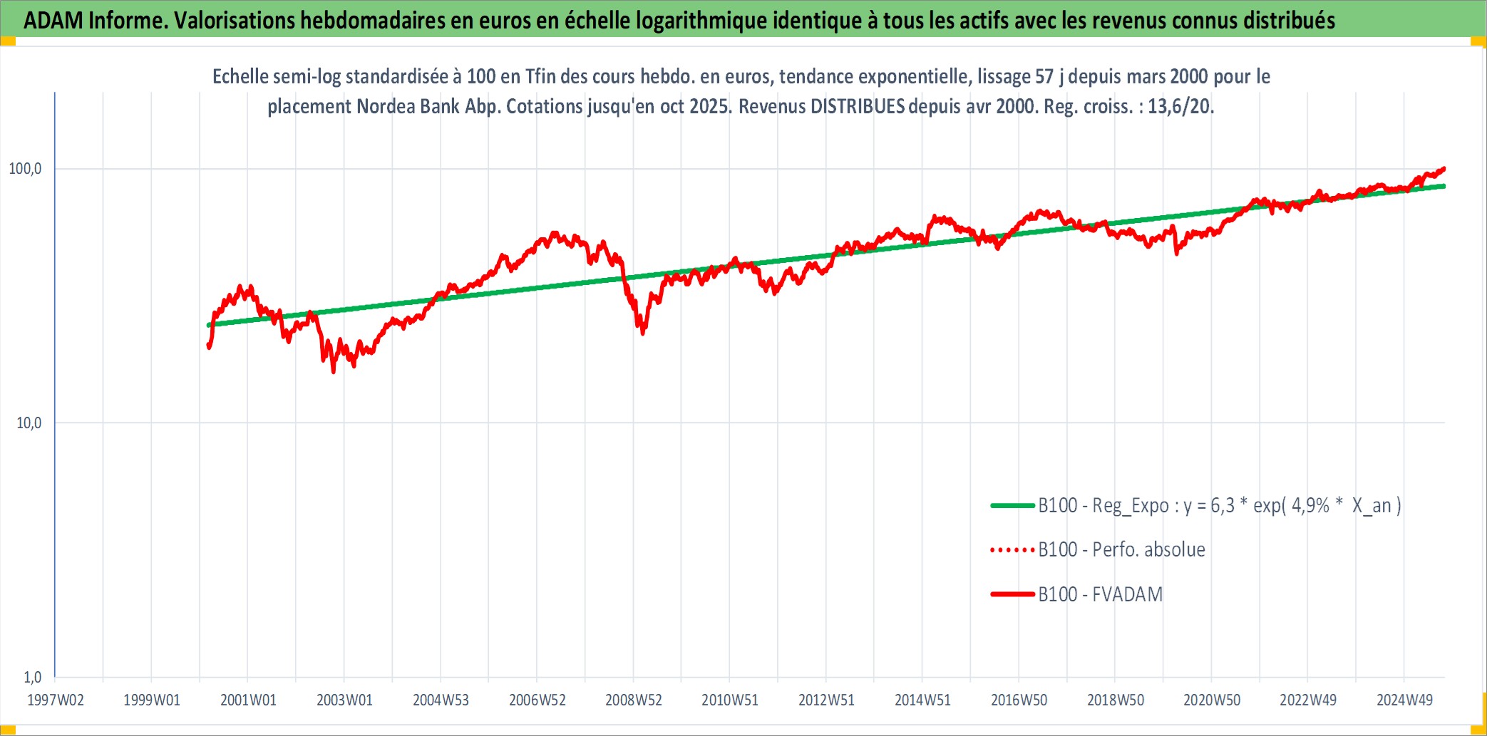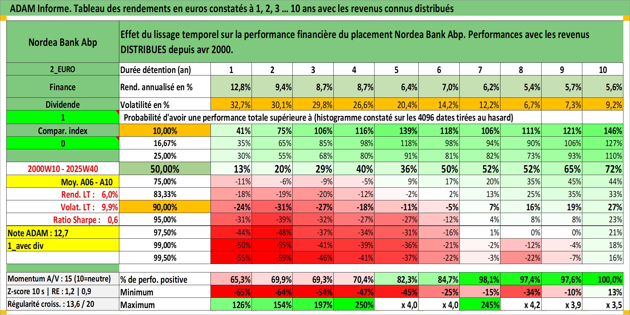 Site dédié aux investisseursPage dédiée sur site financeAnalyse des valorisations hebdomadaires de l'action Nordea Bank Abp. Cet actif est cote en EUR. Les valorisations couvrent les semaines 2000W10 a 2025W40. Les revenus de cet actif financier sont pris en compte depuis la semaine 2000W15. La note ESG de cet actif n'est pas connue.