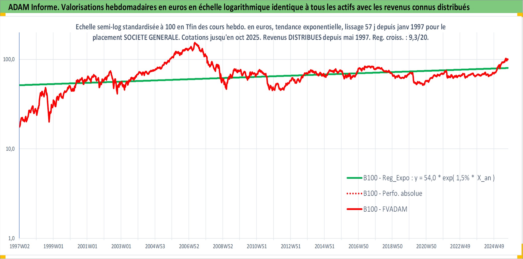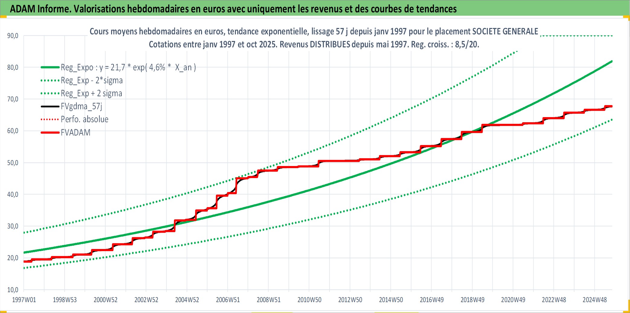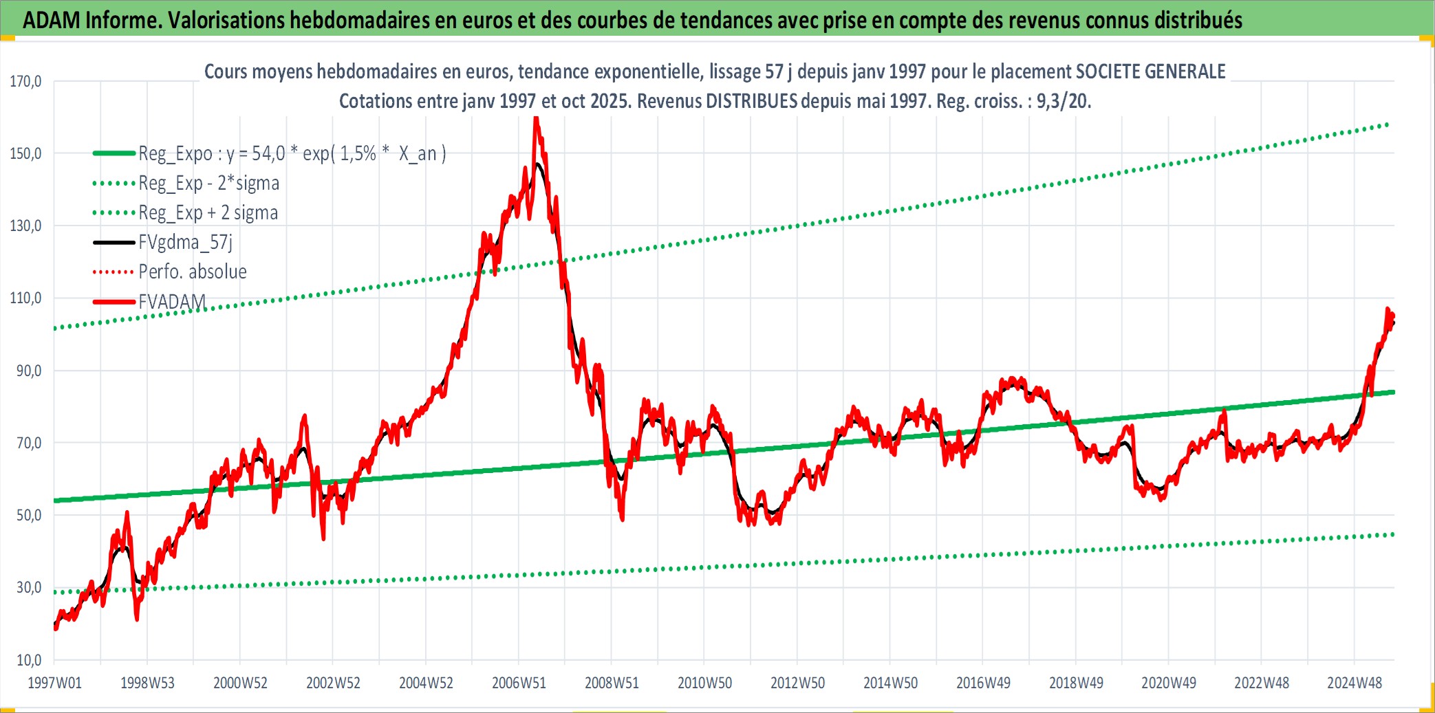 Site dédié aux investisseursPage dédiée sur site financeAnalyse des valorisations hebdomadaires de l'action SOCIETE GENERALE. Cet actif est cote en EUR. Les valorisations couvrent les semaines 1997W01 a 2025W40. Les revenus de cet actif financier sont pris en compte depuis la semaine 1997W21. La note globale ESG de cet actif est estimee a 10.0 (apres rebasage entre 0 et 20).
