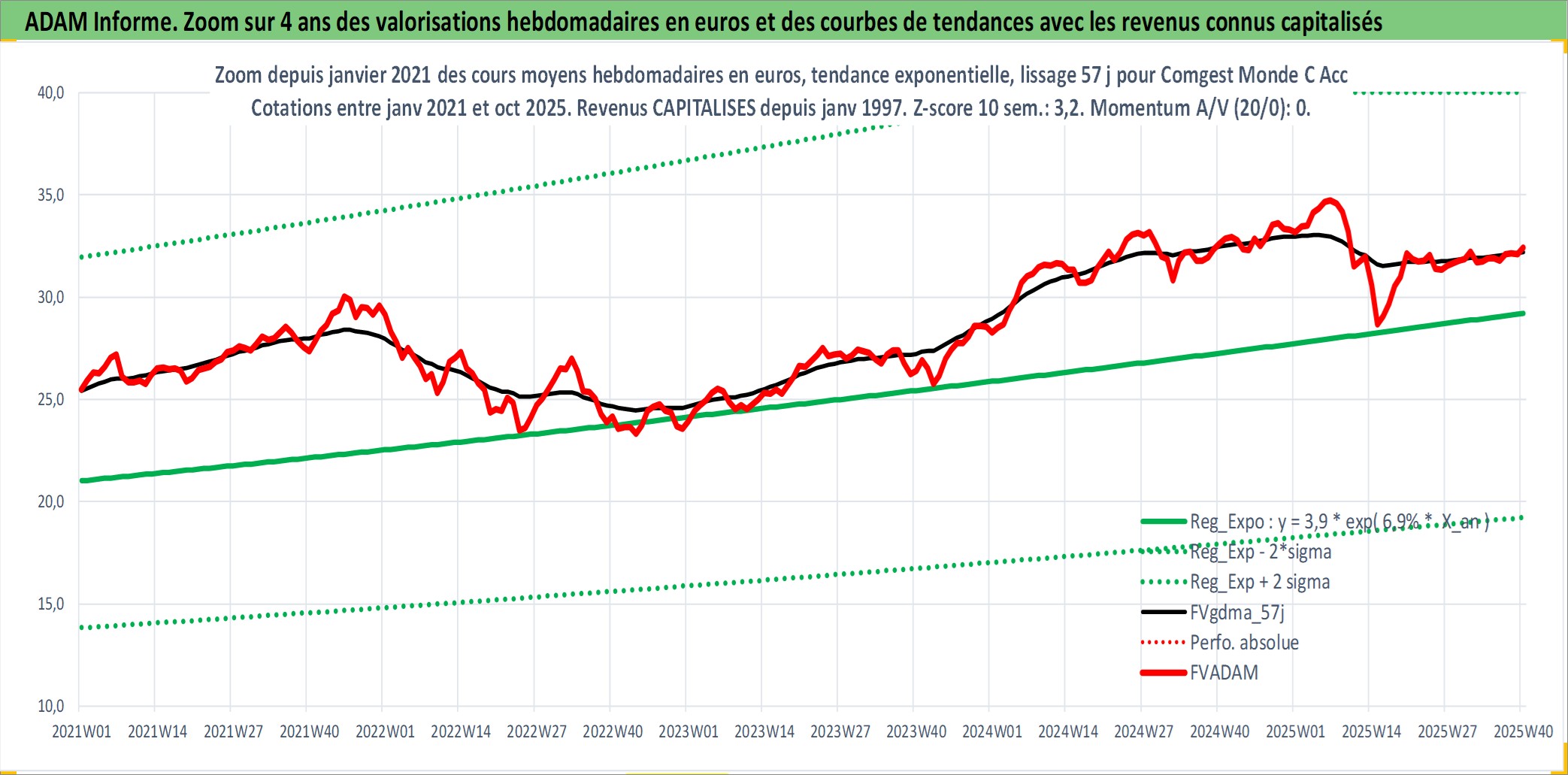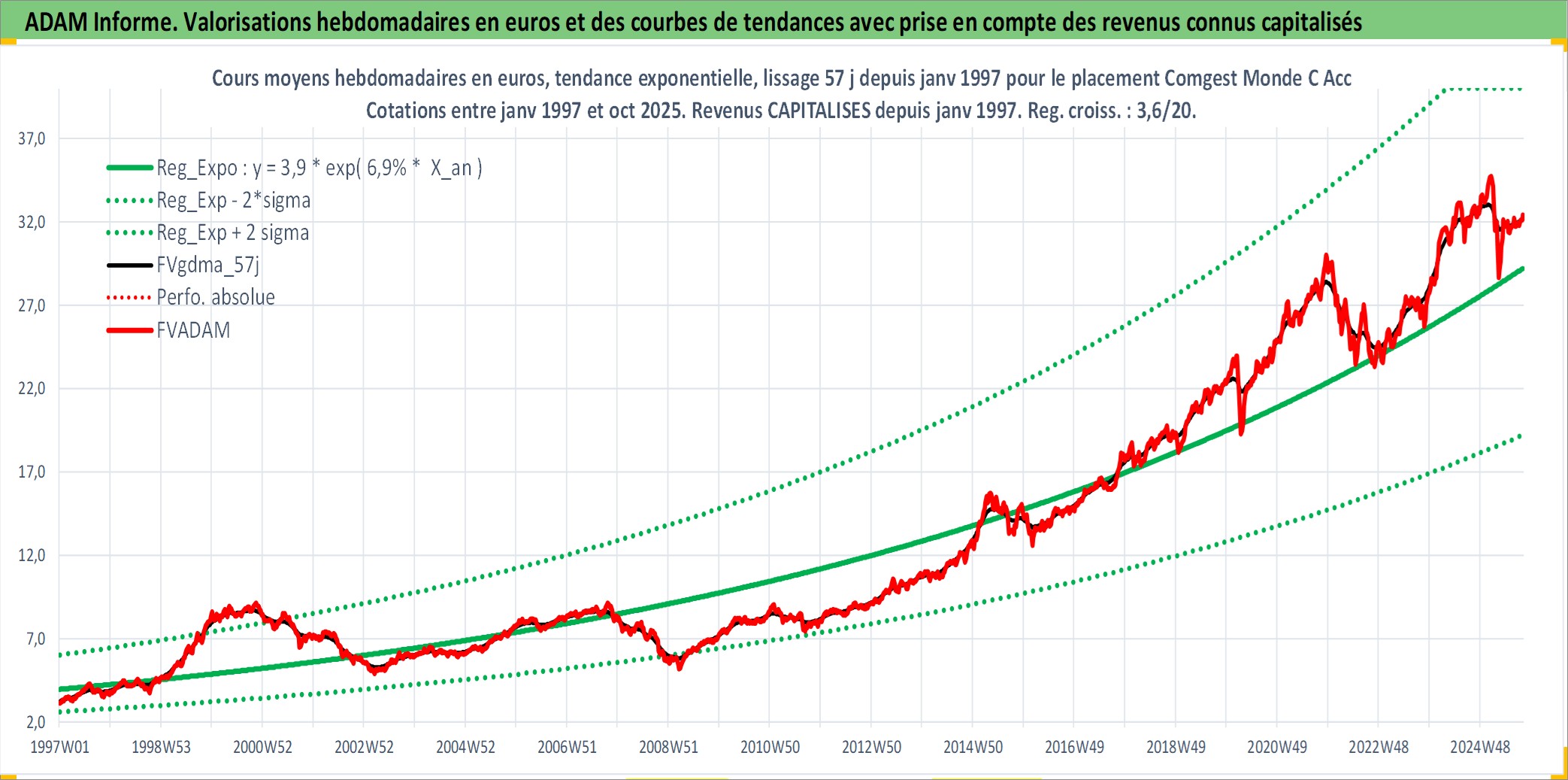 Site dédié aux investisseursPage dédiée sur site financeAnalyse des valorisations hebdomadaires du fonds Comgest Monde C Acc. Cet actif est cote en EUR. Les valorisations couvrent les semaines 1997W01 a 2025W40. Les revenus de cet actif financier sont pris en compte depuis la semaine 1997W01. La note globale ESG de cet actif est estimee a 9.0 (apres rebasage entre 0 et 20).