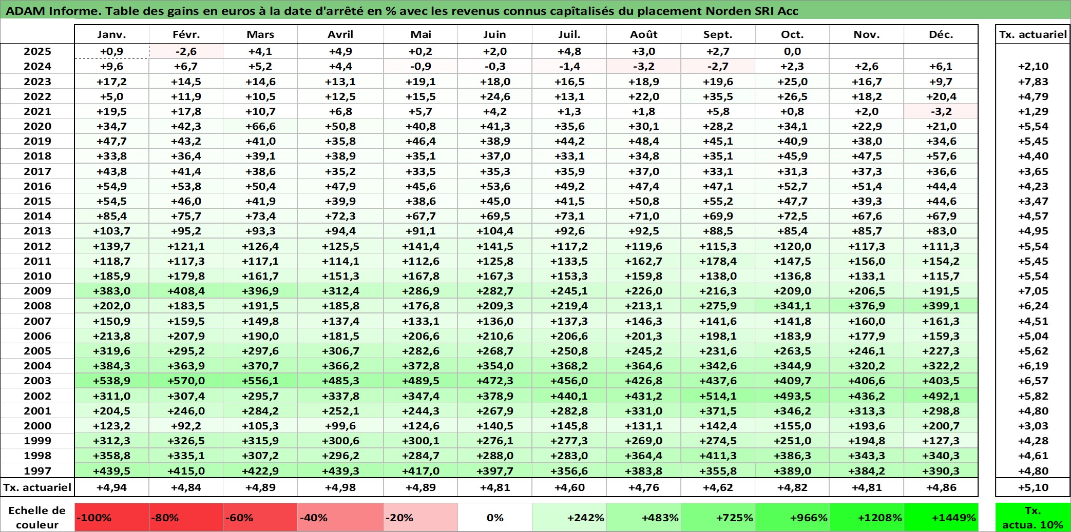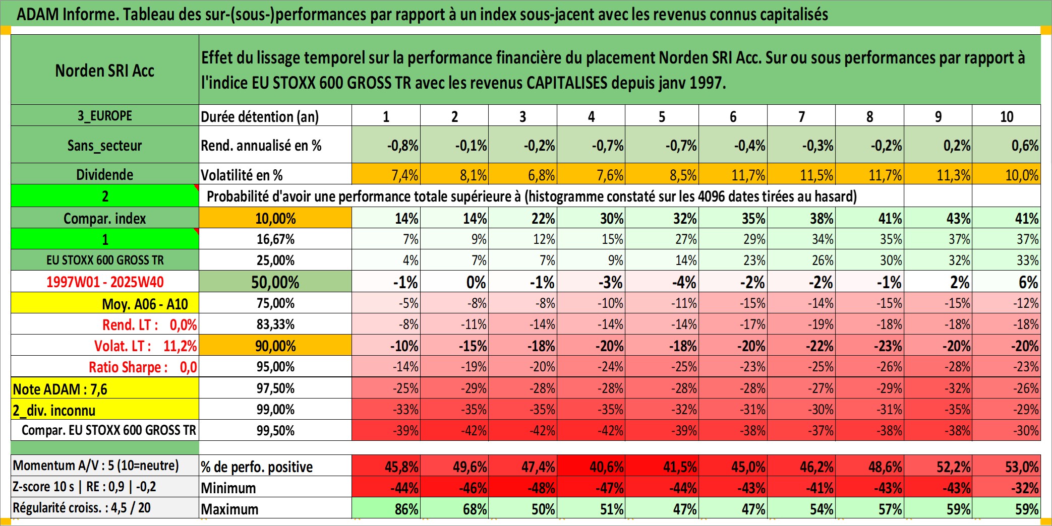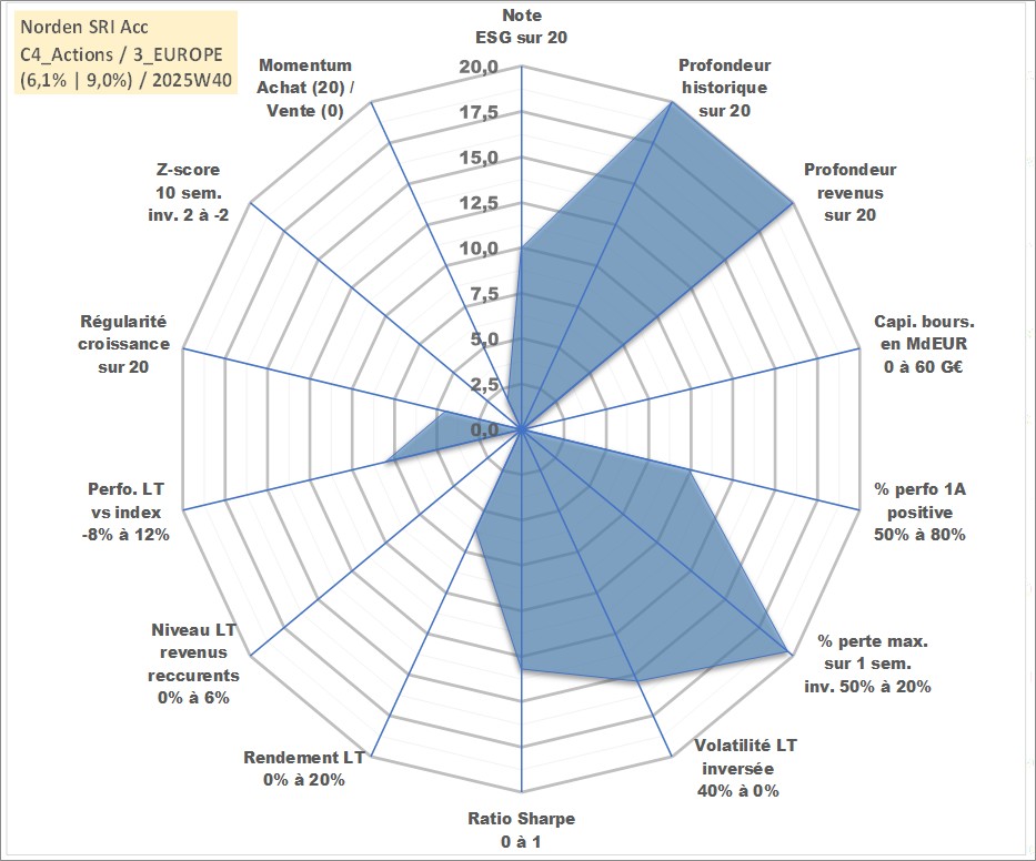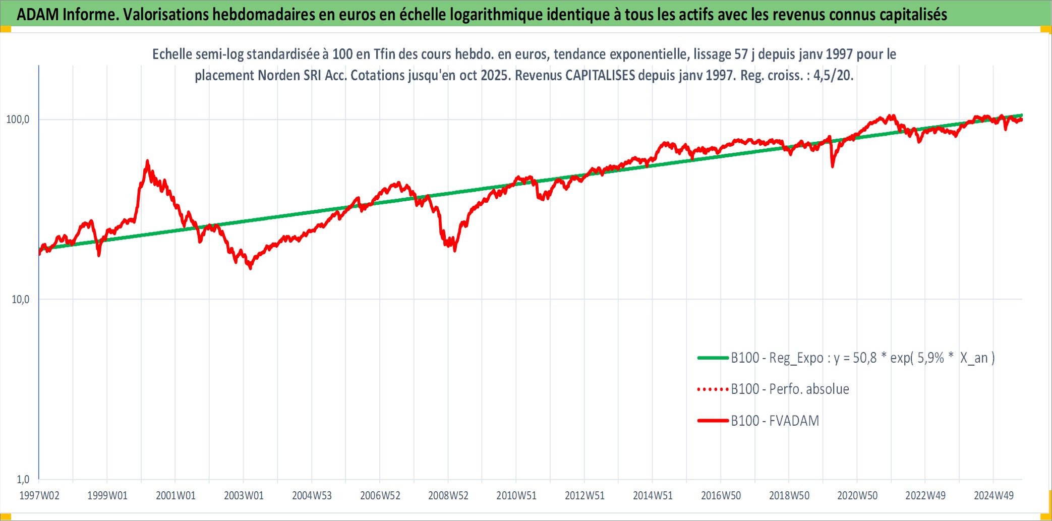 Site dédié aux investisseursPage dédiée sur site financeAnalyse des valorisations hebdomadaires du fonds Norden SRI Acc. Cet actif est cote en EUR. Les valorisations couvrent les semaines 1997W01 a 2025W40. Les revenus de cet actif financier sont pris en compte depuis la semaine 1997W01. La note globale ESG de cet actif est estimee a 10.0 (apres rebasage entre 0 et 20).