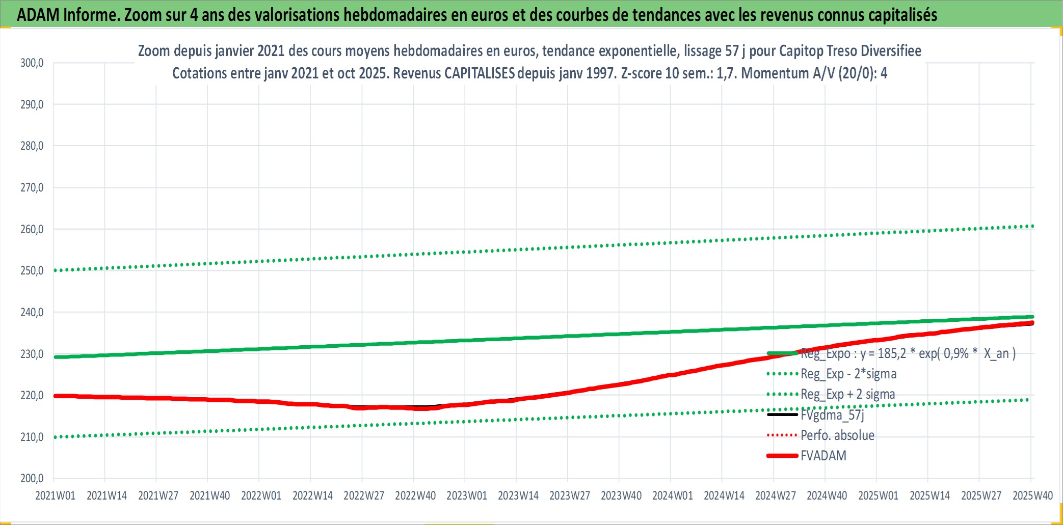 Site dédié aux investisseursPage dédiée sur site financeAnalyse des valorisations hebdomadaires du fonds Capitop Treso Diversifiee C PERCO_SG Acc. Cet actif est cote en EUR. Les valorisations couvrent les semaines 1997W01 a 2025W40. Les revenus de cet actif financier sont pris en compte depuis la semaine 1997W01. La note ESG de cet actif n'est pas connue.