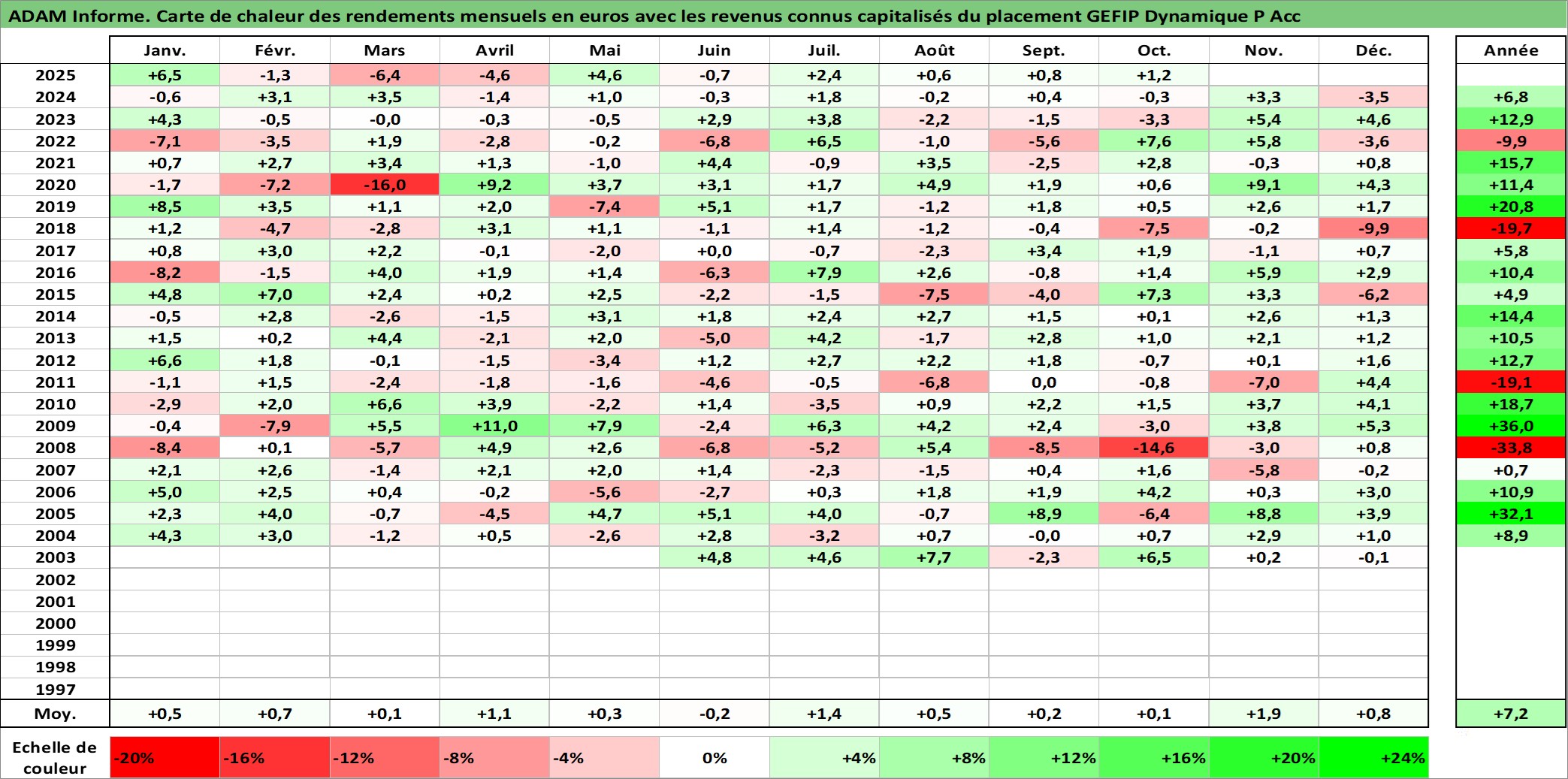 Site dédié aux investisseursPage dédiée sur site financeAnalyse des valorisations hebdomadaires du fonds GEFIP Dynamique P Acc. Cet actif est cote en EUR. Les valorisations couvrent les semaines 2003W38 a 2025W40. Les revenus de cet actif financier sont pris en compte depuis la semaine 2003W38. La note ESG de cet actif n'est pas connue.