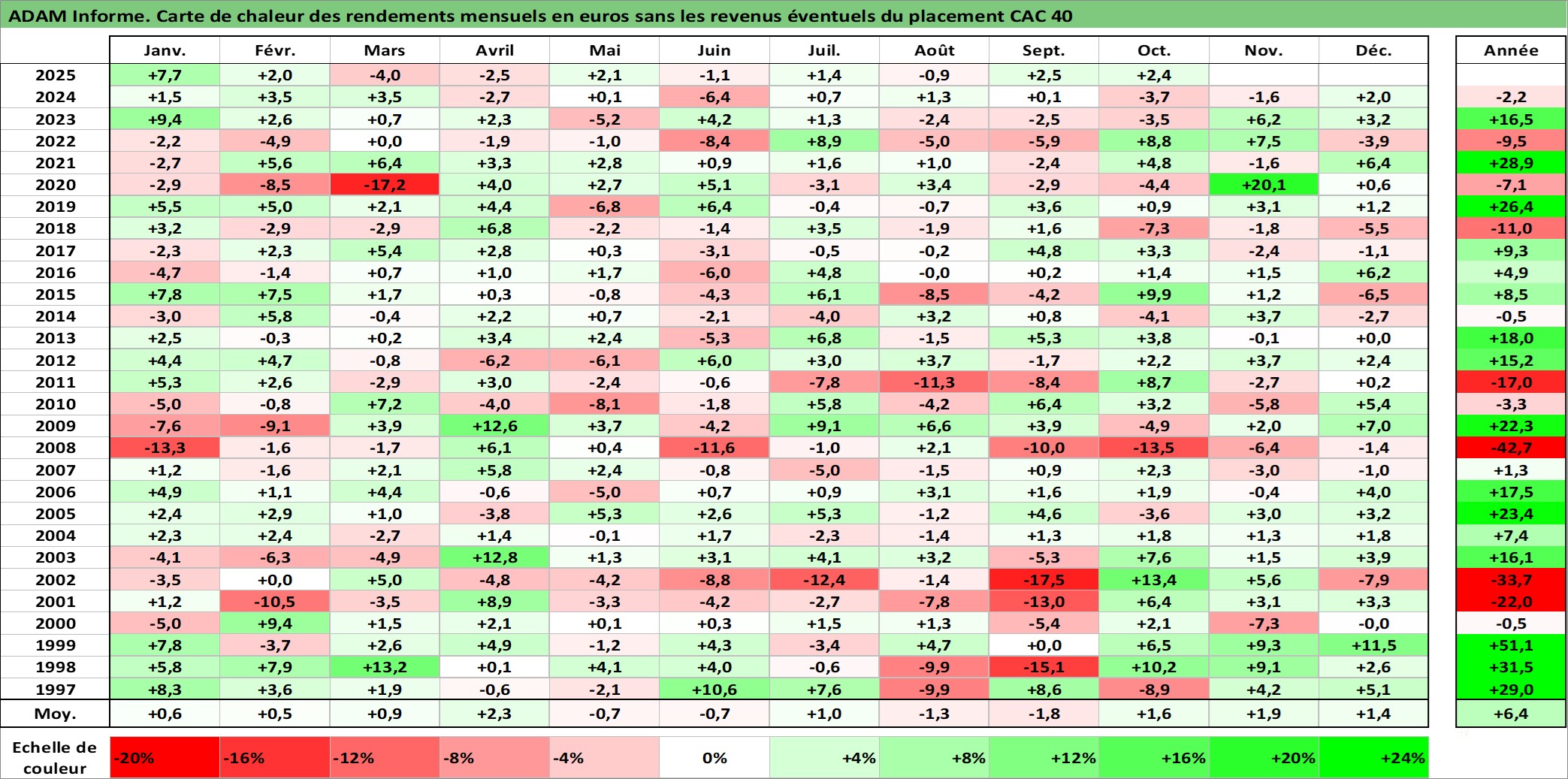Site dédié aux investisseursPage dédiée sur site financeAnalyse des valorisations hebdomadaires de l'actif CAC 40. Cet actif est cote en EUR. Les valorisations couvrent les semaines 1997W01 a 2025W40. Les revenus de cet actif financier ne sont pas connus car non existants ou non disponibles sur le site Yahoo Finance. La note ESG de cet actif n'est pas connue.