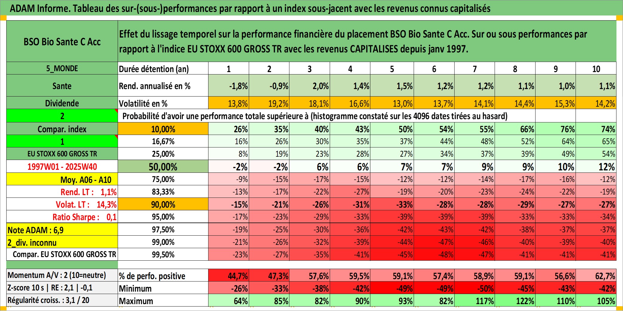 Site dédié aux investisseursPage dédiée sur site financeAnalyse des valorisations hebdomadaires du fonds BSO Bio Sante C Acc. Cet actif est cote en EUR. Les valorisations couvrent les semaines 1997W01 a 2025W40. Les revenus de cet actif financier sont pris en compte depuis la semaine 1997W01. La note globale ESG de cet actif est estimee a 6.0 (apres rebasage entre 0 et 20).
