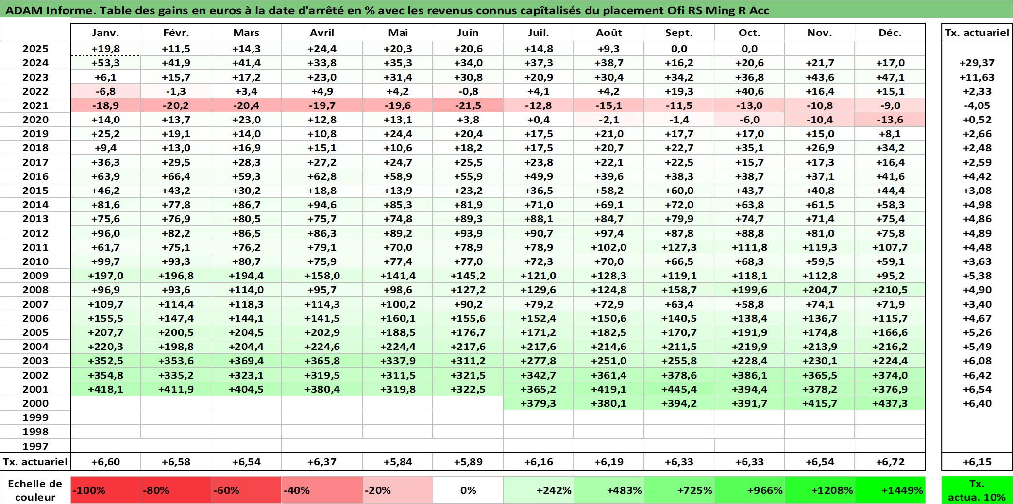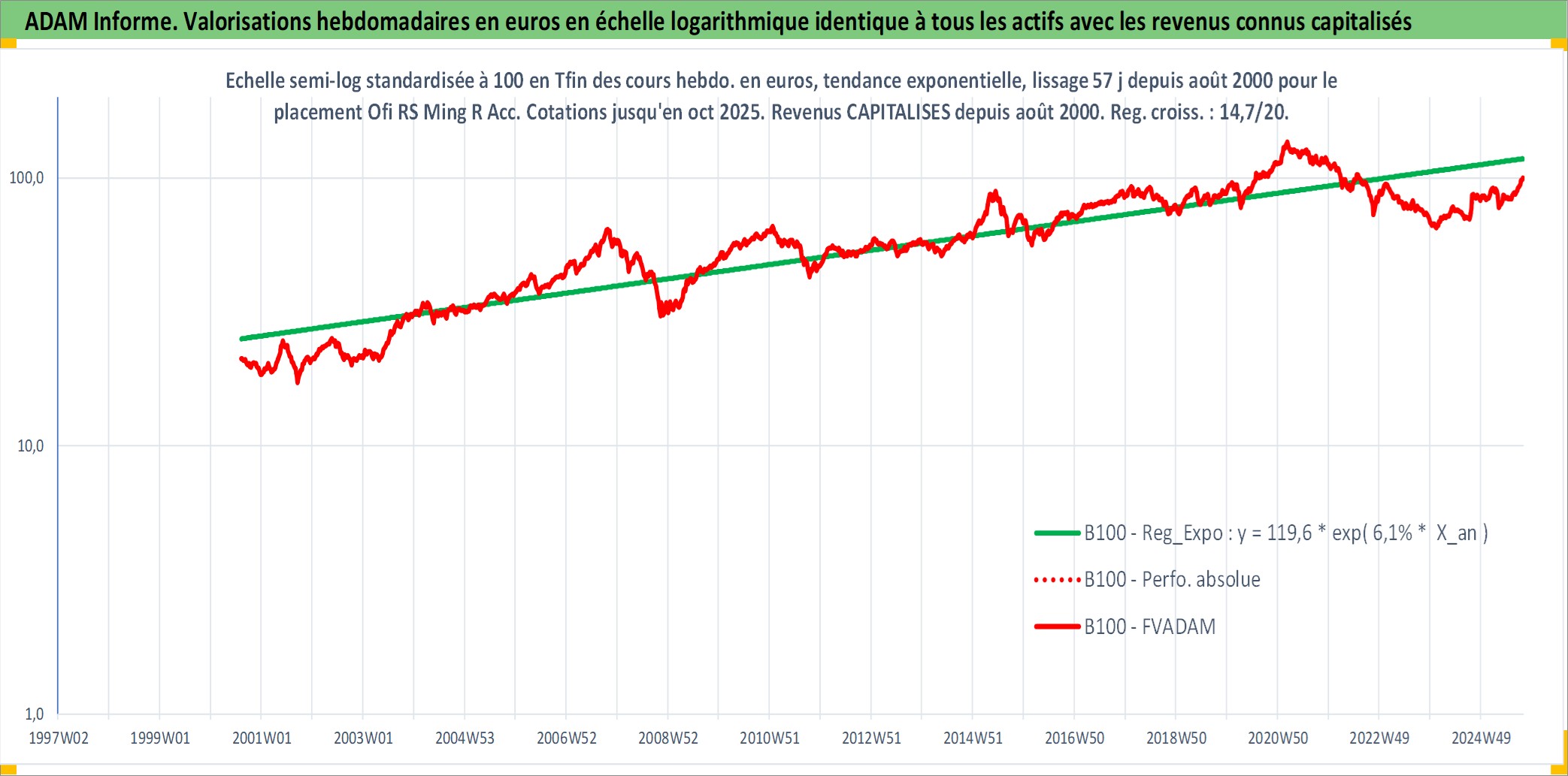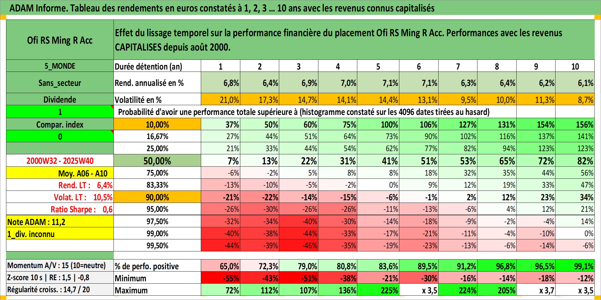 Site dédié aux investisseursPage dédiée sur site financeAnalyse des valorisations hebdomadaires du fonds Ofi RS Ming R Acc. Cet actif est cote en EUR. Les valorisations couvrent les semaines 2000W32 a 2025W40. Les revenus de cet actif financier sont pris en compte depuis la semaine 2000W32. La note globale ESG de cet actif est estimee a 7.0 (apres rebasage entre 0 et 20).