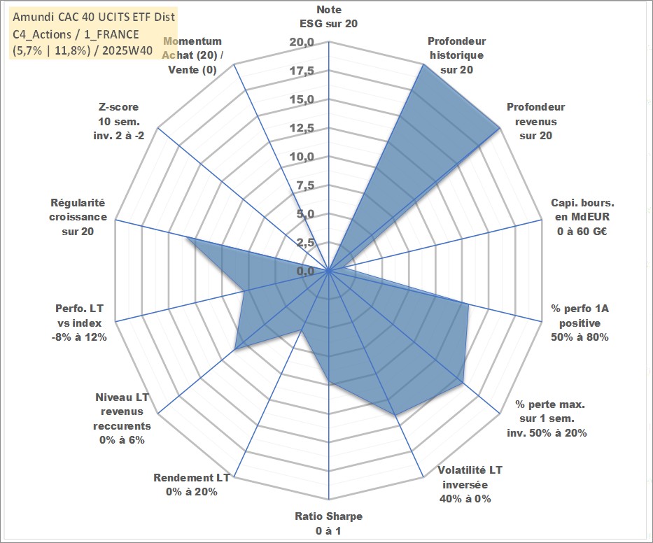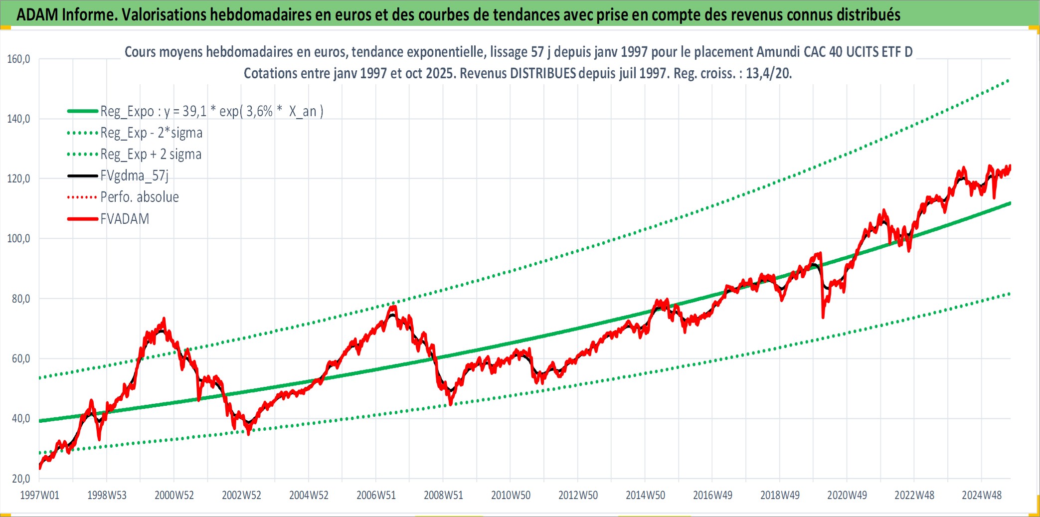 Site dédié aux investisseursPage dédiée sur site financeAnalyse des valorisations hebdomadaires du fonds Amundi CAC 40 UCITS ETF Dist. Cet actif est cote en EUR. Les valorisations couvrent les semaines 1997W01 a 2025W40. Les revenus de cet actif financier sont pris en compte depuis la semaine 1997W28. La note ESG de cet actif n'est pas connue.