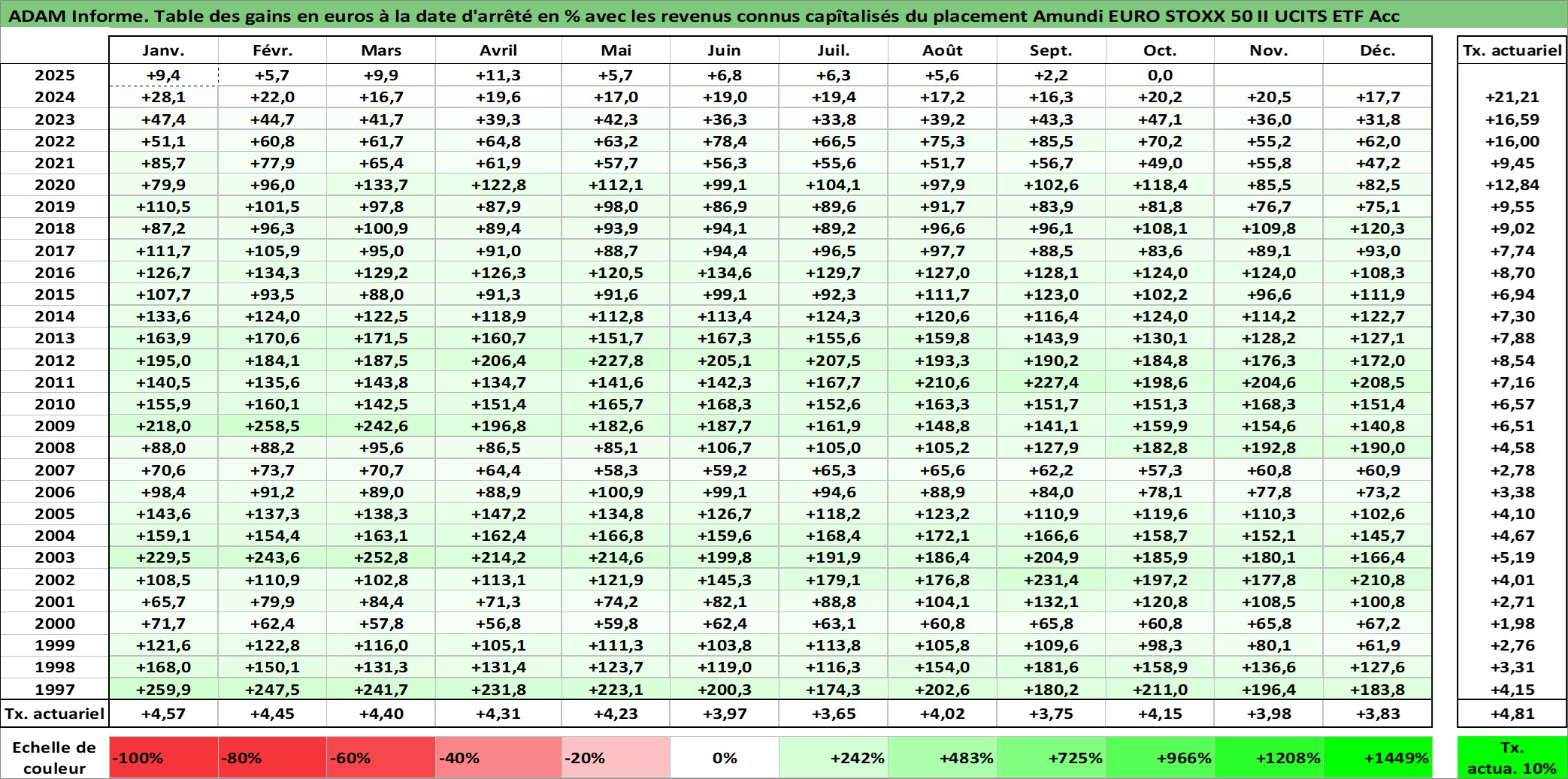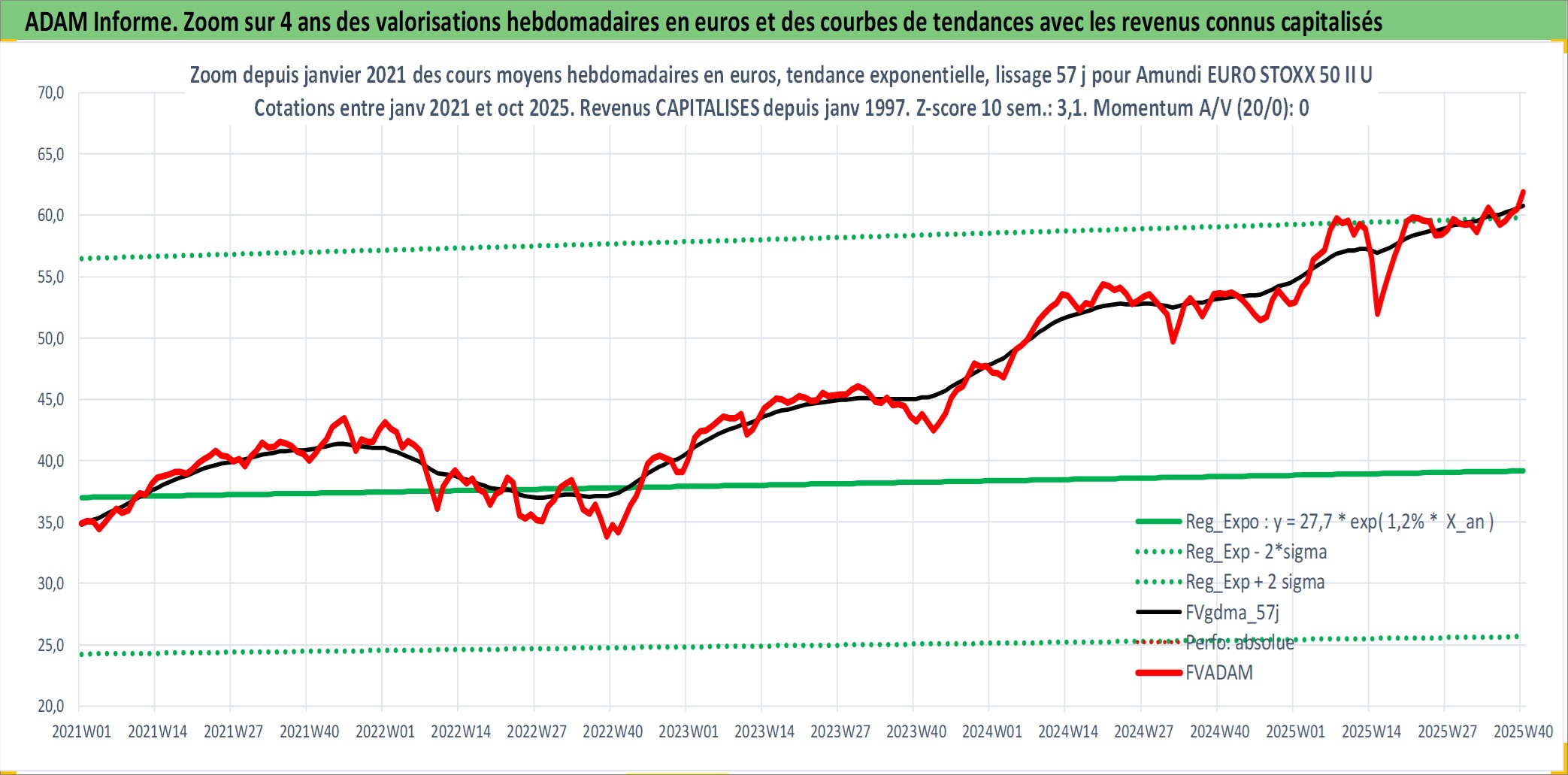 Site dédié aux investisseursPage dédiée sur site financeAnalyse des valorisations hebdomadaires du fonds Amundi EURO STOXX 50 II UCITS ETF Acc. Cet actif est cote en EUR. Les valorisations couvrent les semaines 1997W01 a 2025W40. Les revenus de cet actif financier sont pris en compte depuis la semaine 1997W01. La note ESG de cet actif n'est pas connue.